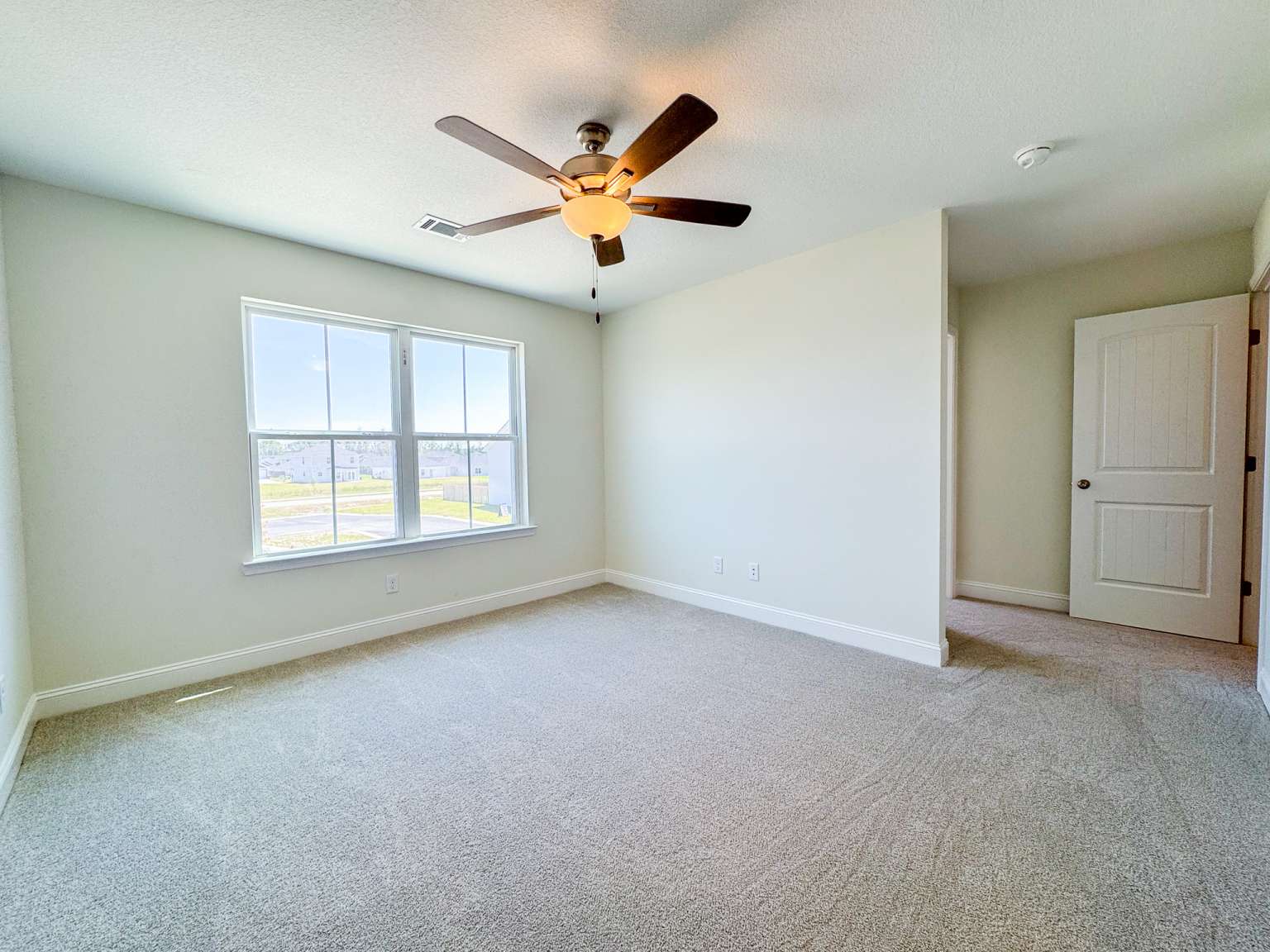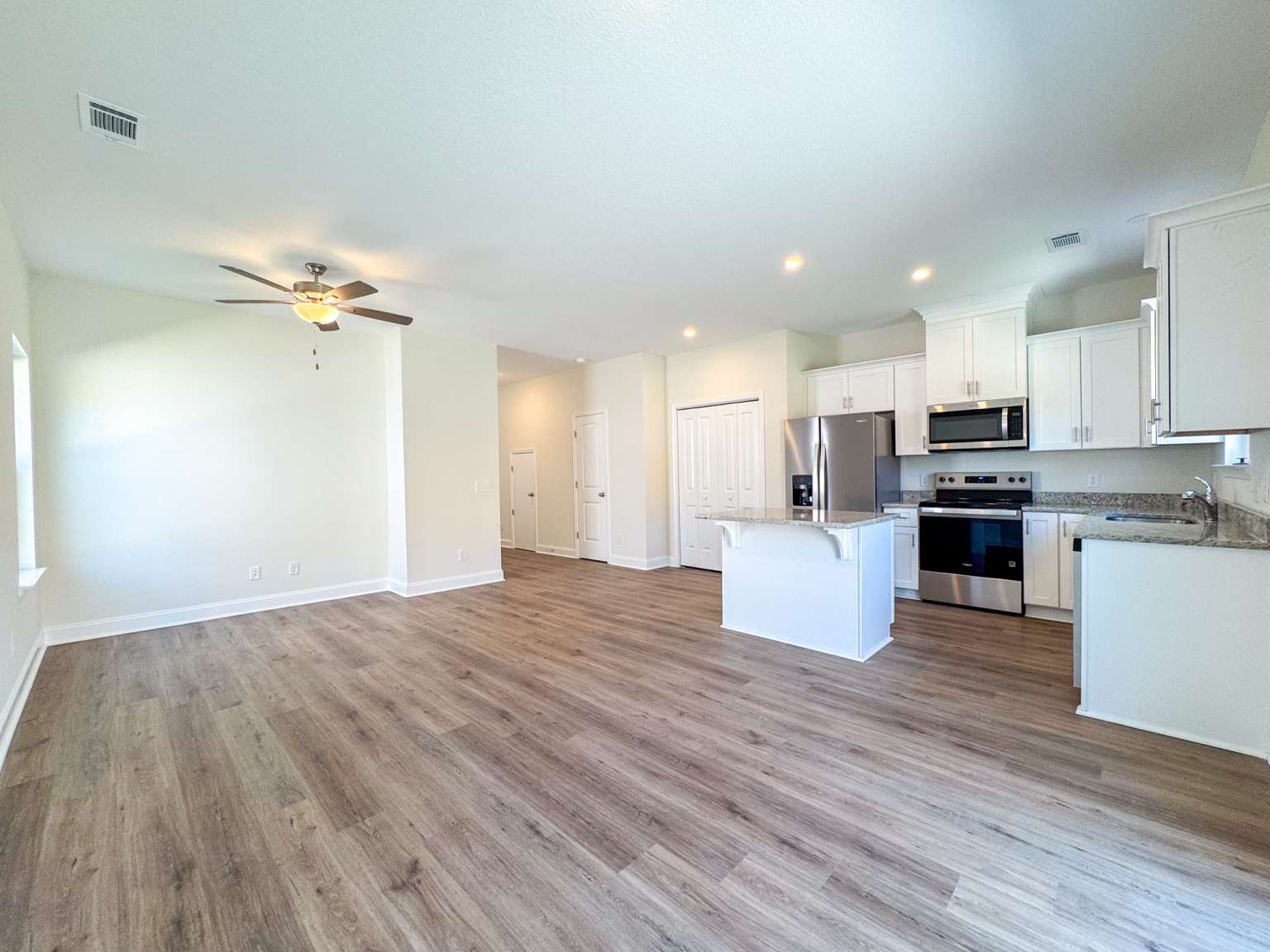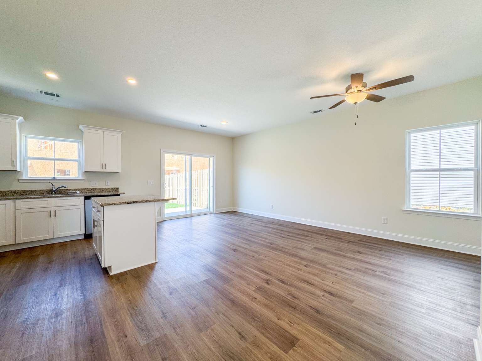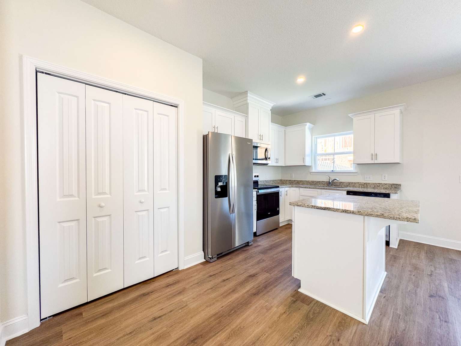 Move-in ready end-unit townhome at Heritage Pointe Townhomes in Hinesville! Located on the edge of Hinesville, close to new restaurants & up-and-coming shopping! Quick commute to Ft. Stewart, Hwy 17 & I-95! 3-bedroom, 2.5-bath townhome with granite counters throughout! Open living space on the first floor with access to the 1-car garage, half-bath & the backyard. The kitchen features a spacious pantry & new stainless steel appliances, including a refrigerator! From the island, look out to the dining area & family room, which features a ceiling fan. Enjoy a fenced & sodded backyard with irrigation from the patio! Upstairs, find two bedrooms, a hall bath, a laundry room & the primary suite. Within the primary suite is a ceiling fan, a walk-in closet & private bath. The private bath includes a dual vanity with granite counter & another walk-in closet! HOA to provide regular landscaping & annual pressure washing.