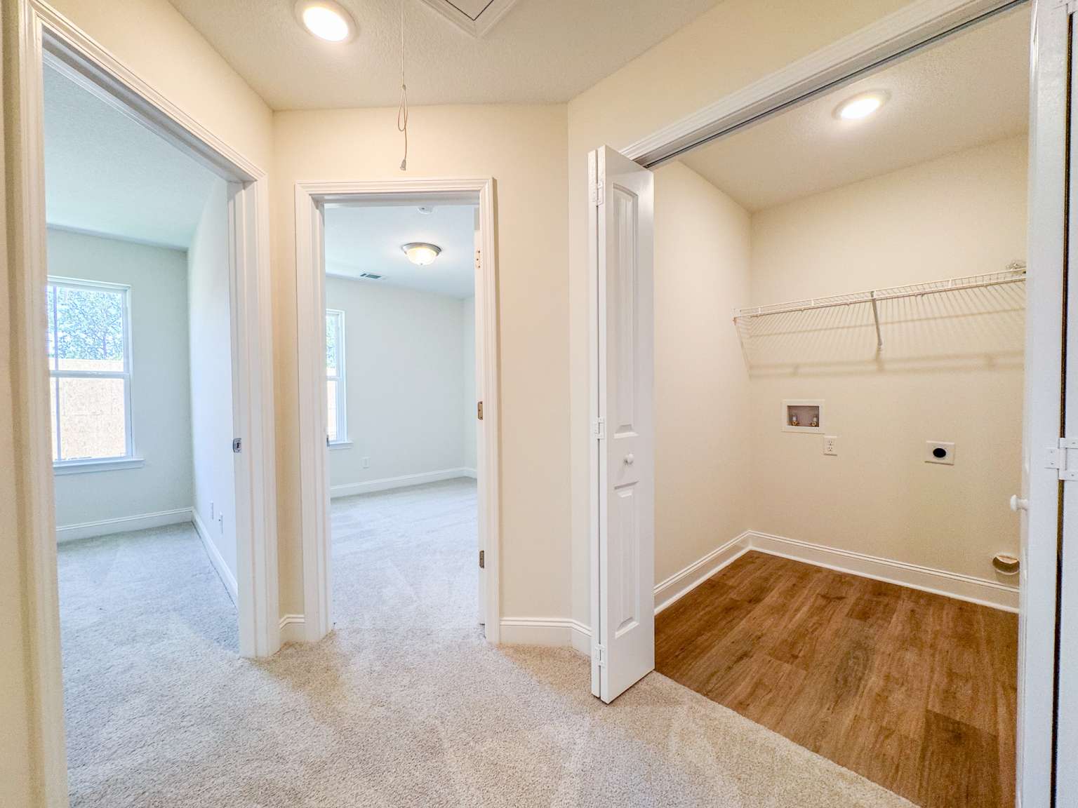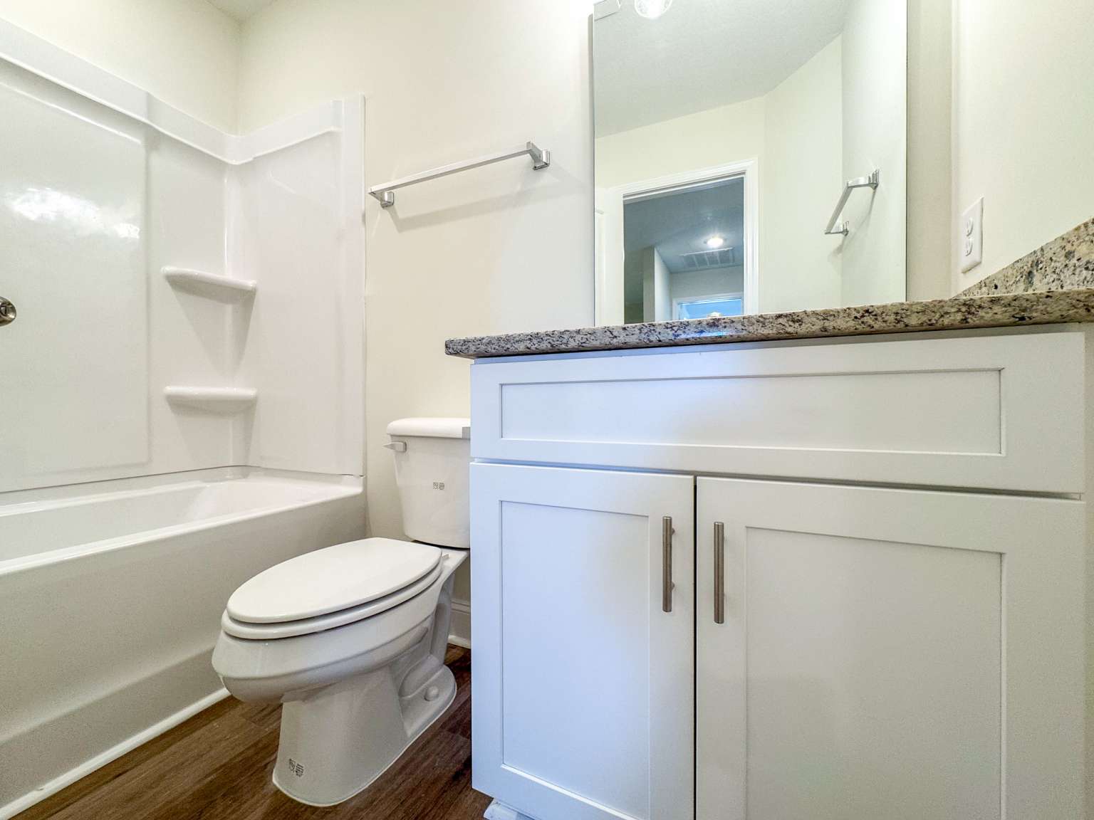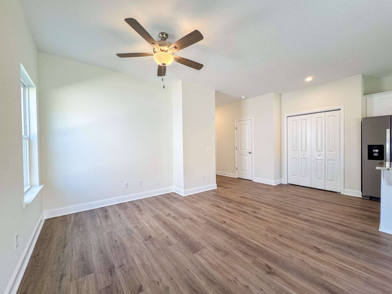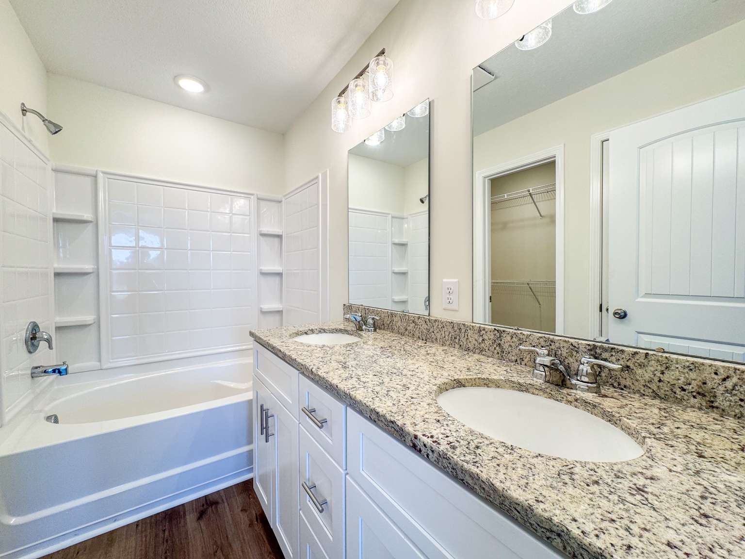 Move-in ready end-unit townhome at Heritage Pointe Townhomes in Hinesville! Located on the edge of Hinesville, close to new restaurants & up-and-coming shopping! Quick commute to Ft. Stewart, Hwy 17 & I-95! 3-bedroom, 2.5-bath townhome with granite counters throughout! Open living space on the first floor with access to the 1-car garage, half-bath & the backyard. The kitchen features a spacious pantry & new stainless steel appliances, including a refrigerator! From the island, look out to the dining area & family room, which features a ceiling fan. Enjoy a fenced & sodded backyard with irrigation from the patio! Upstairs, find two bedrooms, a hall bath, a laundry room & the primary suite. Within the primary suite is a ceiling fan, a walk-in closet & private bath. The private bath includes a dual vanity with granite counter & another walk-in closet! HOA to provide regular landscaping & annual pressure washing.