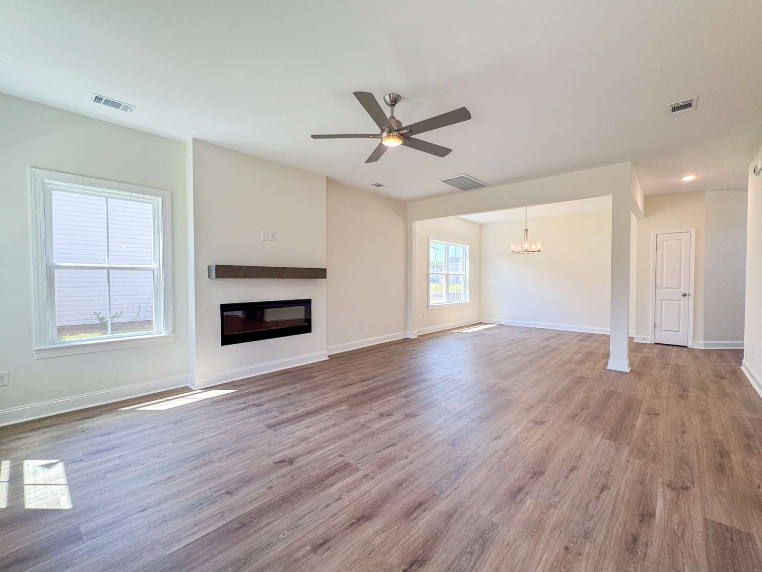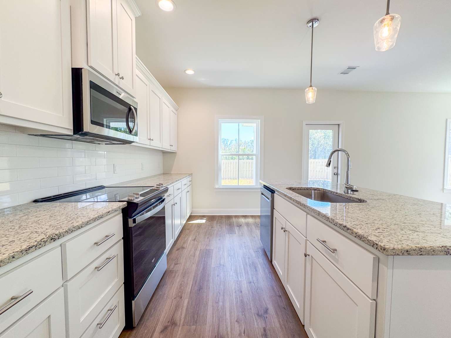 Gwinnett 2 plan in Alder Grove! Enjoy the beauty of coastal Liberty County with the convenience of being minutes from I-95! New construction 4-bedroom home with fenced backyard & covered patio. Open living space on the main floor with dining room & views to the backyard from the kitchen & family room. Enjoy a fireplace in the family room open to the stunning kitchen with corner pantry & ample counter space! Find crisp white cabinetry with granite counters & tile backsplash in the kitchen. Upstairs find three bedrooms that share a hall bath, laundry room and the primary suite. Within the primary suite enjoy a vaulted ceiling & a luxurious primary bath featuring tile flooring, tile shower with pan insert & granite vanity counters plus access to the walk-in closet. Estimated completion August-September 2025.