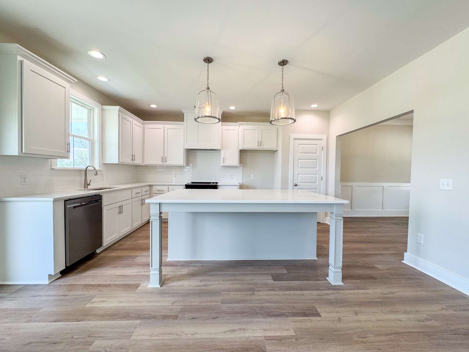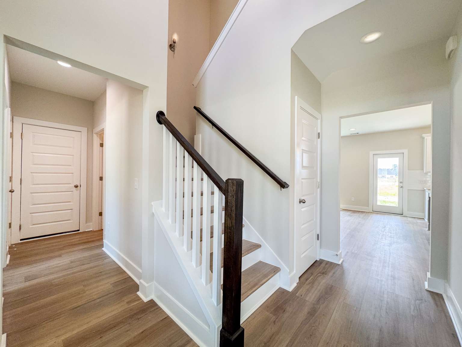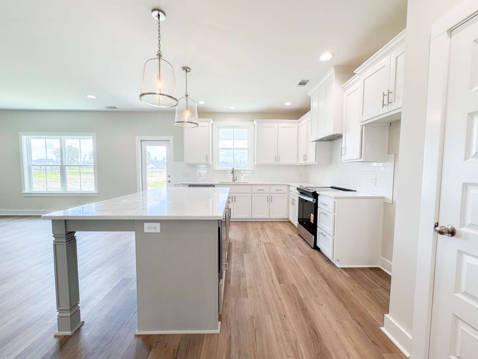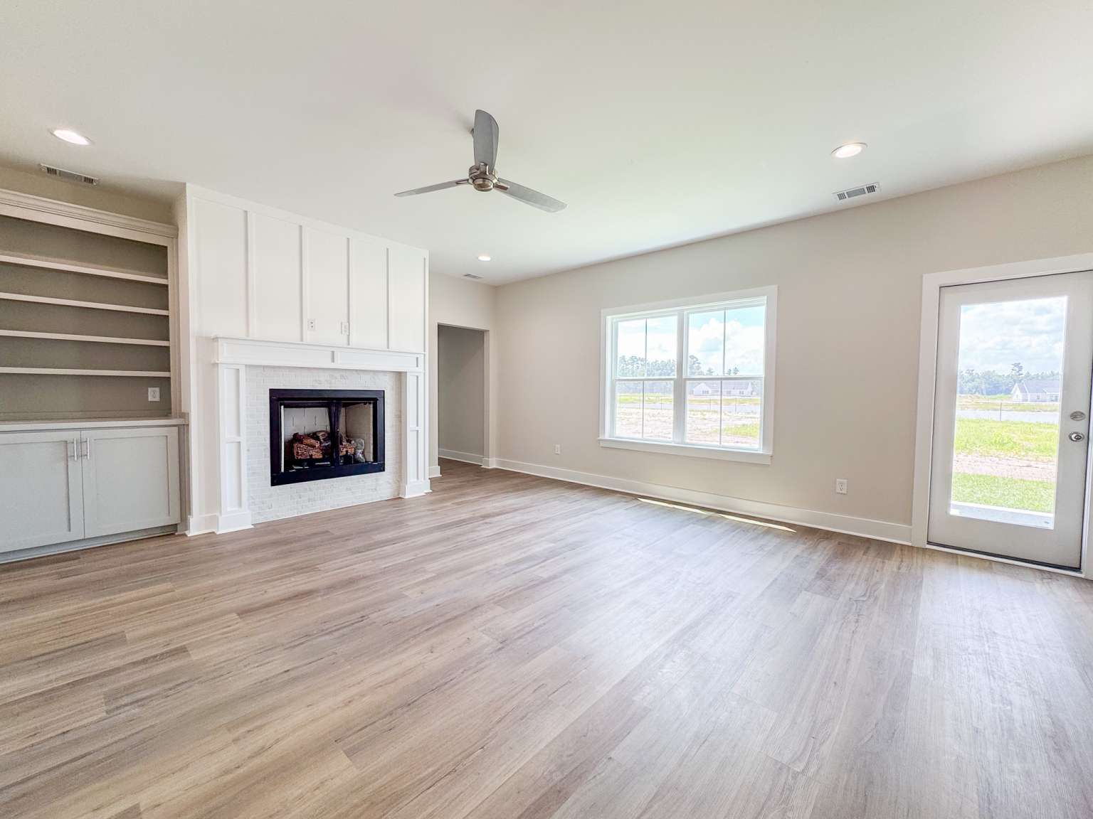 Two-story home in Midway with master on the main! Close to I-95, Hwy 17 & Hinesville! The Jericho plan in Cottages on Carter features a front porch perfect for welcoming guests that opens to a two-story foyer. Formal dining room sits adjacent to the foyer with access to the open kitchen & family room. The kitchen sparkles with quartz counters, elegant pendant lights, tile backsplash & an extended-depth island. The large family room features a fireplace with built in bookcase & backporch access! Enjoy your outdoor space with pond views from the spacious porch! Off the family room is the primary suite. Enjoy your private retreat with plank flooring, walk-in closet & private bath. The private bath features luxurious finishes including quartz counters, tile flooring, soaking tub & a tile shower with pan insert. Laundry room & half bath also located on the main floor. Upstairs find 3 nicely-sized bedrooms & a hall bath with quartz vanity counter!