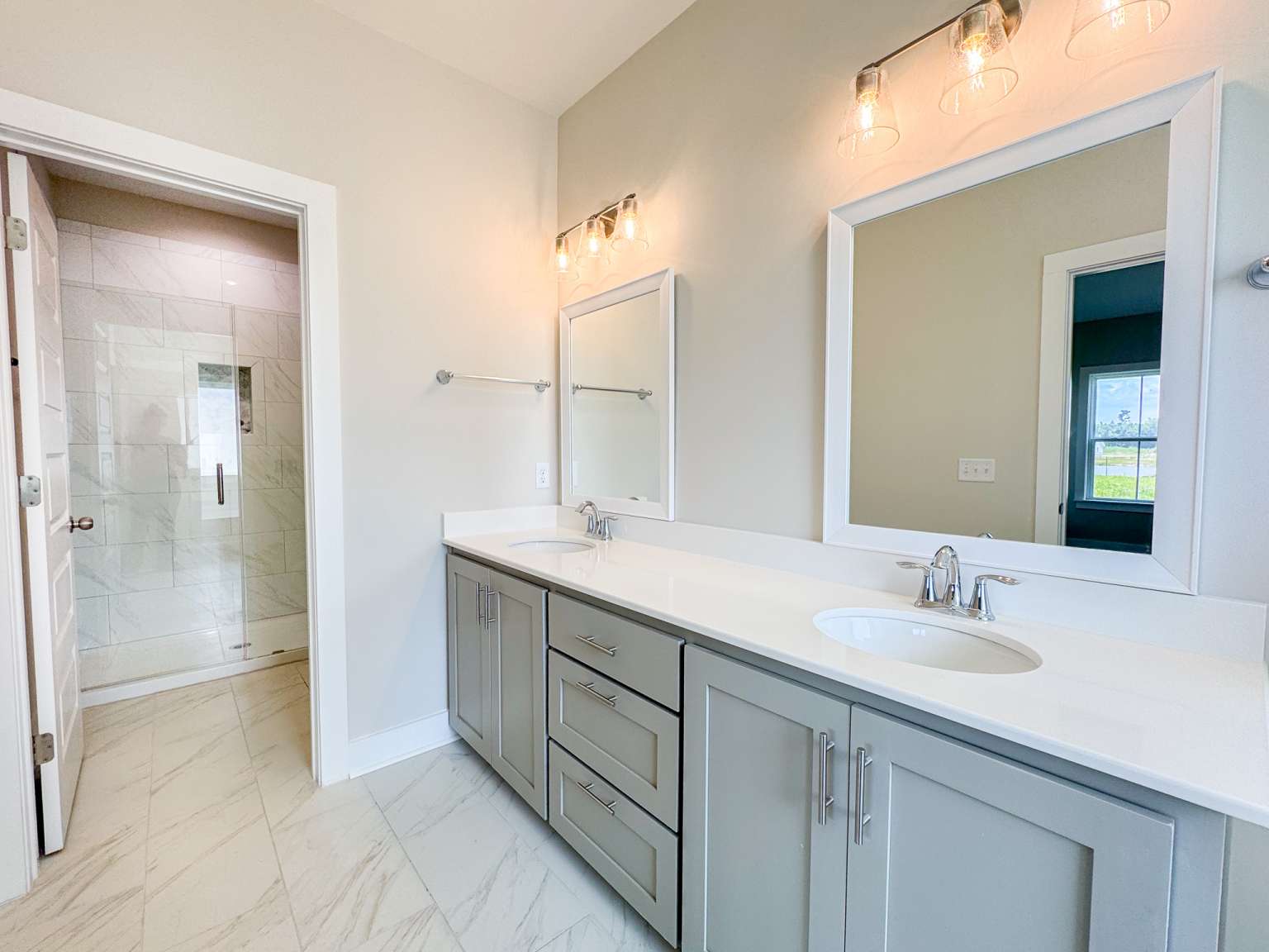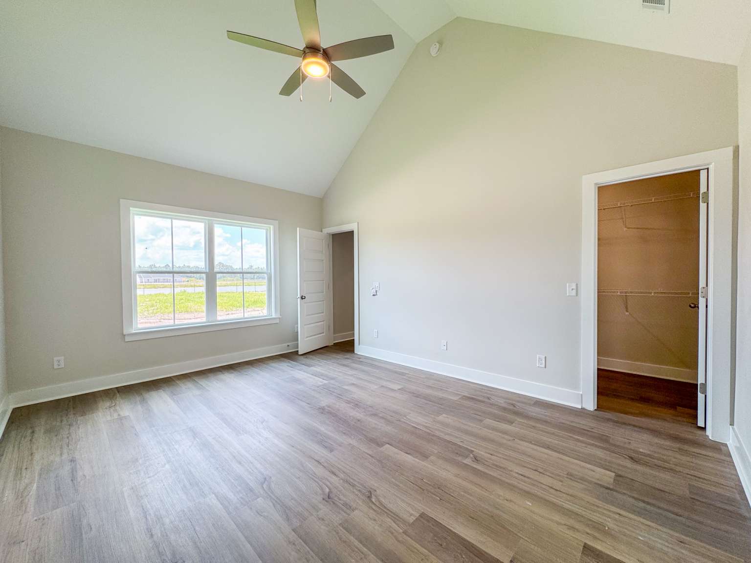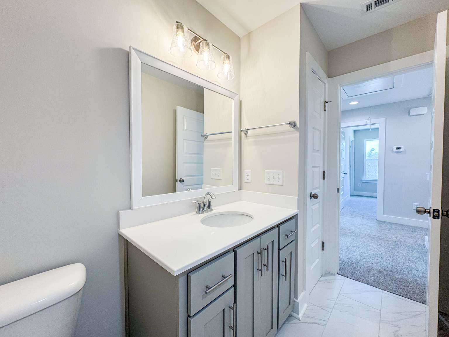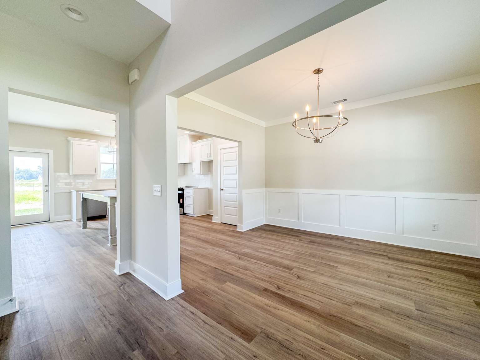 Two-story home in Midway with master on the main! Close to I-95, Hwy 17 & Hinesville! The Jericho plan in Cottages on Carter features a front porch perfect for welcoming guests that opens to a two-story foyer. Formal dining room sits adjacent to the foyer with access to the open kitchen & family room. The kitchen sparkles with quartz counters, elegant pendant lights, tile backsplash & an extended-depth island. The large family room features a fireplace with built in bookcase & backporch access! Enjoy your outdoor space with pond views from the spacious porch! Off the family room is the primary suite. Enjoy your private retreat with plank flooring, walk-in closet & private bath. The private bath features luxurious finishes including quartz counters, tile flooring, soaking tub & a tile shower with pan insert. Laundry room & half bath also located on the main floor. Upstairs find 3 nicely-sized bedrooms & a hall bath with quartz vanity counter!