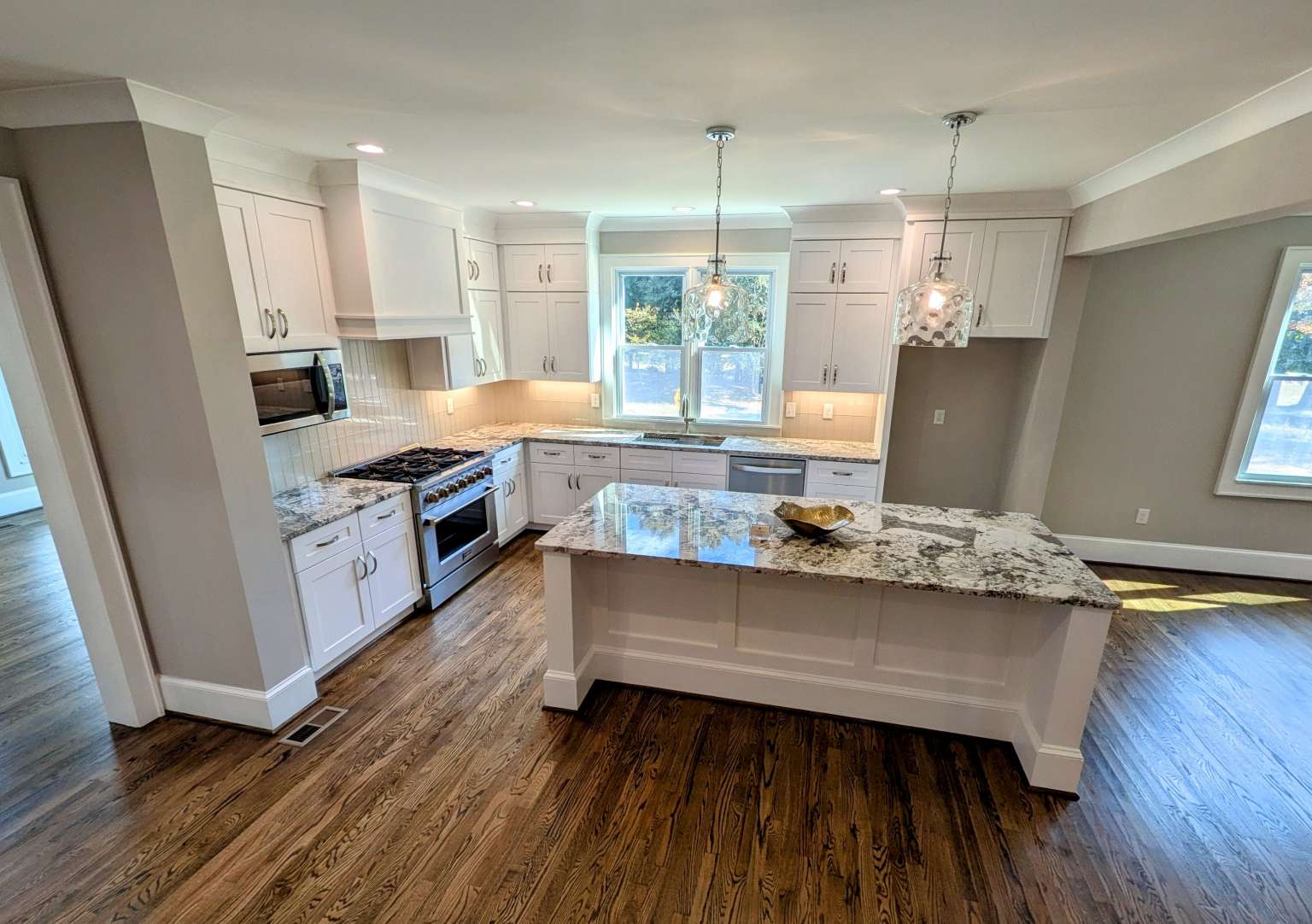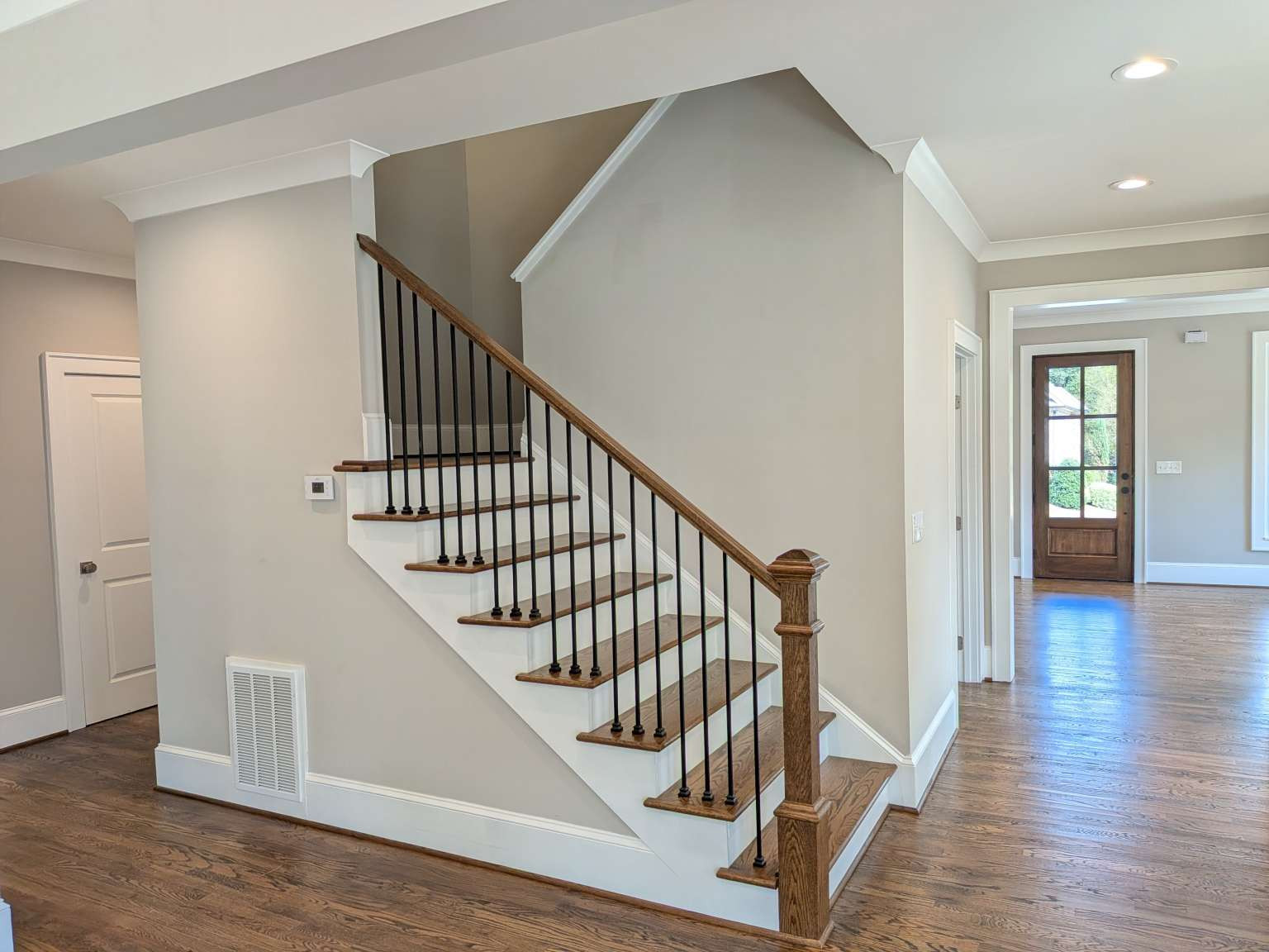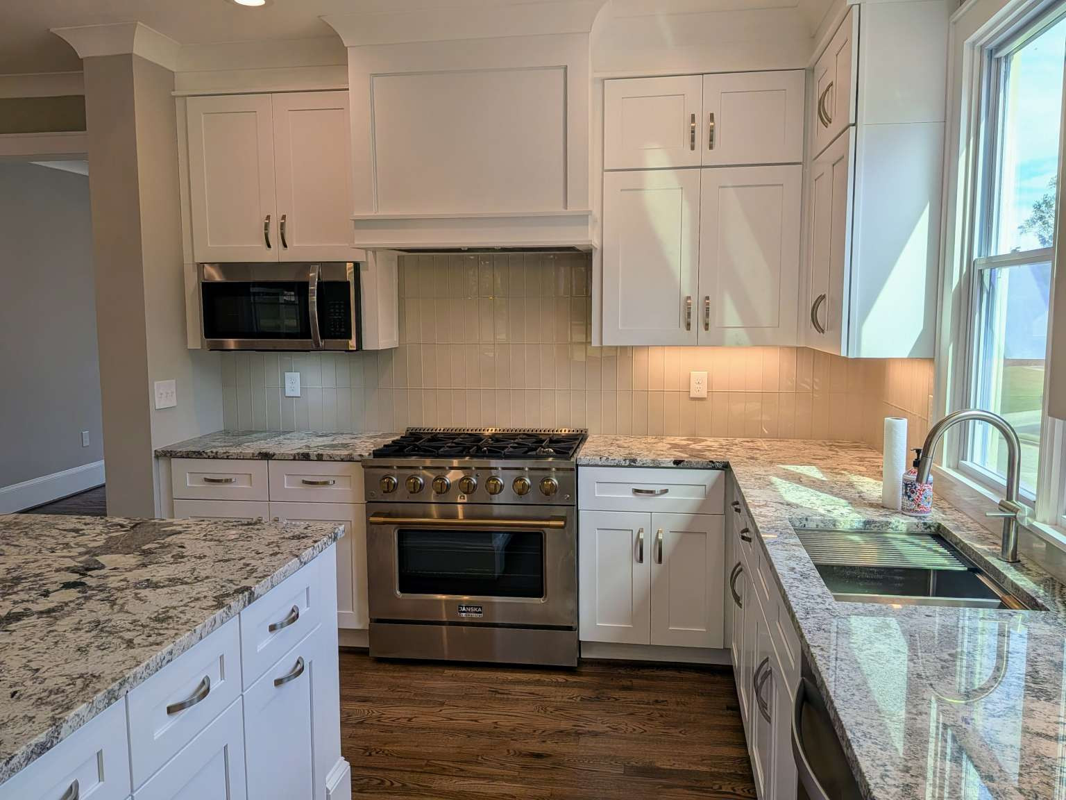 A golfer’s paradise! This 4-bedroom, 3-bathroom home with 9' ceilings and hardwood floors on a golf course lot with views of the 7th green, offers a great layout. The main floor features a flex room (ideal for a formal dining or a study), an open-concept kitchen with a large island, stainless appliances, granite countertops, and a pantry, flowing into a casual dining area and family room with a fireplace. A screened porch off these spaces enhances the golf course views. The first floor also includes a 4th bedroom with a full bathroom. Upstairs, a loft separates two secondary bedrooms with a shared bathroom from the Owner’s suite, which boasts dual vanities, a freestanding tub, a large shower with a bench, and a spacious organized closet. A laundry room with a folding station and a walk-in storage area above the garage complete the 2,774 sq. ft. home.