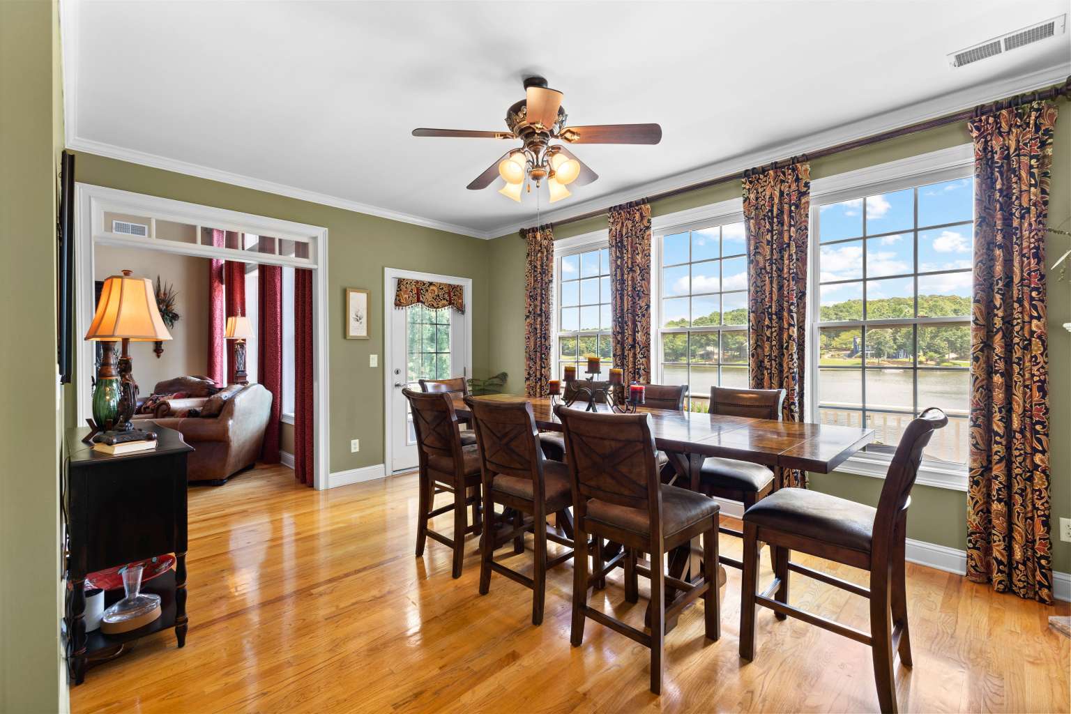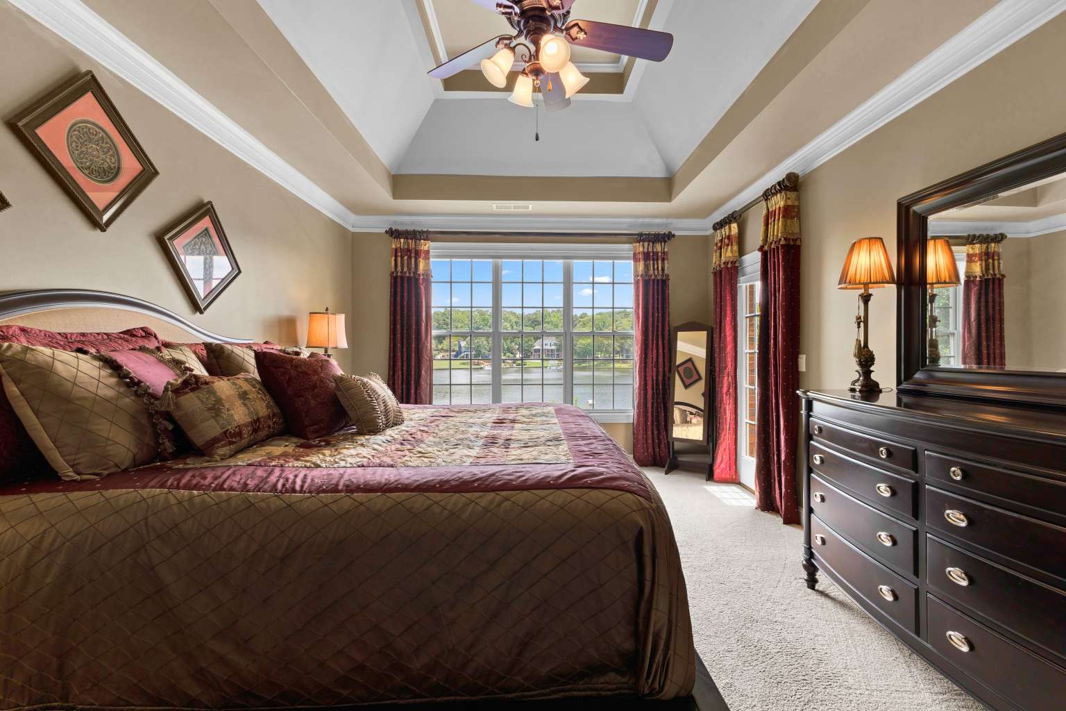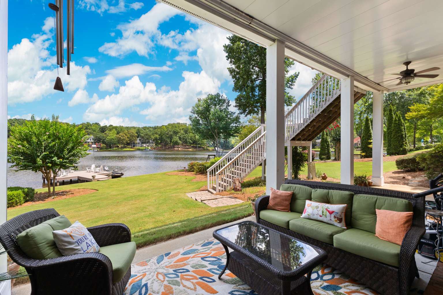 Enjoy breathtaking lakefront living in this beautiful custom home in the highly sought-after Lake Redwine community! This two-story home has a finished Terrace level. This home offers pristine lake views from nearly every room and is designed for both relaxation and entertainment. 4 bedrooms, 2.5 baths - including owner’s suite on the main level. Terrace level with wet bar, office/bedroom, full bath, and spacious family room, also includes three large unfinished storage areas - perfect for expansion or extra space. Custom flagstone fire pit, ideal for cozy nights by the lake. Private extended dock - perfect for your electric pontoon boat, kayak, or paddle board to enjoy this beautiful 318 acre lake. View breathtaking sunrises over the lake from the large deck. The neighborhood has Resort Style Amenities, including Clubhouse, 2 pools, lighted pickleball/tennis courts, marina, playground, fishing and swimming. Experience a vacation-like ambiance every day in this beautiful lakefront retreat. Driving convenience to Historic Downtown Newnan, shopping, dining, easy access to I-85 and 25 minutes to Atlanta airport.