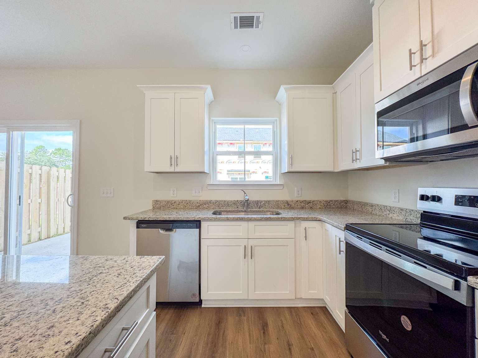 New construction townhome at Heritage Pointe townhomes in Hinesville! Located on the edge of Hinesville close to new restaurants & up-and-coming shopping! Quick commute to Ft. Stewart, Hwy 17 & I-95! 3-bedroom, 2.5-bath townhome with granite counters throughout! Open living space on the first floor with access to the 1-car garage, as well as the fenced backyard. The kitchen features a spacious pantry & stainless appliances including refrigerator! From the island look out to the dining area & family room with ceiling fan. Enjoy a sodded backyard with irrigation from the patio! Upstairs find two bedrooms, hall bath, laundry room & the primary suite. Within the primary suite is a ceiling fan, walk-in closet & private bath. The private bath includes a dual vanity with granite counter, shower/tub combo & another walk-in closet! HOA to provide regular landscaping. Estimated completion August 2025.