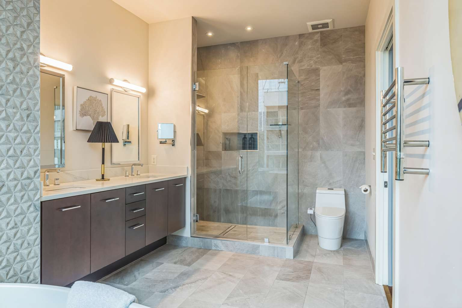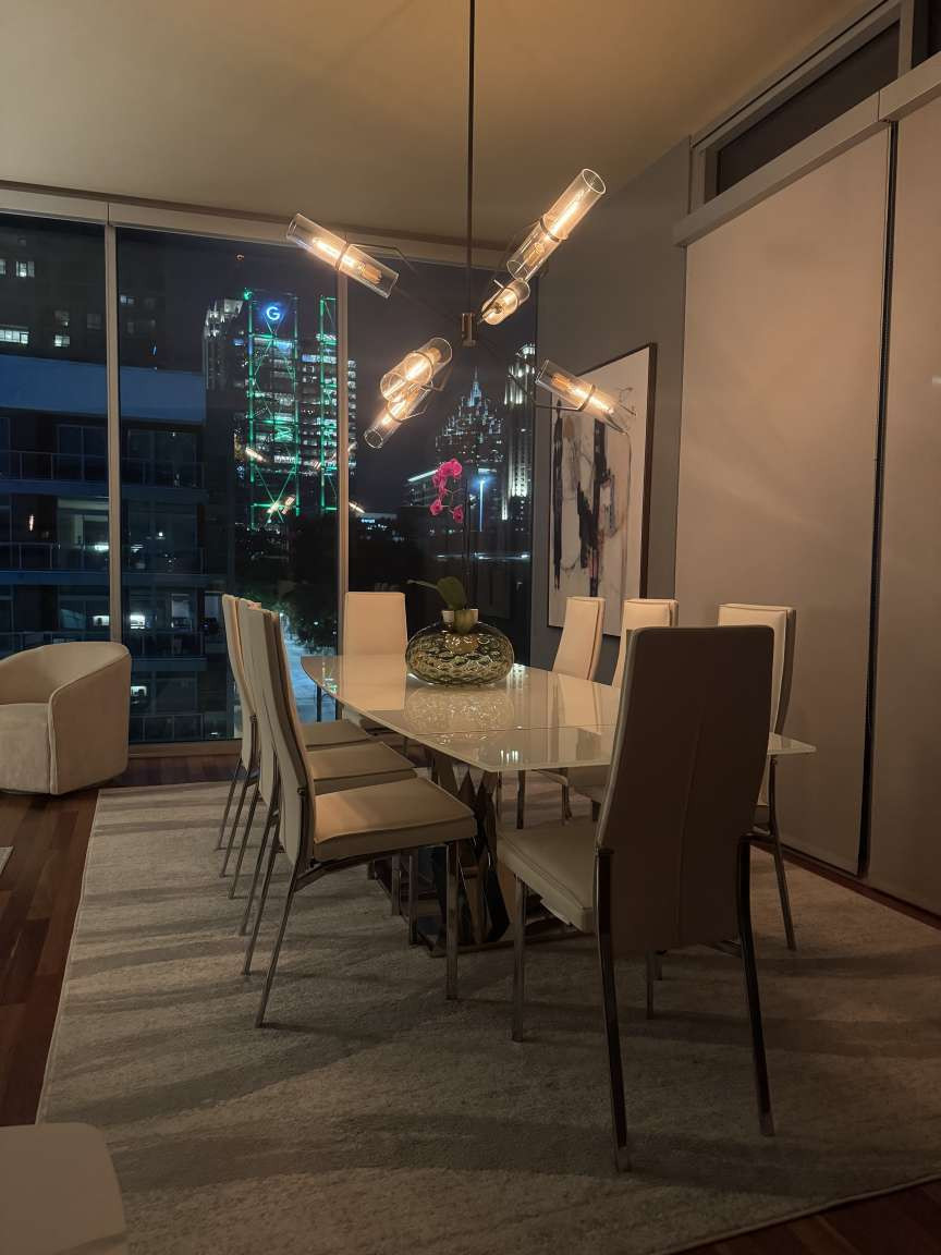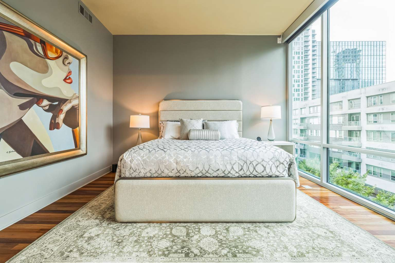 Boutique, high-rise 2bed/2bath condo in heart of Midtown! With 24 hours concierge, this 84 unit North facing condo building was designed for privacy. Each condo has its own elevator that opens directly to a vestibule for each home! This 6th floor unit is the largest 2bed/2bath floor plan in the building but is very private with only 2 other condos on this floor. The kitchen was totally renovated with Quartz counters, Sub-Zero refrigerator, a Sub-Zero wine fridge, Wolf oven, 5 burner induction cooktop, vented hood, and Bosch dishwasher. The spacious walk-in pantry is just off the kitchen with custom cabinets. The oversized primary suite includes a totally renovated primary bath with beautiful tiled walk-in shower and a separate soaking tub with amazing views of Midtown skyline!! There is a custom walk-in closet in the primary bedroom. At the other end of the condo there is a large second bedroom with a fully renovated ensuite bathroom including a large beautifully tiled walk-in shower, and two closets. This open and spacious floor plan with floor to ceiling windows in every room offers sweeping panoramic views of the Atlanta skyline. Newly painted and many custom high-end upgrades including cellular shades on every window. Both bedrooms and the primary bath also have blackout cellular shades. Custom lighting, heated windows to reduce interior window moisture, a newer HVAC system, full sized front-loading washer & dryer and a 50-gallon hot water heater! There is also a large covered and very private terrace off the living area that extends the home for outdoor living. A separate door in the private vestibule elevator area opens directly to the amenities on the same floor so you are just a few steps away from the gym, pool, the grill and cabana areas and even the guest suite is nearby. This is as private, resort style living as it gets while being in the heart of Midtown and just steps away from everything! It is just 2 blocks to MARTA, and a few blocks to great restaurants, Publix and Whole Foods, the High Museum, Piedmont Park, the Beltline and Fox Theater. The new furniture is also available for purchase under a separate contract!