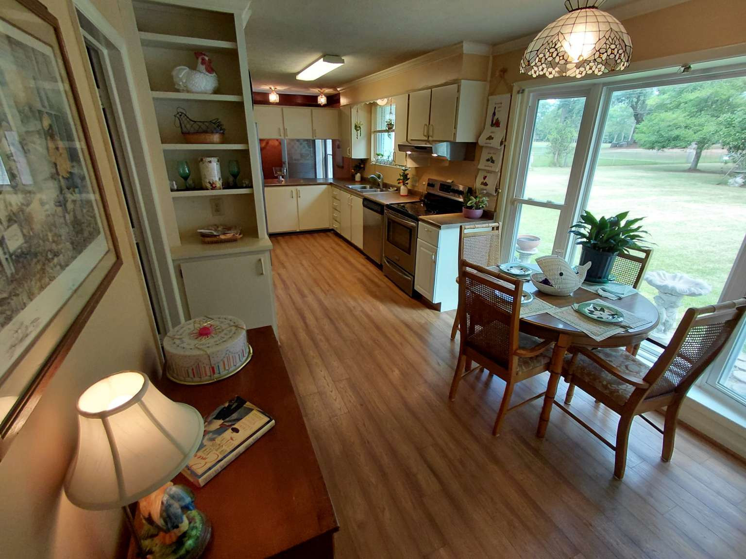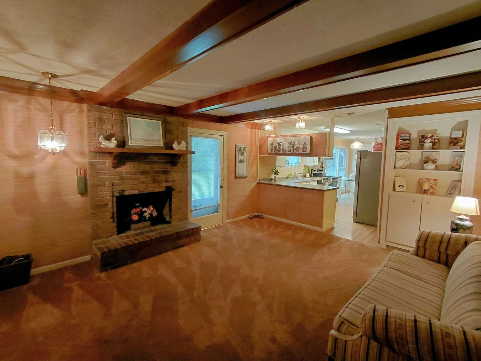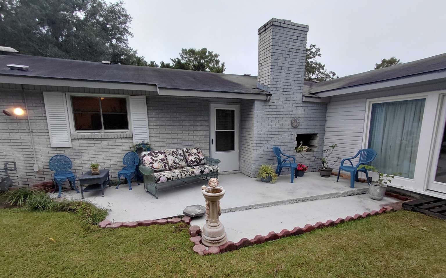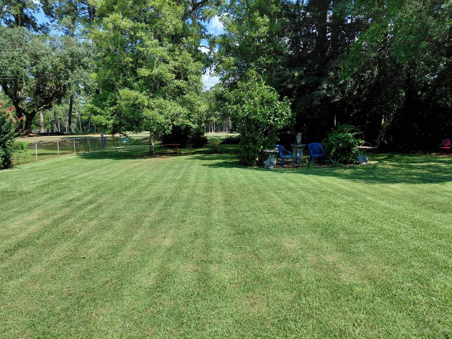 Quality built attention to detail 2467 sq.ft. 4Bdrm 3Ba, well maintained Move-in Condition. 1 story split plan, Foyer opens into light filled Living/Dining rm. 21'ft Kitchen Bay Window breakfast area 1/2 acre fenced park-like view sun or shade choices all day. Stainless Appliances Convey Smooth-top Range, Fridge, Microwave, Dishwasher. Brick wood-burning Fireplace in Family rm, ceiling beams, built-in bookcase & access to patio. Ceramic bath Premier Care Walkin tub-shower for 2 bedrms. 2 Large "master" Suites w/peaceful retreat for each. A 19'x19' great-room adds valuable space to a guestroom, gameroom, etc. So many great features to appreciate home situated for privacy on both sides, fenced yard, mature trees, garden area, pool space, lawnmower shed, golf cart pad, 1covered carport, 30' motorhome pad & 4 paved auto spaces! Did I mention NO HOA ! And NO FLOOD Insurance ! Walking distance to big beautiful park, shopping, high school, college.