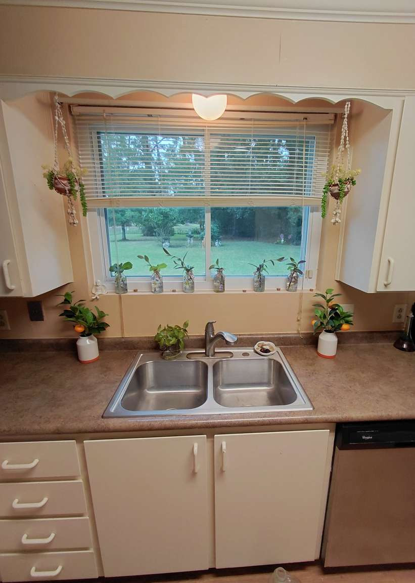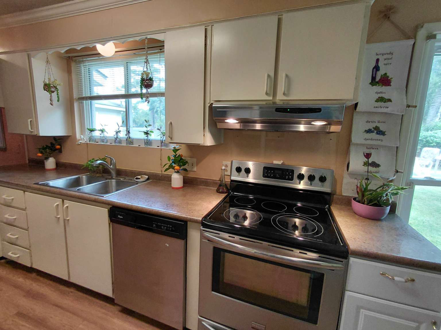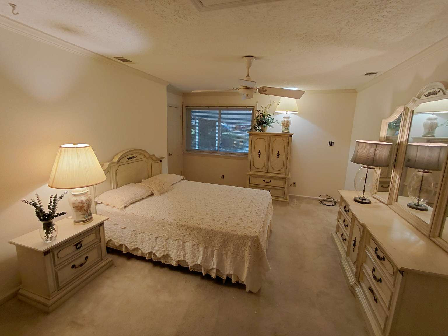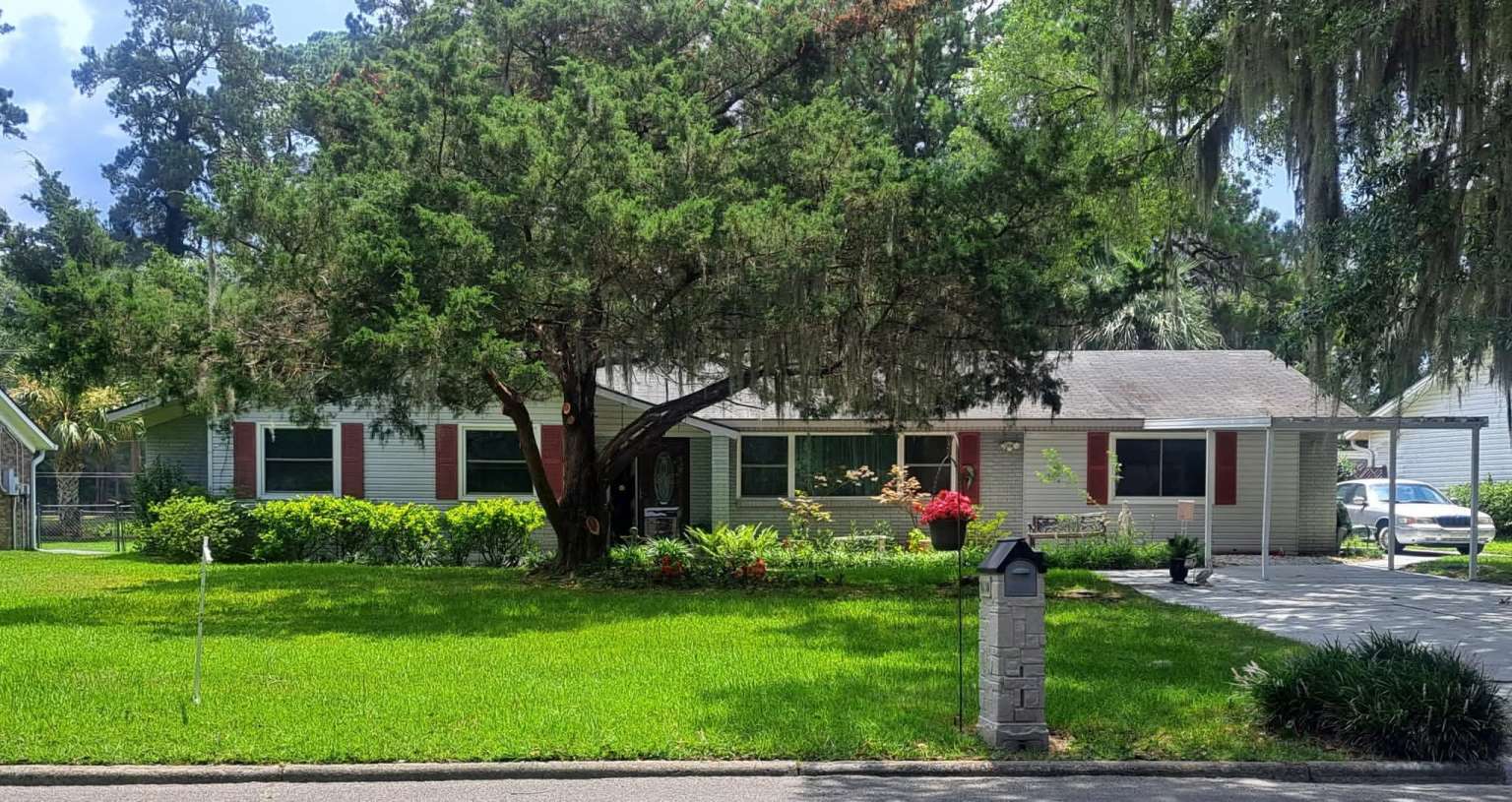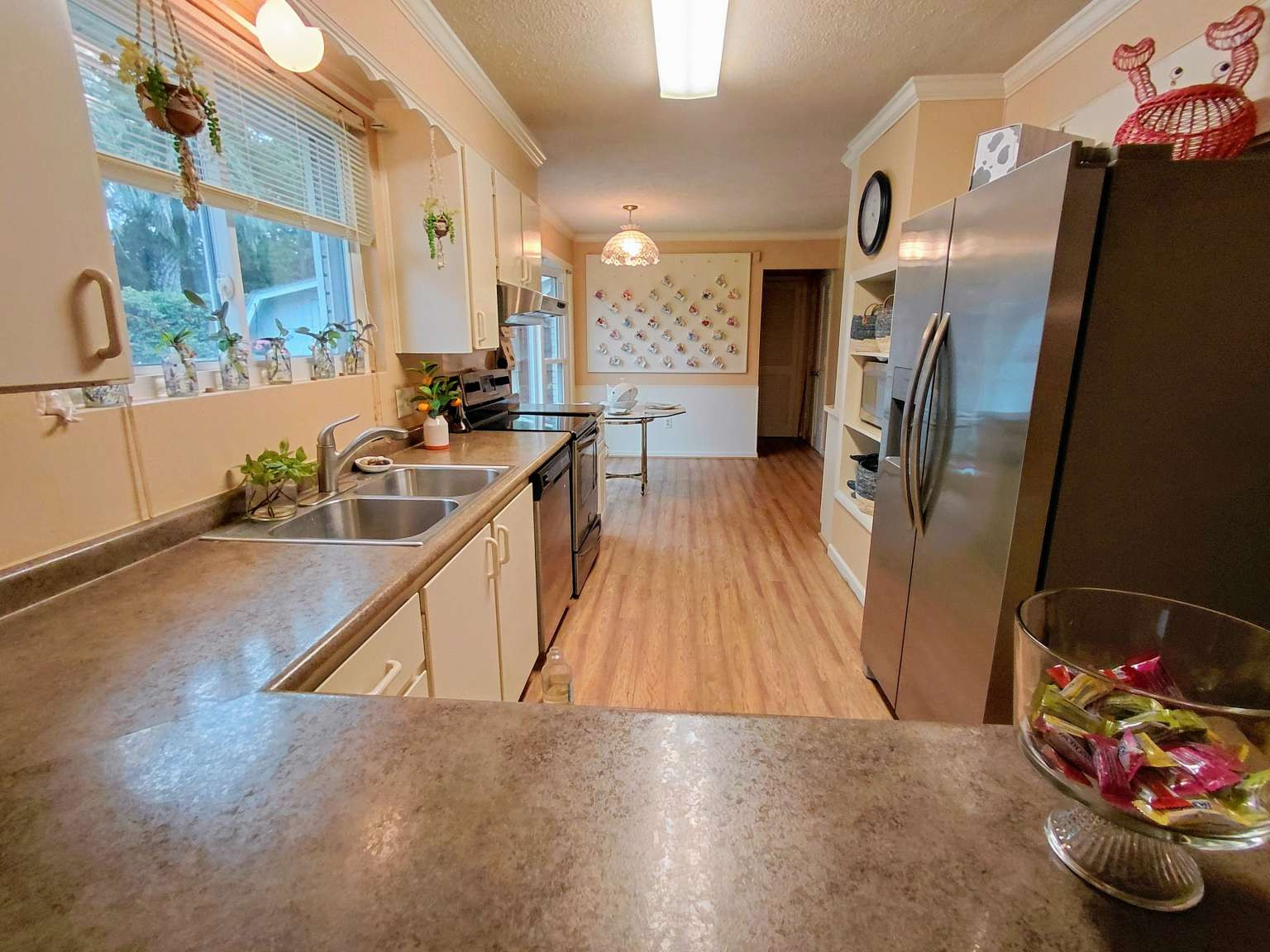 Quality built attention to detail 2467 sq.ft. 4Bdrm 3Ba, well maintained Move-in Condition. 1 story split plan, Foyer opens into light filled Living/Dining rm. 21'ft Kitchen Bay Window breakfast area 1/2 acre fenced park-like view sun or shade choices all day. Stainless Appliances Convey Smooth-top Range, Fridge, Microwave, Dishwasher. Brick wood-burning Fireplace in Family rm, ceiling beams, built-in bookcase & access to patio. Ceramic bath Premier Care Walkin tub-shower for 2 bedrms. 2 Large "master" Suites w/peaceful retreat for each. A 19'x19' great-room adds valuable space to a guestroom, gameroom, etc. So many great features to appreciate home situated for privacy on both sides, fenced yard, mature trees, garden area, pool space, lawnmower shed, golf cart pad, 1covered carport, 30' motorhome pad & 4 paved auto spaces! Did I mention NO HOA ! And NO FLOOD Insurance ! Walking distance to big beautiful park, shopping, high school, college.