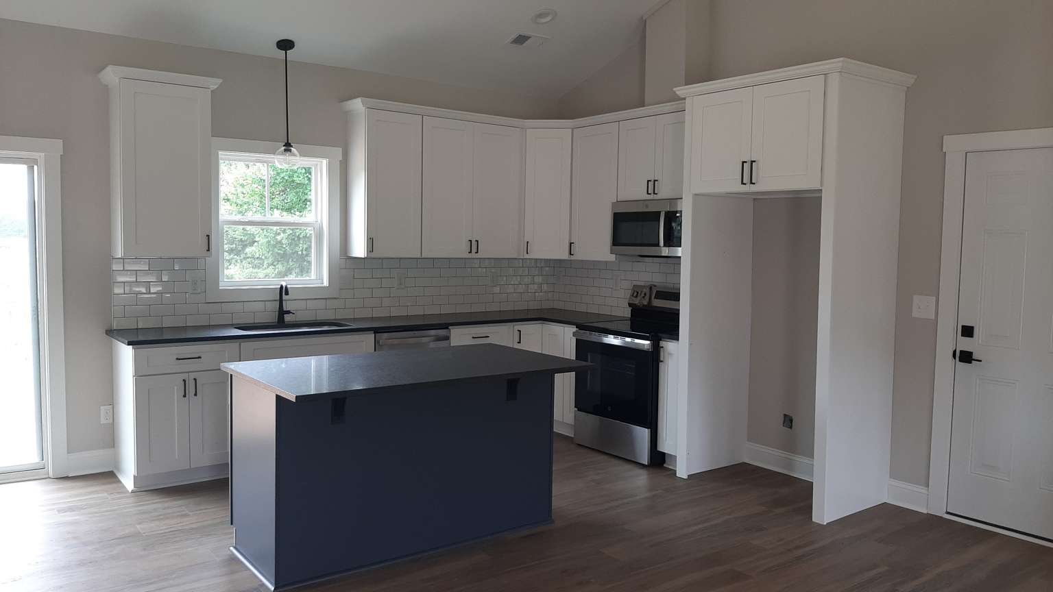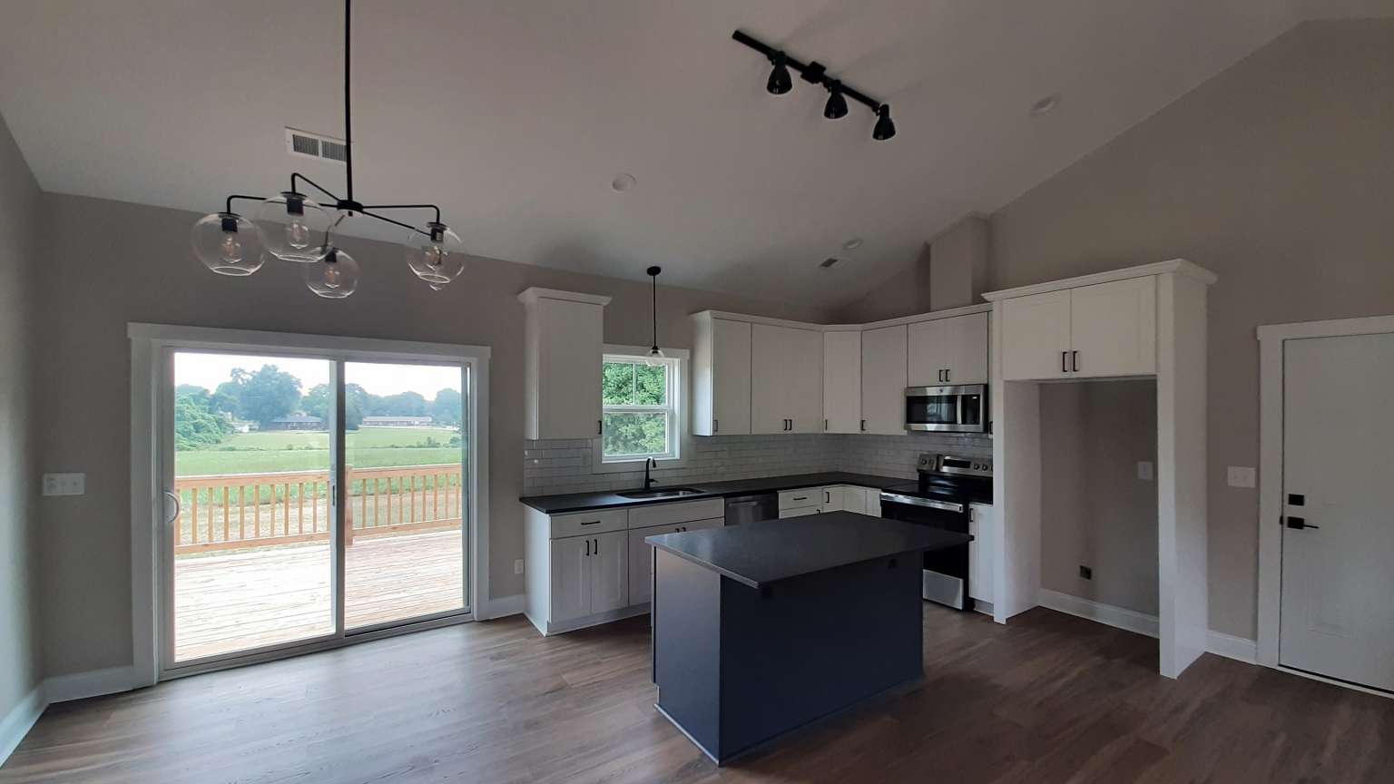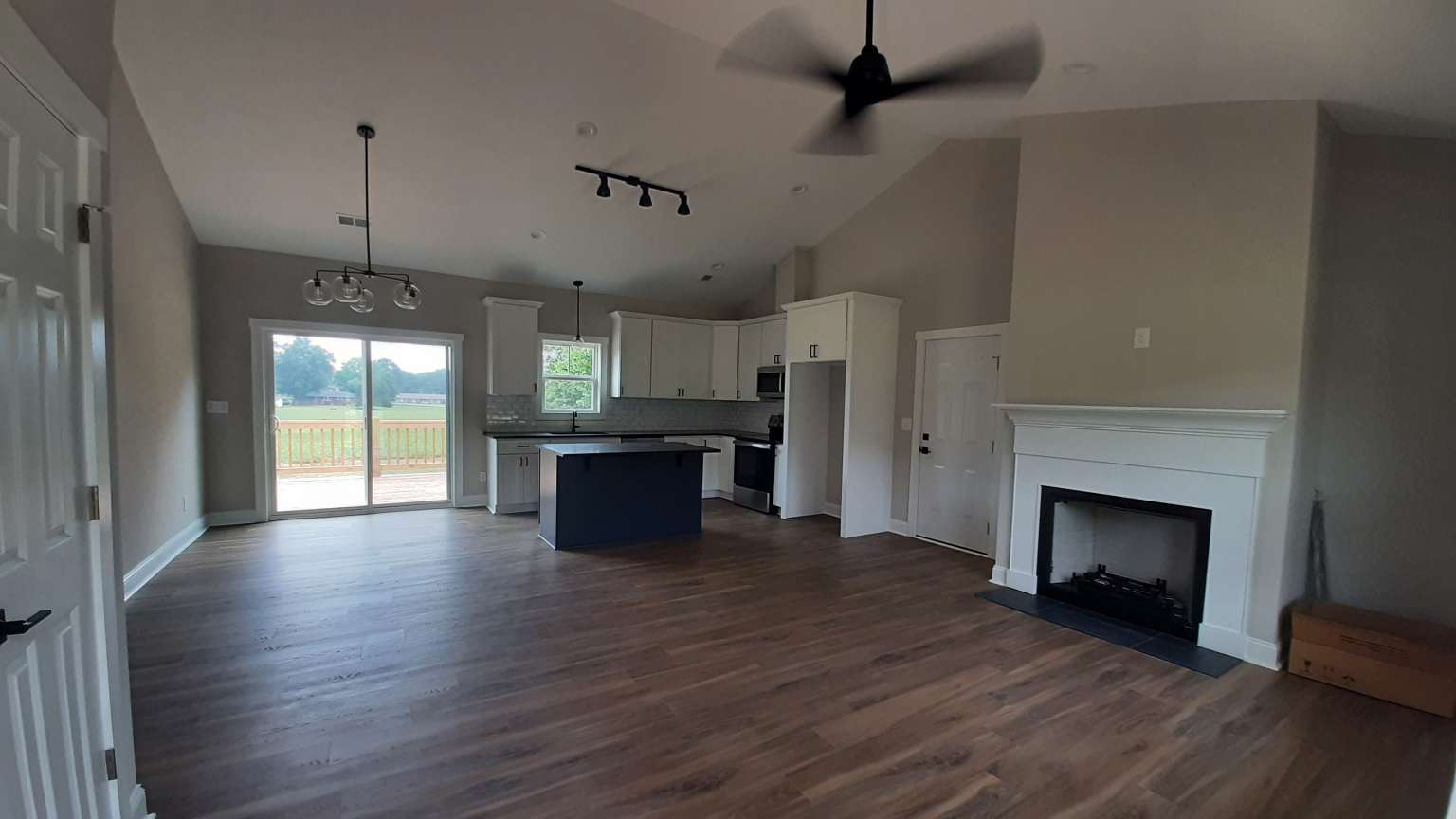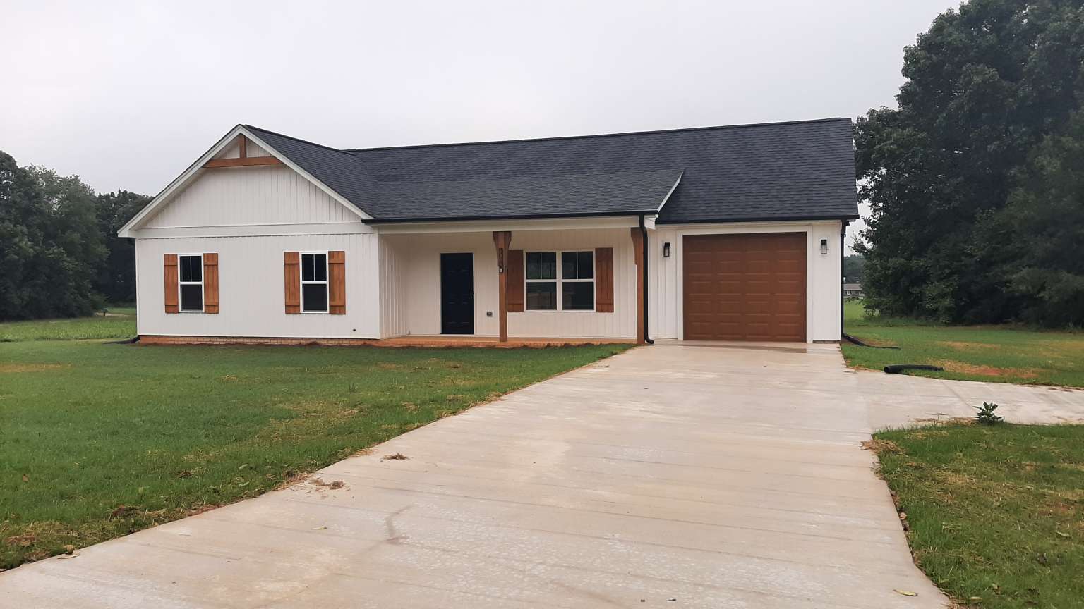 New construction in convenient location with low Yadkin taxes. Exterior Features include: • Low maintenance exterior • Cedar timber accents and shutters • Brick front and side foundation • Rocking chair front porch • High performance windows • Architectural roof shingles • Board and batten siding • Deck off of dining room • Insulated garage door with remote opener • Public water, private septic • 0.63 acre lot Interior Features include: • Primary bedroom suite with private bathroom • Tile shower and custom glass door • Walk-in closet space with solid wood shelving • Flat panel solid wood cabinetry • Honed Granite countertops • Stainless steel appliances • Plank floors throughout • Gas fireplace in living room • Open concept living/dining/kitchen area with cathedral ceiling • Solid wood baseboard and trim • Tub/shower combo in 2nd bath • Laundry center conveniently near bedrooms • Extra deep garage • High efficiency heat pump and air conditioning