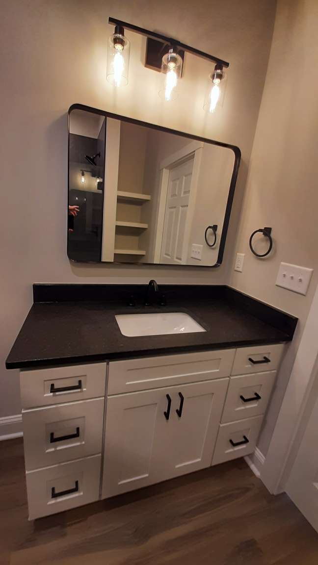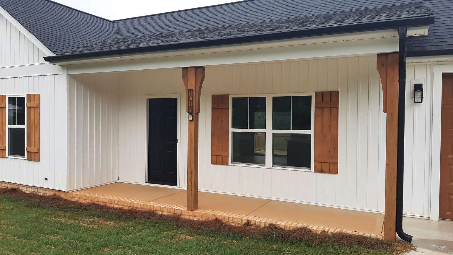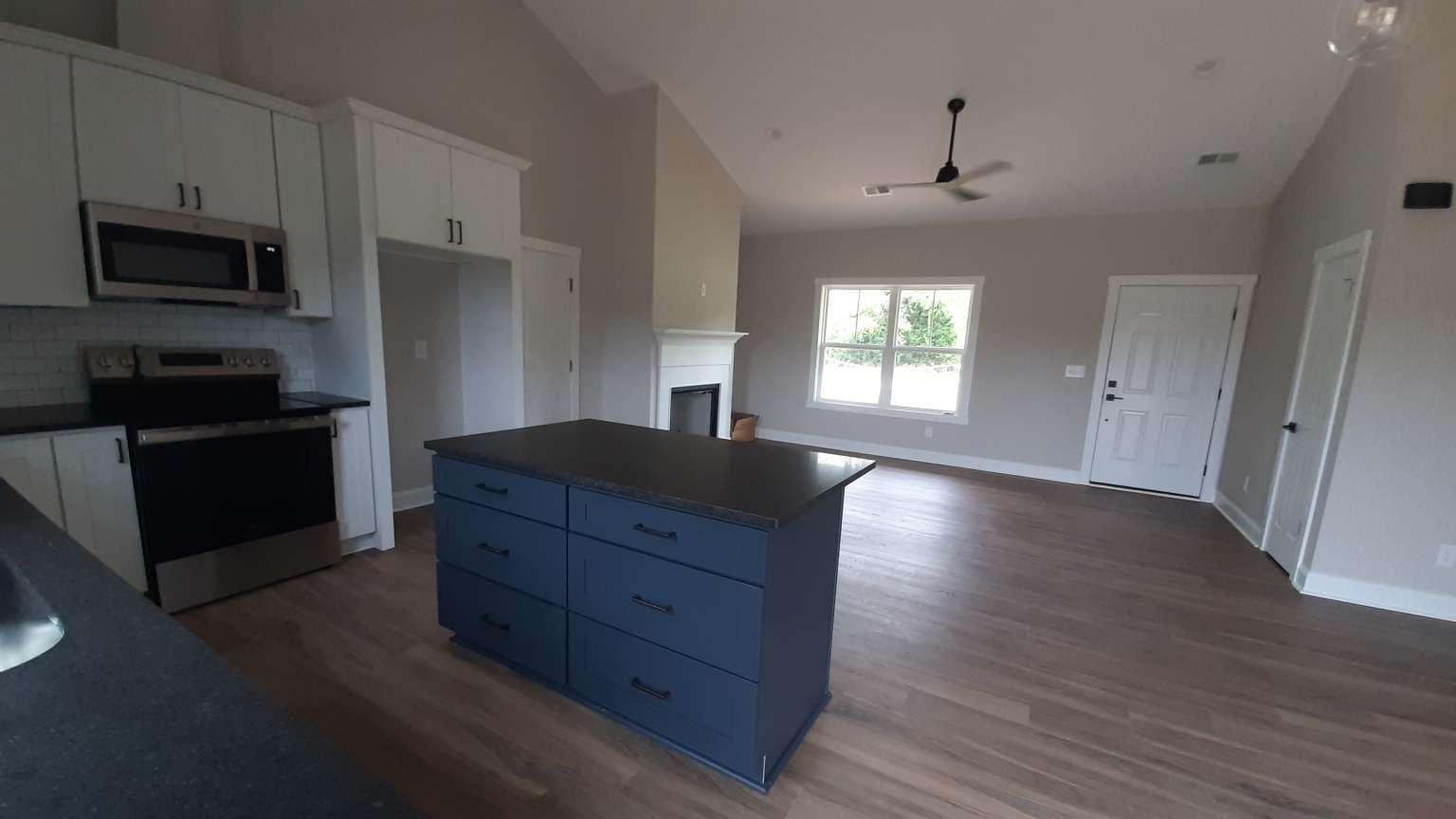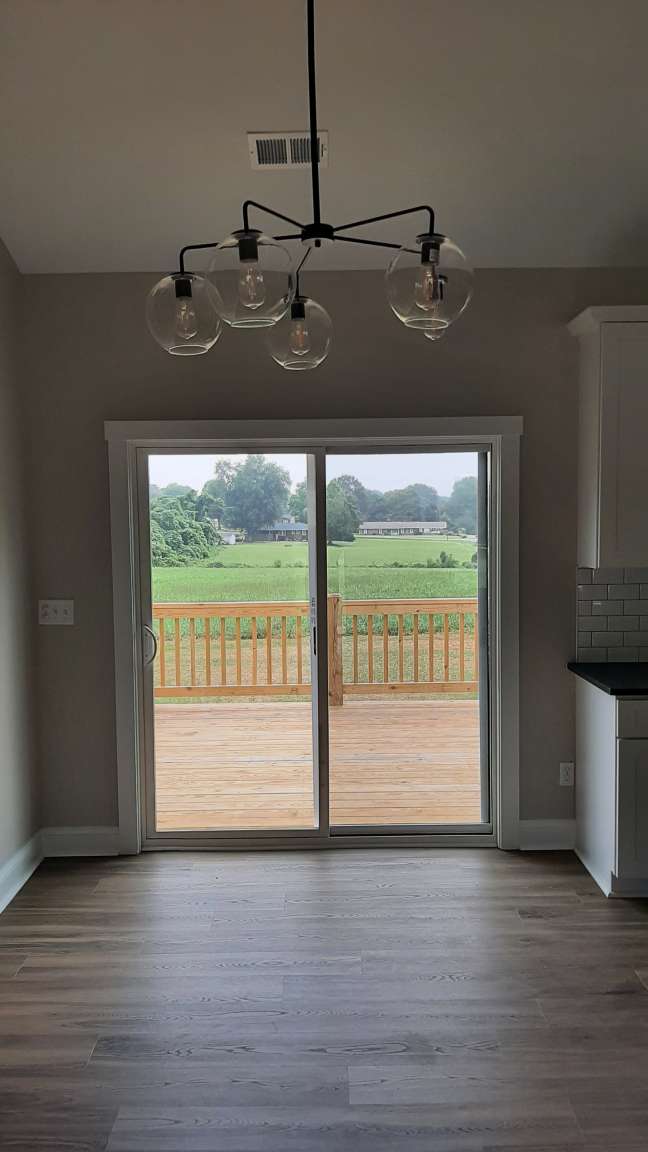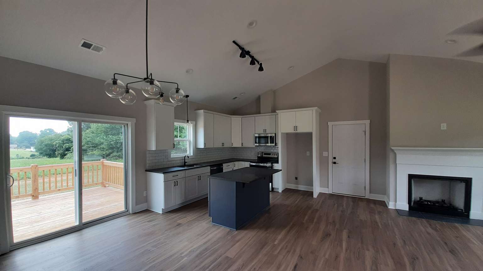 New construction in convenient location with low Yadkin taxes. Exterior Features include: • Low maintenance exterior • Cedar timber accents and shutters • Brick front and side foundation • Rocking chair front porch • High performance windows • Architectural roof shingles • Board and batten siding • Deck off of dining room • Insulated garage door with remote opener • Public water, private septic • 0.63 acre lot Interior Features include: • Primary bedroom suite with private bathroom • Tile shower and custom glass door • Walk-in closet space with solid wood shelving • Flat panel solid wood cabinetry • Honed Granite countertops • Stainless steel appliances • Plank floors throughout • Gas fireplace in living room • Open concept living/dining/kitchen area with cathedral ceiling • Solid wood baseboard and trim • Tub/shower combo in 2nd bath • Laundry center conveniently near bedrooms • Extra deep garage • High efficiency heat pump and air conditioning