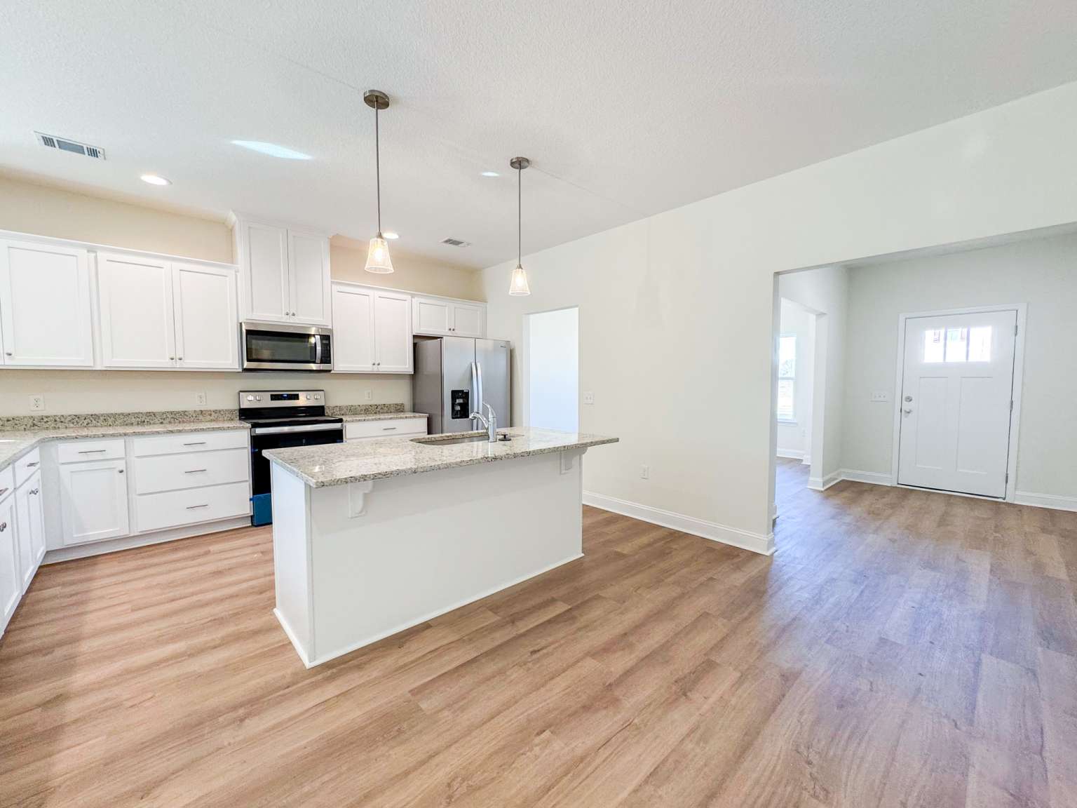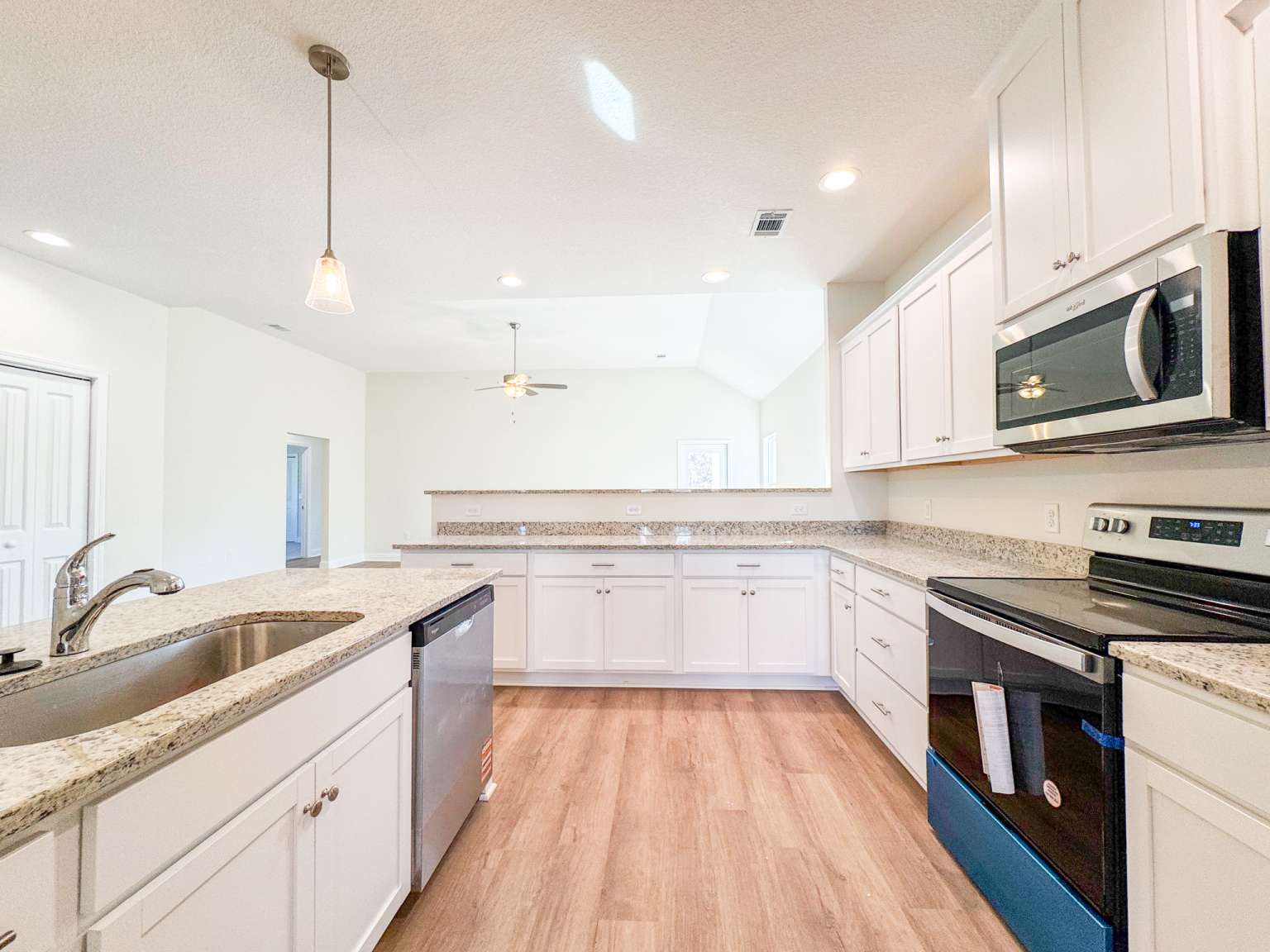 Sprawling ranch plan home in Boundary Hall! Just minutes from Ft. Stewart, local schools, and Hinesville’s shopping & dining, the Molly Plan is designed for comfort and style. Step inside to a formal dining room welcoming you from the foyer, then flow effortlessly into the open-concept kitchen featuring granite countertops, stainless steel appliances, and plenty of space to entertain. Relax on the covered porch just off the family room—perfect for morning coffee or evening unwind. Practicality meets convenience with laundry, half bath, and garage access right from the kitchen. Just off the family room, take a hallway to 3 bedrooms, a secondary bath, and a luxurious primary suite complete with two walk-in closets, a soaking tub, and separate shower. With granite countertops throughout, this home blends elegance and everyday functionality beautifully. Estimated completion December 2025.