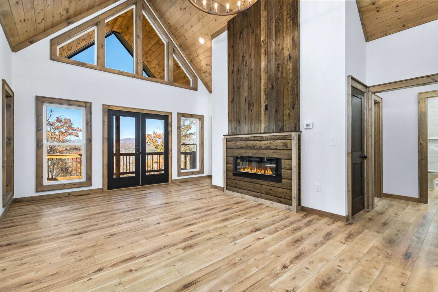 New construction. 5.66 acres. Year round unobstructed North Georgia Mountain views. Kitchen with large center island, granite countertops, stainless steel appliances. The open-concept design flows seamlessly into the family room with vaulted wood ceilings, fireplace and large light filled windows framing the breathtaking view. Continue to the outdoors through the French doors, onto a spacious rear deck, perfect for morning coffee or sunset gatherings. The primary suite is a true retreat with private deck access through double glass doors and a spa-inspired bathroom featuring a soaking tub, separate tiled shower with stone accents. 2 more spacious bedrooms and full bath finish the main level. The lower level features 2 BONUS ROOMS, a full BATH and a large REC ROOM giving you endless options. Don't miss this rare opportunity for those seeking full time living, a second home or an income producing VACATION RENTAL. 3.5 miles from downtown Ellijay. Driveway and main road will be paved.