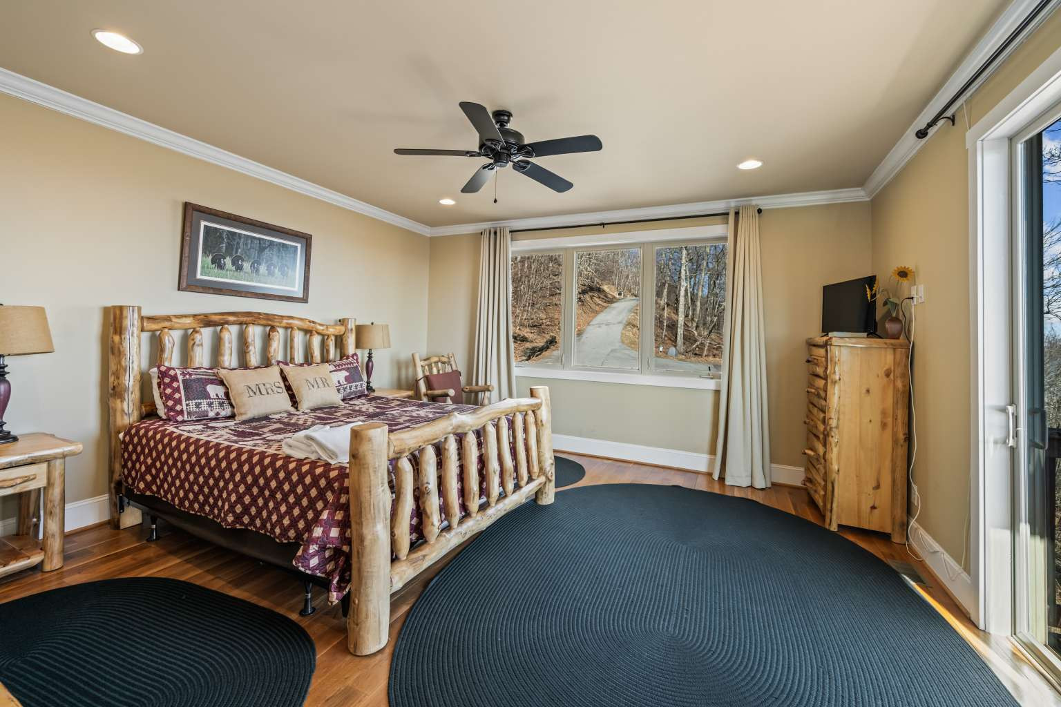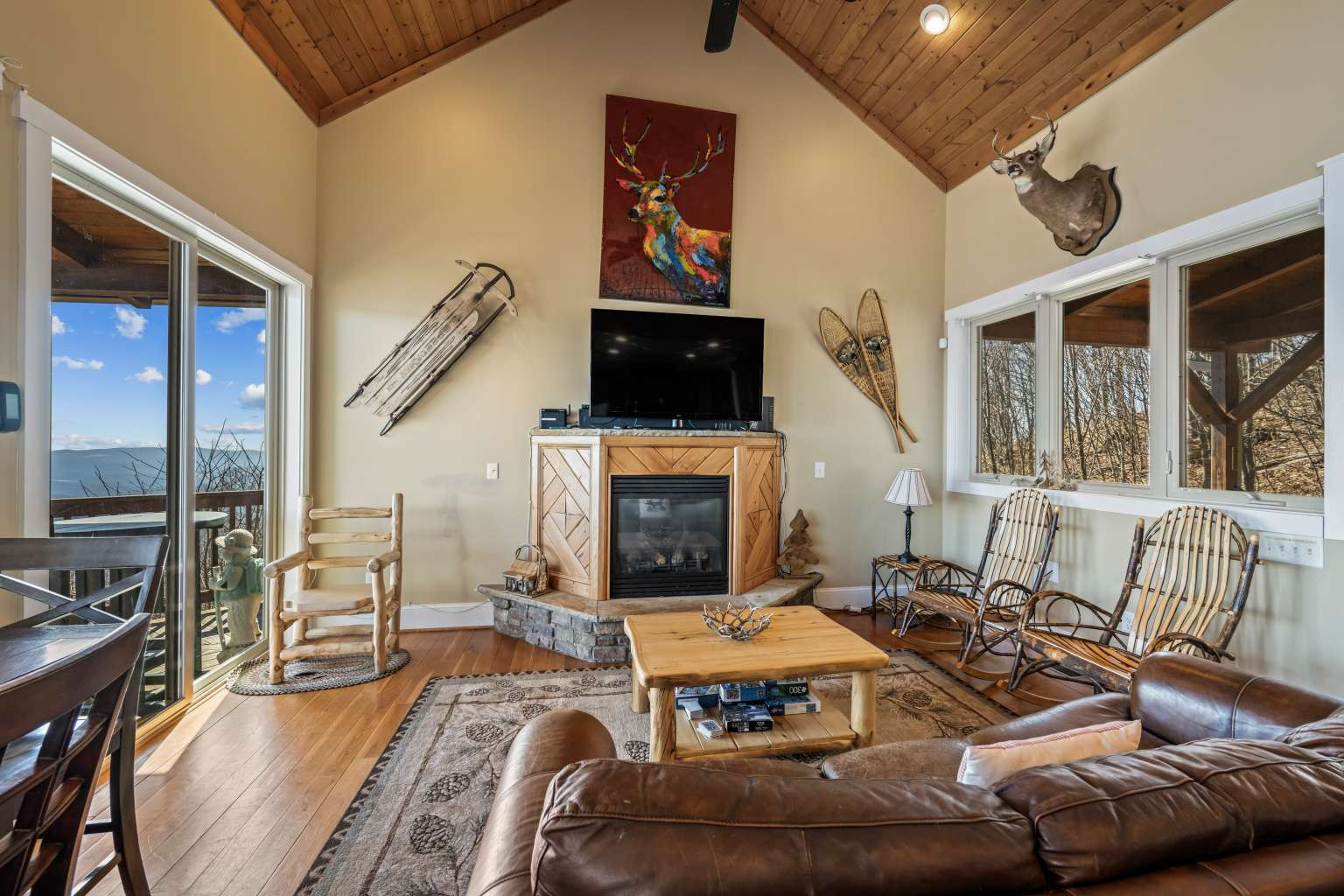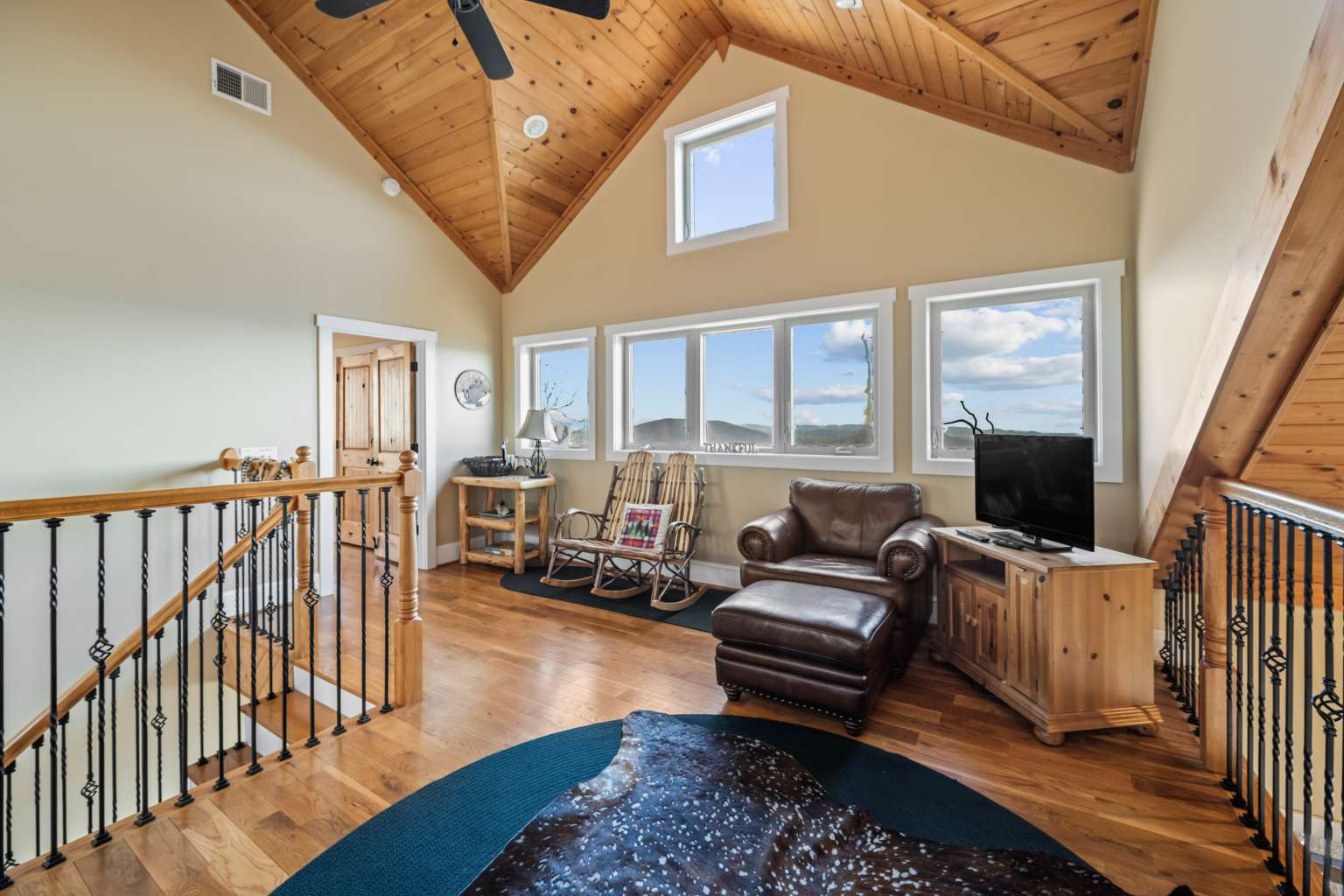 Luxurious cabin with breathtaking year-round, long range 100-mile views. This home is bright and airy and is not your typical mountain cabin. All the finishes are top of the line, with granite counters, travertine baths, and wood floors throughout. This home has three levels of cozy beauty, with a bedroom and full bath on each floor. The first floor offers a fireplace in the bedroom and a beautiful bathroom. In the first-floor bedroom you will enjoy direct access to the wraparound deck. The second level hosts another wraparound deck with breathtaking views, the main room, amazing kitchen, and a spacious king size bedroom. The upper floor offers a loft and private suite with a third bedroom. The loft is perfect for hanging out to read late into the night or greet the day with a quiet cup of coffee. If you are a morning person, you will never see a prettier sunrise than from the loft. Enjoy luxurious space and the panoramic view from nearly every room. You'll feel above it all at 4500'!