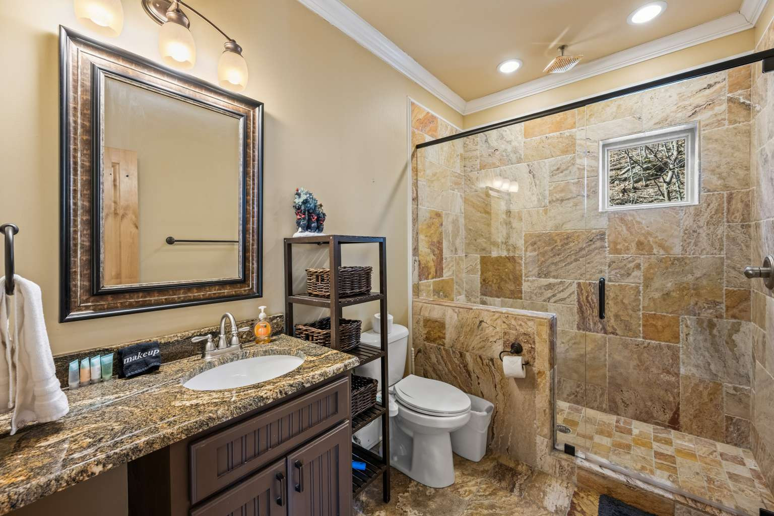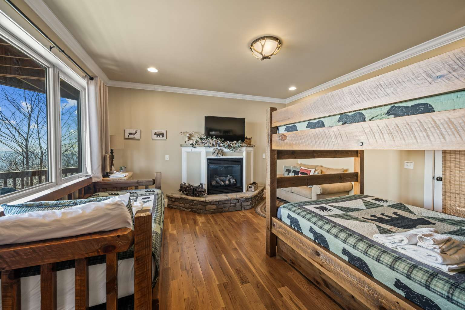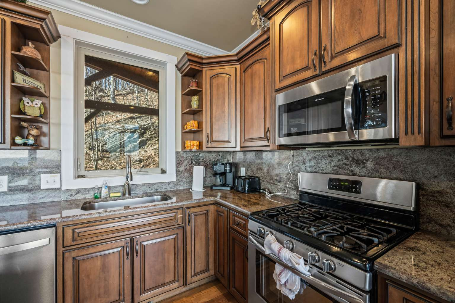 Luxurious cabin with breathtaking year-round, long range 100-mile views. This home is bright and airy and is not your typical mountain cabin. All the finishes are top of the line, with granite counters, travertine baths, and wood floors throughout. This home has three levels of cozy beauty, with a bedroom and full bath on each floor. The first floor offers a fireplace in the bedroom and a beautiful bathroom. In the first-floor bedroom you will enjoy direct access to the wraparound deck. The second level hosts another wraparound deck with breathtaking views, the main room, amazing kitchen, and a spacious king size bedroom. The upper floor offers a loft and private suite with a third bedroom. The loft is perfect for hanging out to read late into the night or greet the day with a quiet cup of coffee. If you are a morning person, you will never see a prettier sunrise than from the loft. Enjoy luxurious space and the panoramic view from nearly every room. You'll feel above it all at 4500'!