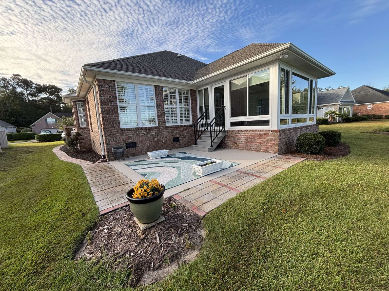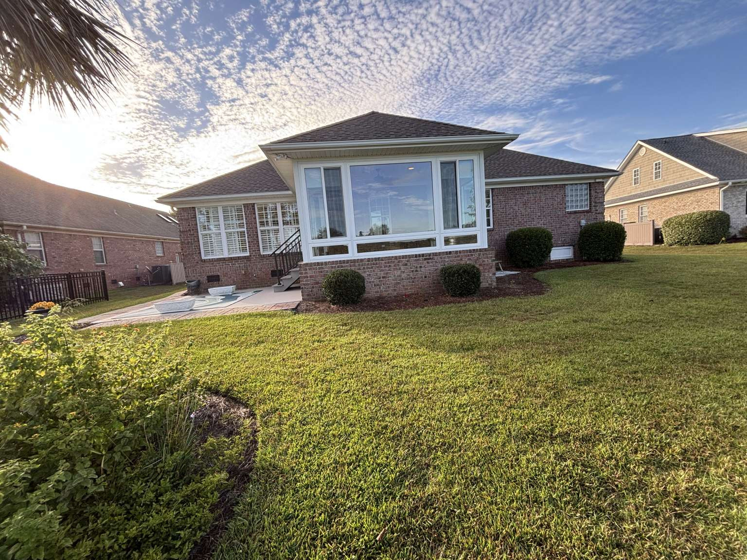 Located in the Jefferson Landing section of Brunswick Forest, an . Features include beautiful hardwood floors, central vac, surround-sound ceiling speakers in sunroom, solar tube lighting in kitchen. Numerous updates in past three years. Listing provided inside house. Back porch fully enclosed with Low E sliding glass windows and large picture for all season living. Easy flow from impressive open foyer entrance to living, dining, and sunroom areas. Living room has updated remote-controlled fireplace. Master bedroom large walk-in closet. Master bath has walk-in shower plus whirlpool. Plantation shutters in most living areas, UV block shades in all season room. FROG has half-bath and closet. Two attic storage areas: one near upstairs room with the other located over master bedroom accessible via pull-down stairs. Home has several quality features seldom found today in newer non-custom homes, such as rounded corners, ambient interior lighting, additional crown molding, convenient switched outlets, and exterior lighting under the eaves. Dehumidified enclosed crawlspace. Wired alarm system. Brunswick Forest amenities include pools, indoor fitness center, indoor pool, pickleball and tennis courts, walking trails.