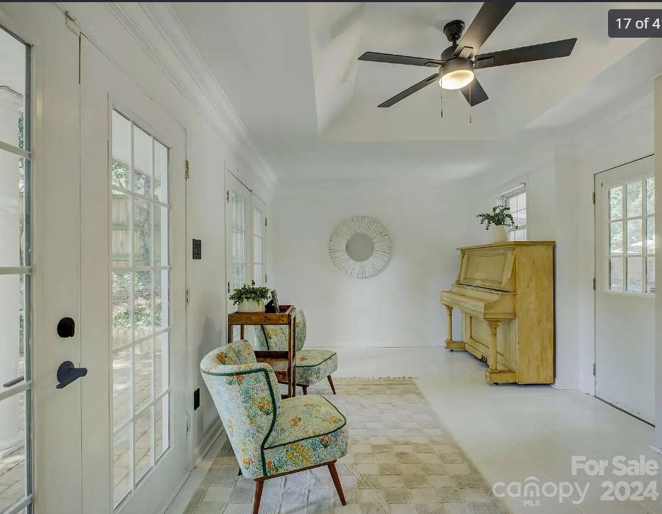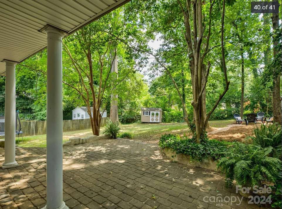 Such a CHARMING home on one of the loveliest streets in popular Madison Park! EXCELLENT location so close to wonderful restaurants, boutiques, parks, and greenways nestled between the thriving Park Road Shopping Center area and SouthEnd! Top rated schools and a short commute to Uptown and the CTL Douglas Airport! Private lot approx .3 acre! This adorable home has a spacious living room, updated kitchen (with stainless steel appliances), and light & bright sunroom that creates an awesome flex space for an office, fitness area, game room, or second living room! The fourth bedroom is being used as an office that includes laundry closet and has an exterior door that opens to a delightful working garden. Don't miss the special extras like the 3rd floor storage room and updated ceiling fans, light fixtures, and hardware! Outside, the gracious extended paver patio overlooks the beautiful fire pit area perfect for relaxing and enjoying your Carolina evenings! New roof added 2024!