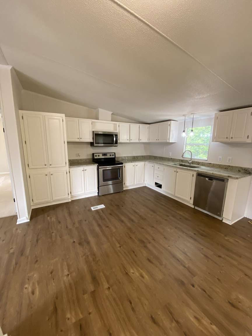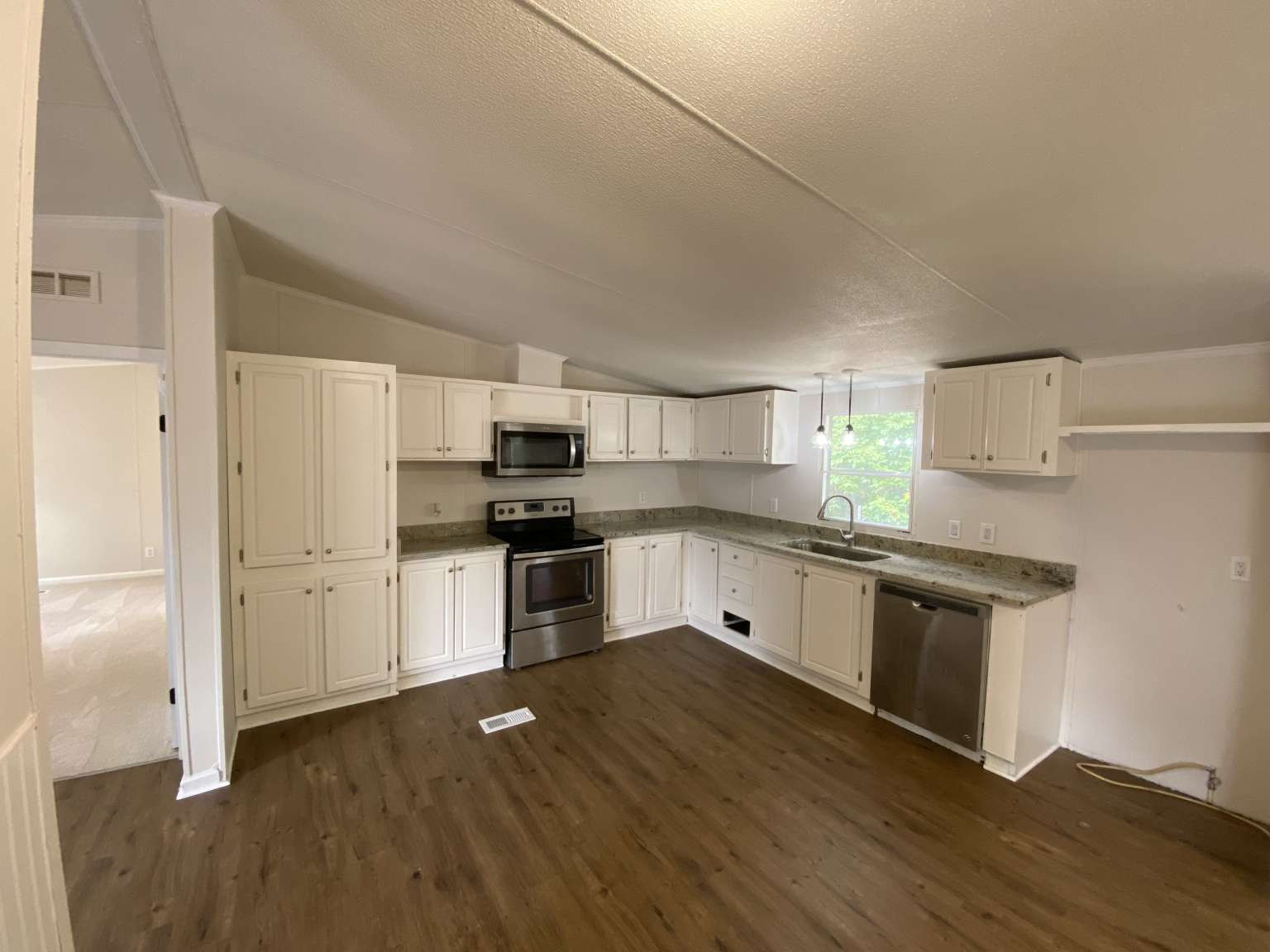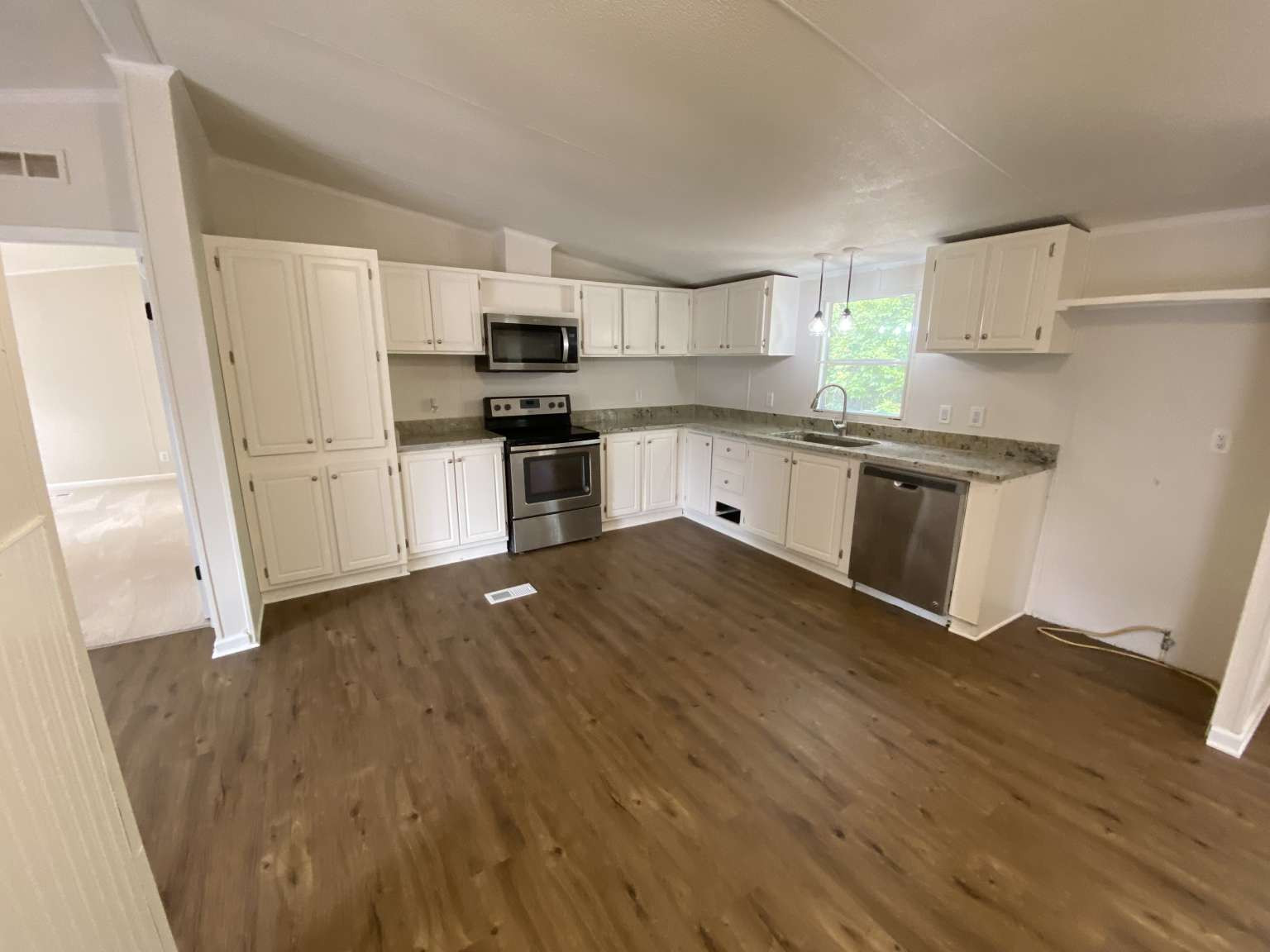Welcome to 5107 Southbrook Dr, Kings Mountain, NC 28086 – a beautifully renovated manufactured home offering modern comfort and spacious living on a serene 1.38-acre wooded lot. This 2002-built gem spans 2,072 square feet with 4 bedrooms and 2 full baths, perfect for families or those seeking room to grow. Step inside to an open floor plan featuring fresh new paint throughout, brand-new flooring, and a completely updated kitchen boasting contemporary finishes, ample cabinetry, and open floor plan. The refreshed bathrooms provide a spa-like feel with modern fixtures and updates. Enjoy year-round comfort with a new HVAC system, ensuring efficient heating and cooling.The layout includes large bedrooms with walk-in closets, a generous living room, and a cozy den off the dining area. Additional highlights include a dedicated laundry, and wooded back yard. Conveniently located in Kings Mountain, just a short drive from Charlotte, this property won’t last long – schedule your showing today!