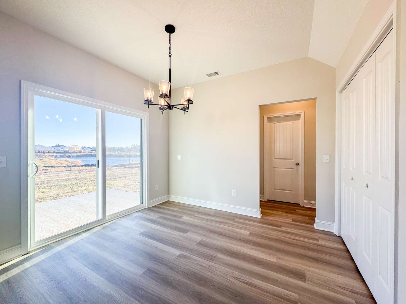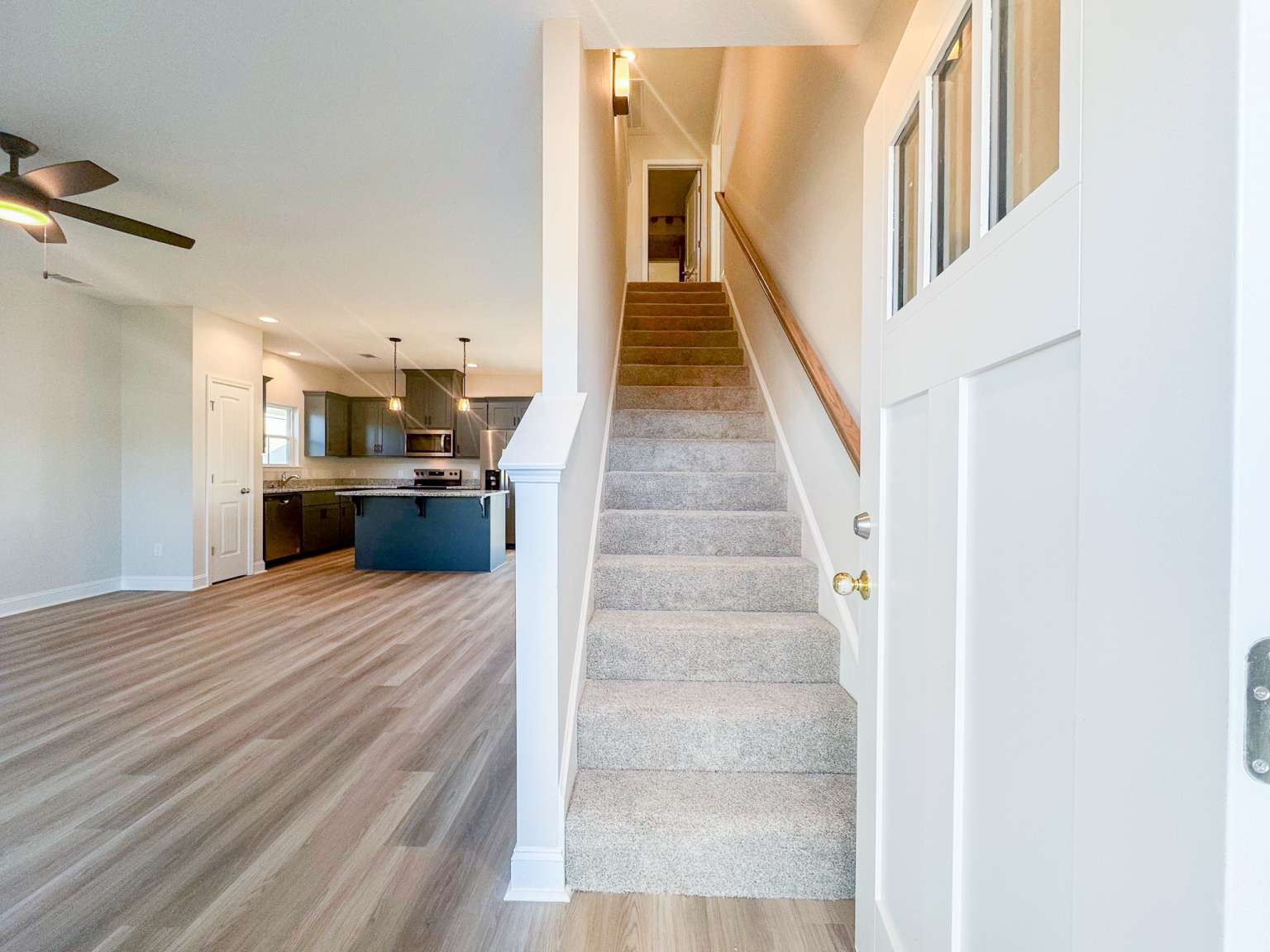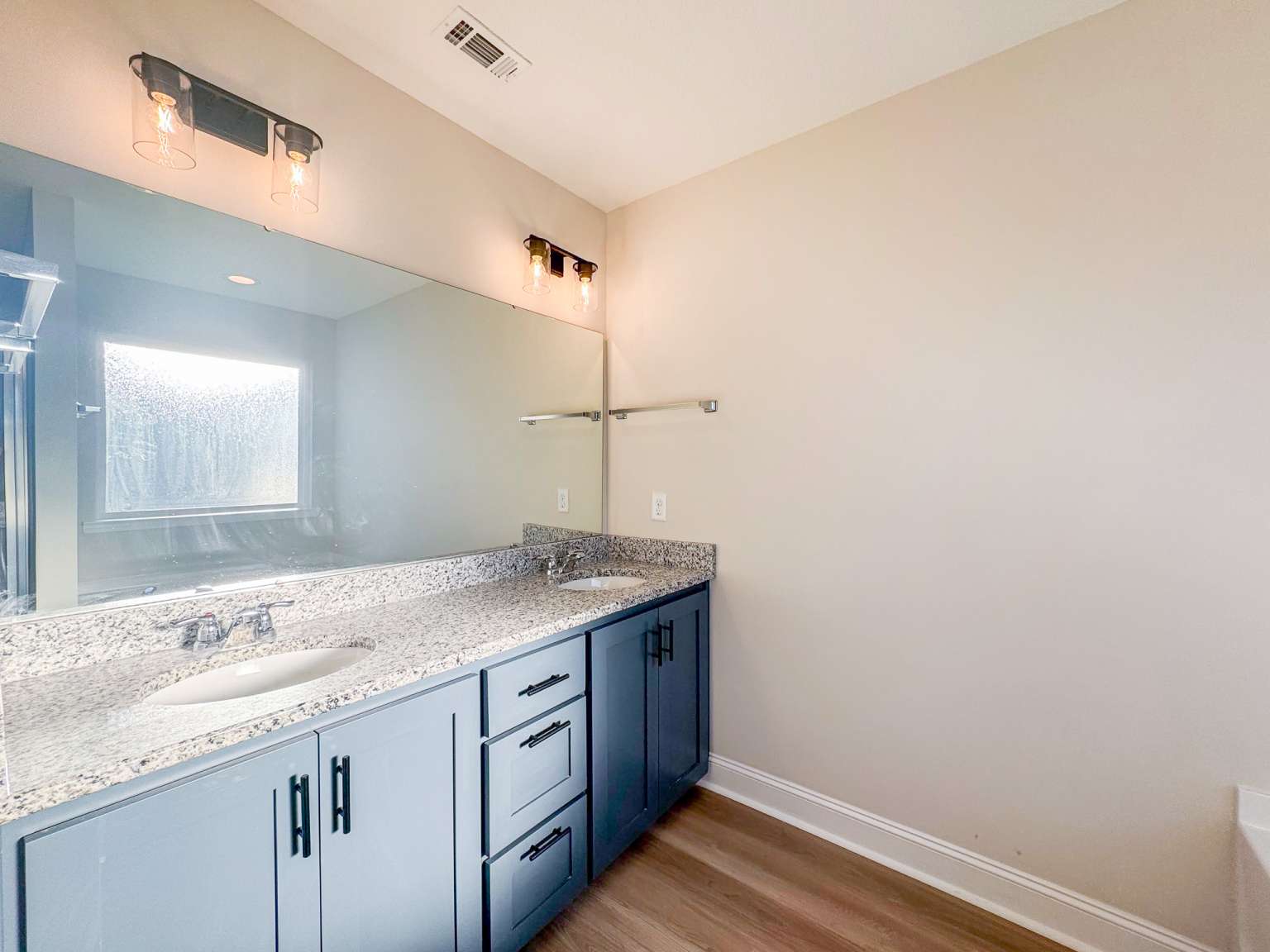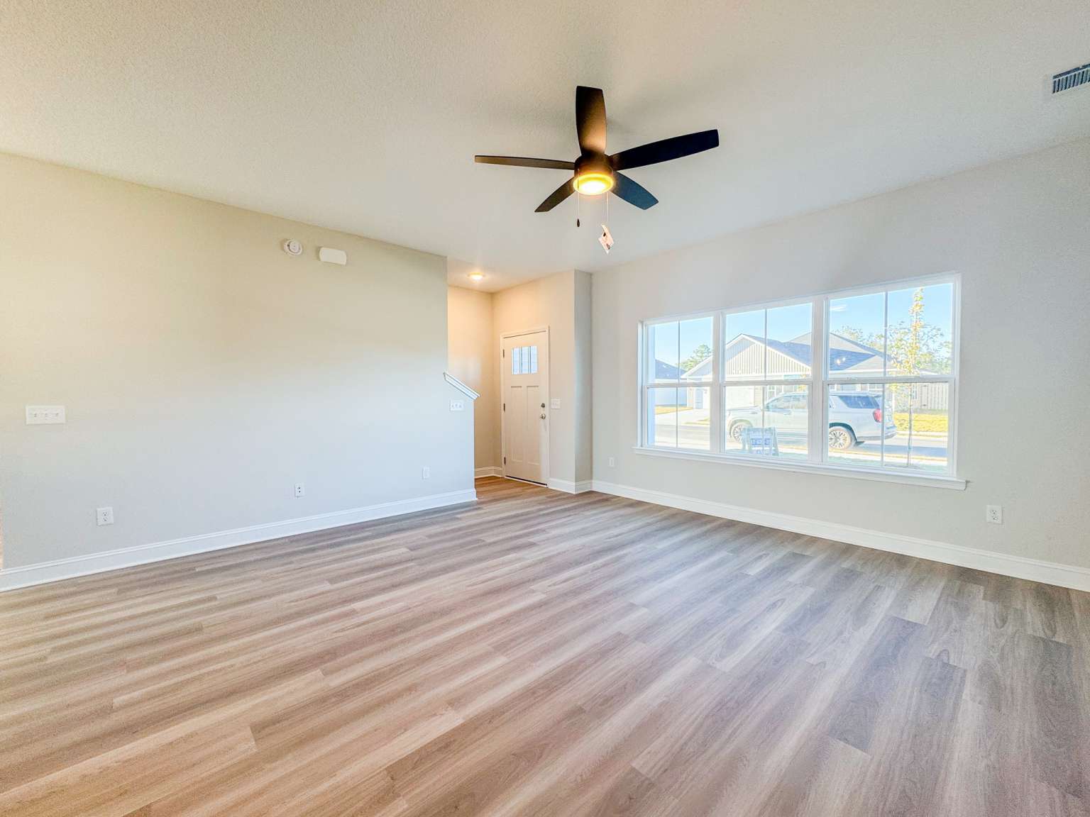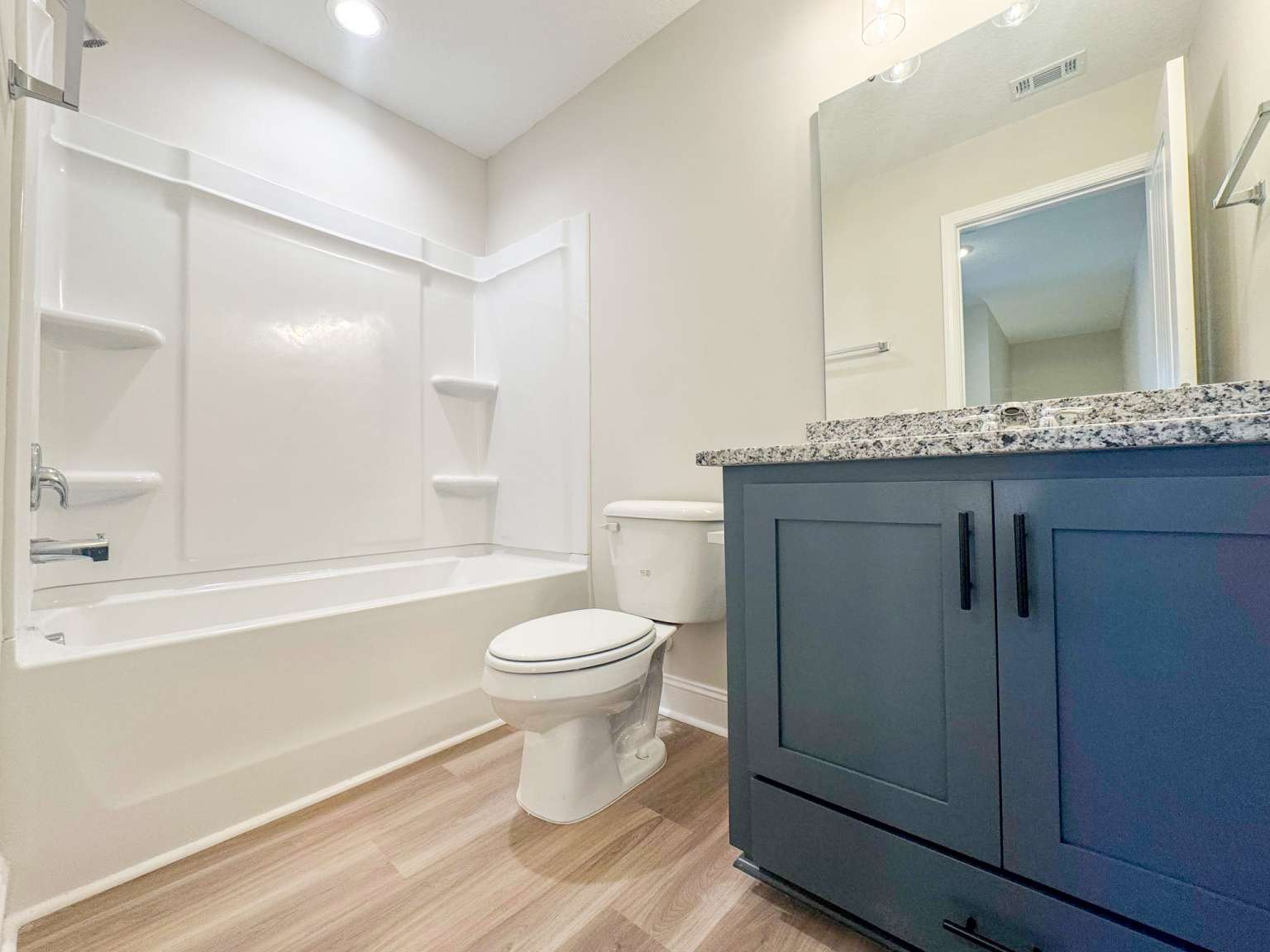 Discover this stunning two-story home in Liberty County’s newest neighborhood—perfectly positioned near Hinesville, Ludowici, and Fort Stewart. Step inside to a bright, open-concept layout designed for effortless living and entertaining. The spacious family room flows seamlessly into the dining area and a modern kitchen featuring striking blue cabinetry, granite countertops, and stainless steel appliances. Durable plank flooring runs throughout the main level, adding both style and function. From the dining area, enjoy easy access to the patio, garage, half bath, and laundry room. Upstairs, unwind in the primary suite with two walk-in closets and a luxury bath complete with a soaking tub, separate shower, and dual granite vanity. Two additional bedrooms and a full hall bath with granite vanity complete the second floor. Estimated completion: December 2025.
