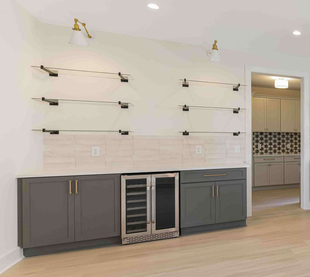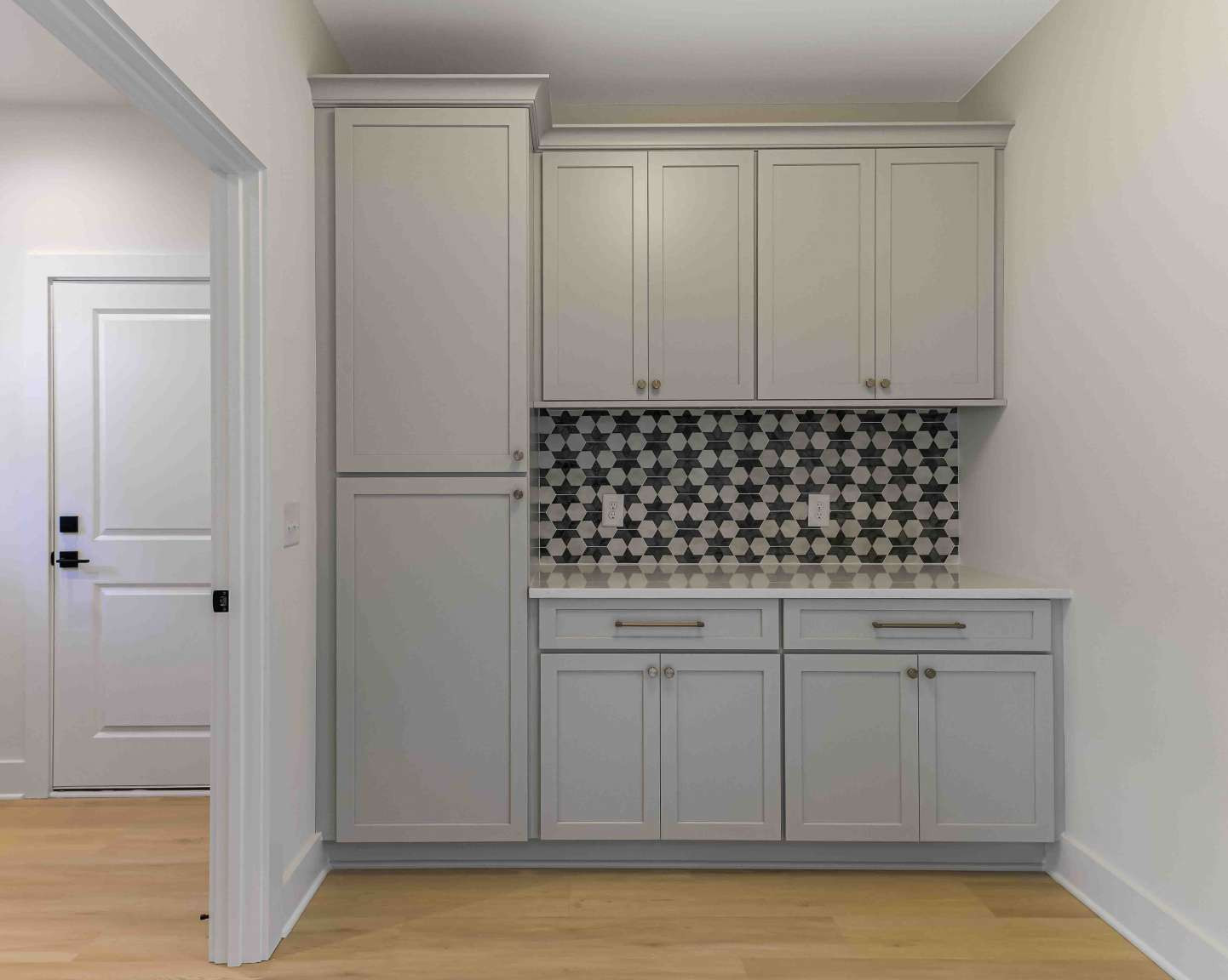 Welcome home to 455 West New Hampshire, in downtown Southern Pines! This professionally designed brand new custom home, is just three short blocks to the center of Downtown Southern Pines! On the first floor of this 2 story home, is an open concept design with 9 foot ceilings, half bath, electric fireplace with tile surround and mantle, designer fixtures and recessed lighting, and a large living room/dining room combination with an entertainer's dream kitchen! This kitchen includes, grey and nutmeg cabinets, white veined quartz countertops, large island, Whirlpool appliances, and an additional space with a wine fridge and overflow cabinets perfect for a cocktail area! Additionally a BUTLERS Pantry connected to the kitchen, with a side deck on one side, a large mudroom off the other side, connected to the TWO CAR GARAGE! Upstairs you will find a large master suite with a huge walk-in closet, stunning master bath with double vanity and large walk-in shower. Additionally, down the hall, you will find a laundry room, two oversized bedrooms, one with a walk-in closet, and finally a large hall bath. There is nothing like this downtown with this modern luxurious feel at this exceptional price! Perfect home for downtown lifestyle!