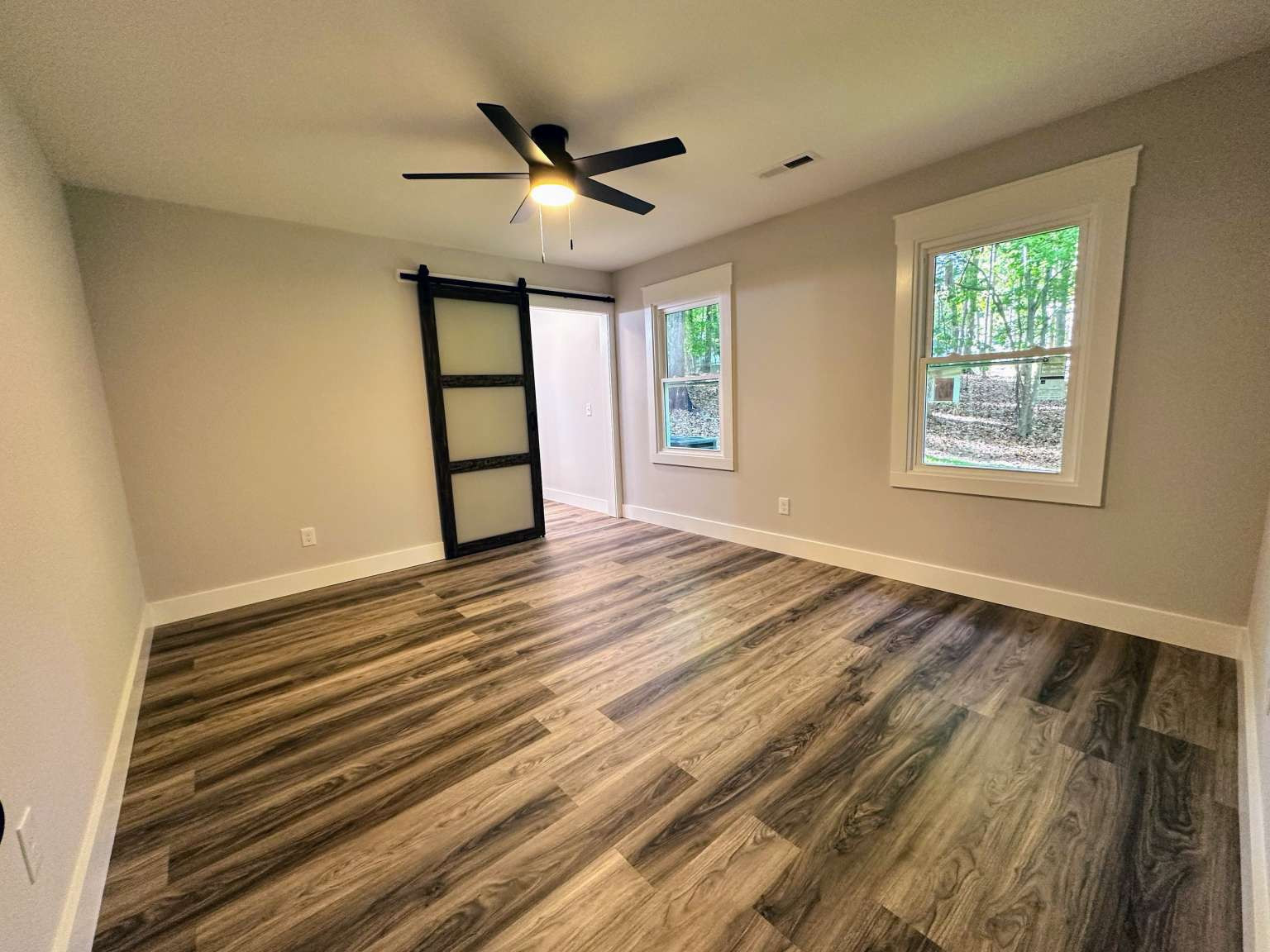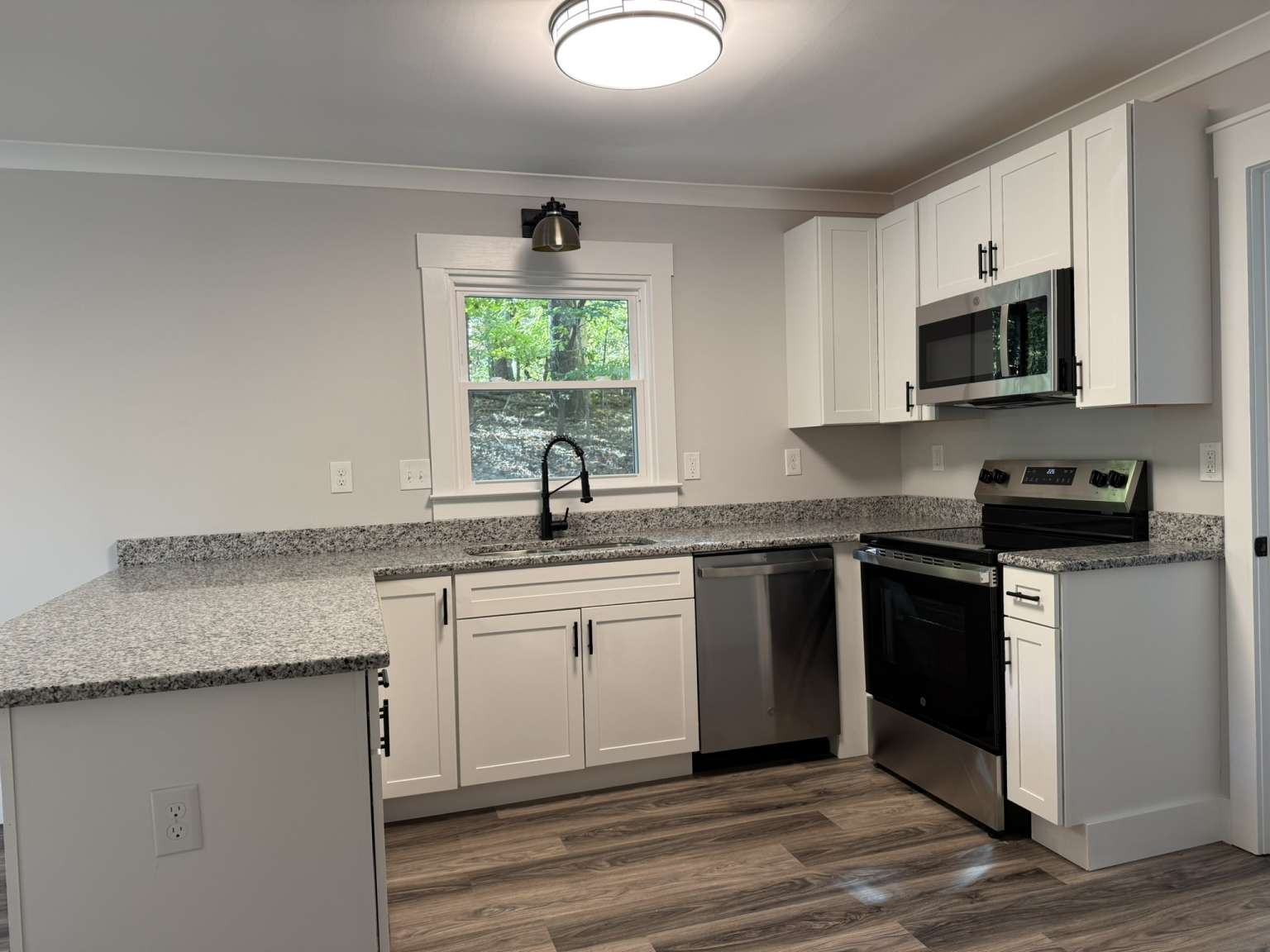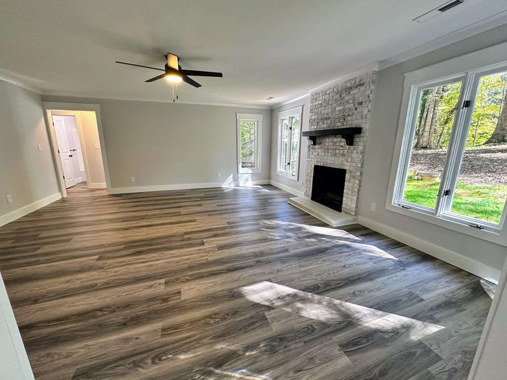 Hurry to see this show-stopper! This home has been totally remodeled from the inside out, and is gorgeous! Step inside the front door to a large living room with a beautiful, newly re-finished fireplace. Or step into the dining area, which is open to a completely new kitchen. The kitchen features white cabinetry, granite counter-tops, black lighting fixtures, & stainless steel appliances. Have a quick lunch at the kitchen bar, or slow down for a relaxed dinner in the dining area. But the large master bedroom & bathroom are truly amazing! An exquisite barn door offers privacy for the master bath that features a new bathtub, toilet, vanity & new black fixtures. A walk-in closet is behind the master bathroom. Outside, check out the beautiful landscaping, full concrete driveway, & peaceful, private back yard. New metal roof, new heat pump, & new tankless water heater. All of this on a private wooded lot, in a great neighborhood, & just minutes from shopping & dining!