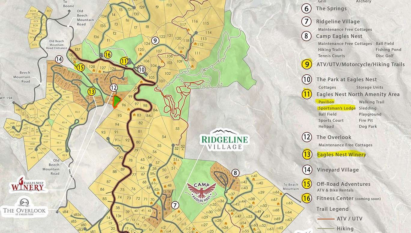 Incredible lot located in The Overlook section of The Lodges at Eagles Nest. These village cottages make great weekend homes in Eagles Nest or rental investments. This lot is located just 680 feet from the winery and is next to the North Pavilion Sportsman’s Lodge, you will be steps away from all of the action within the community from the winery, to all of the sports fields, hiking, biking, horse, and ATV trails, as well as their new fitness facility. Also, conveniently located next to three back gates of Eagles Nest you will be just a few minutes from Beech Mountain Ski Resort for all of your top winter and summer activities outside of the gates. For a full list of amenities you can search for The Lodges at Eagles Nest Banner Elk. Since these lots do not have a physical address you can search for the coordinates of 36.209756, -81.920812. This lot has a shared water well system for The Overlook, but will have its own septic system.