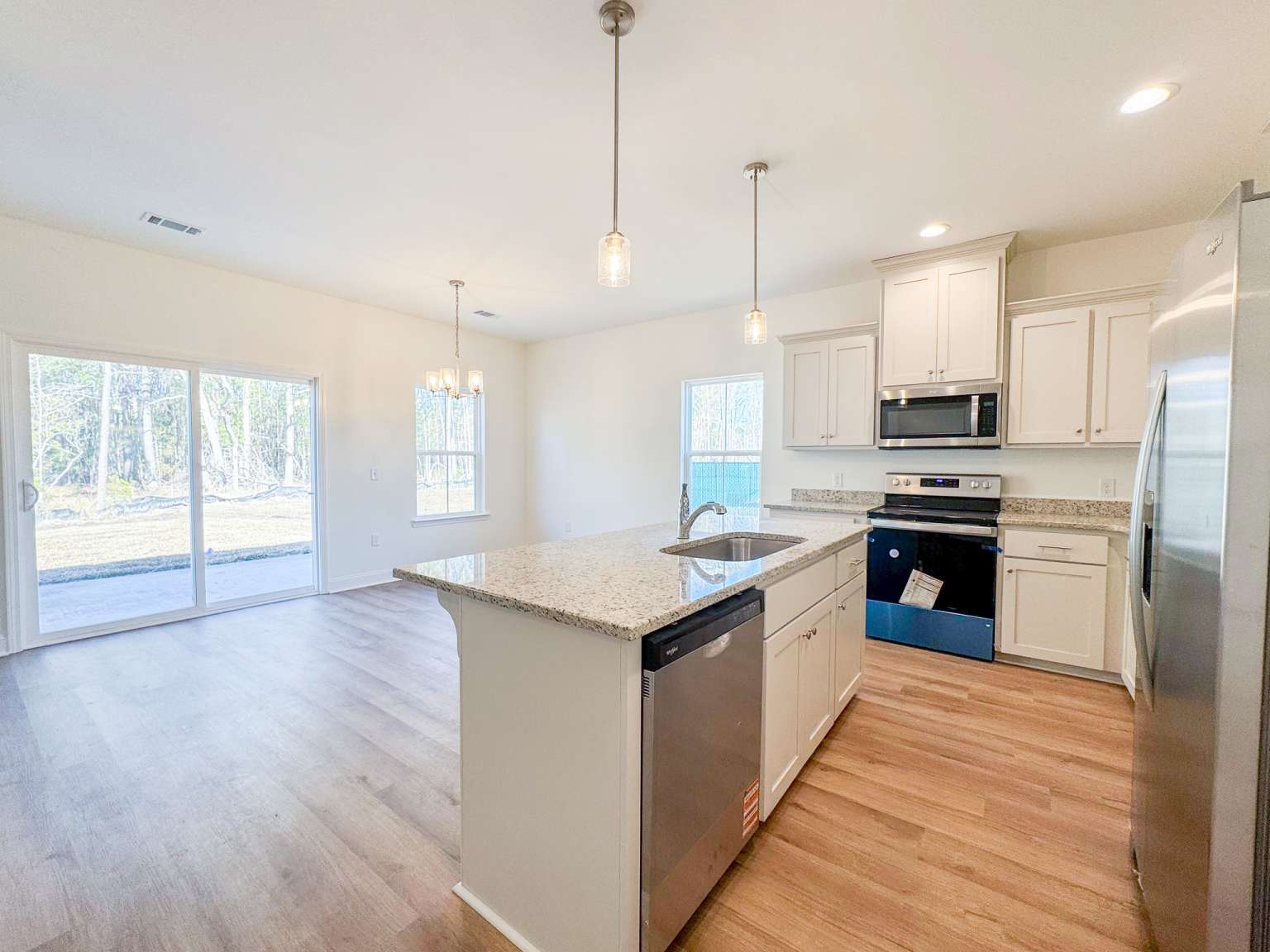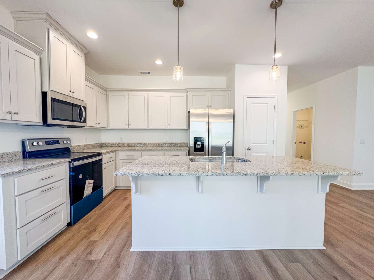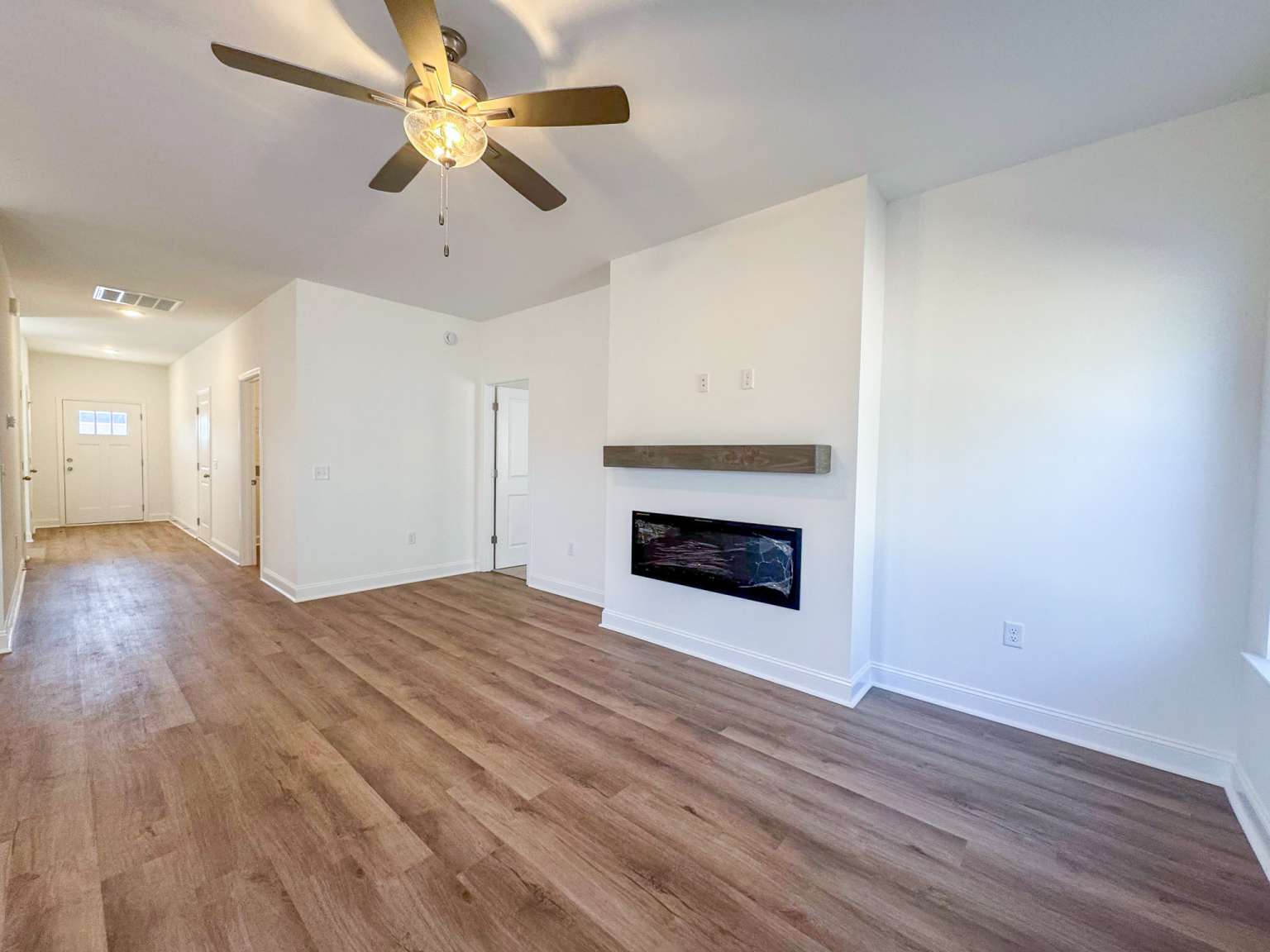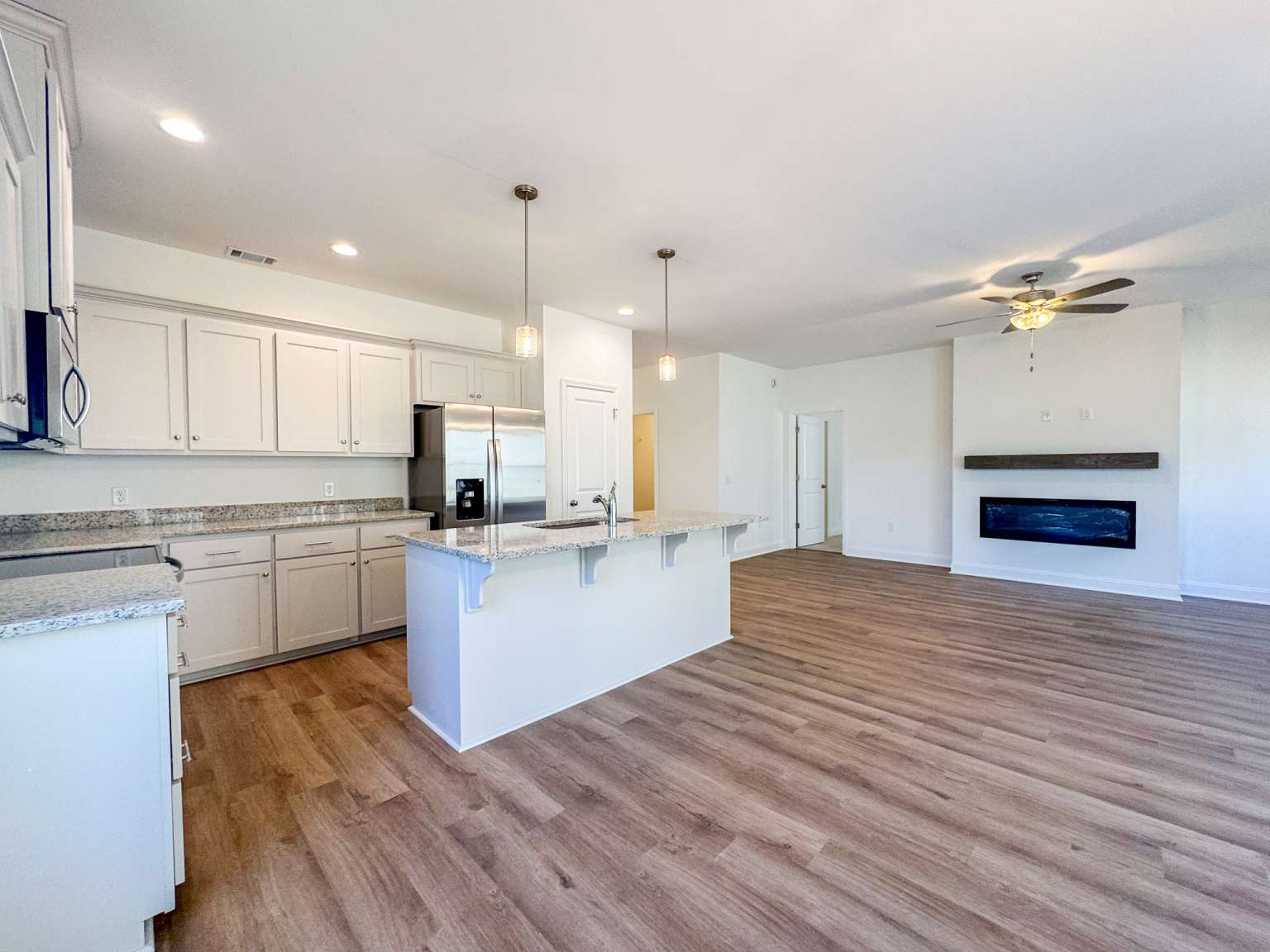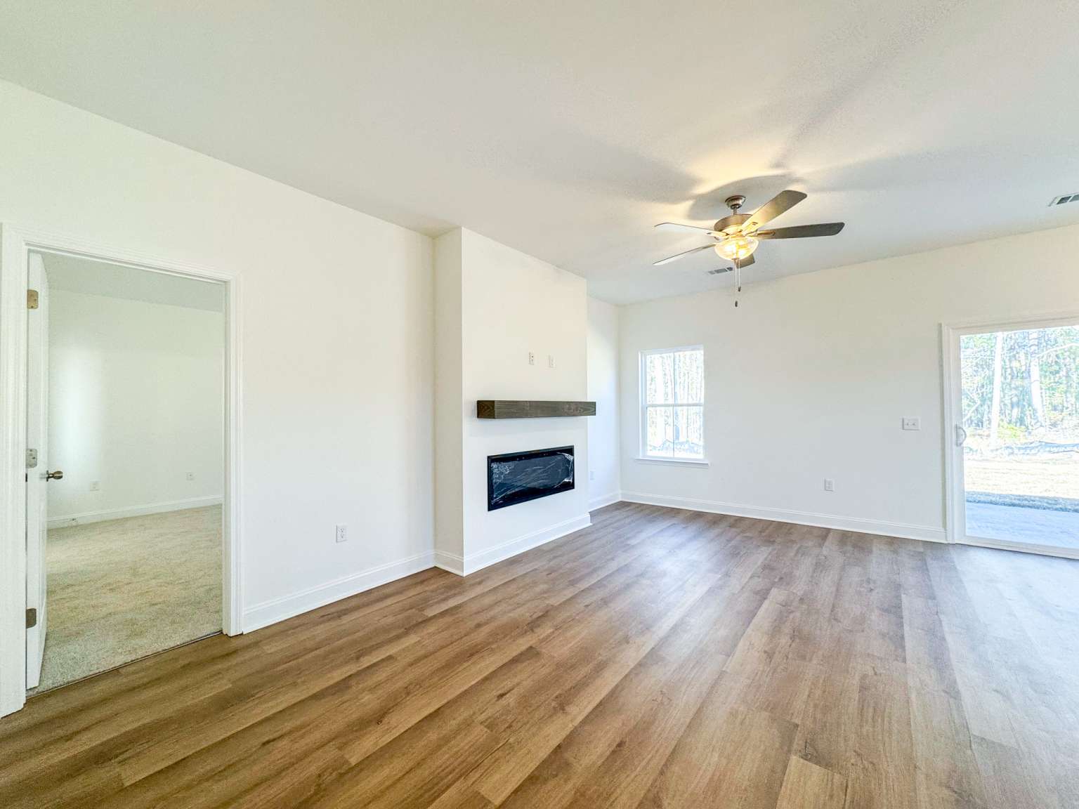 The Vivian Plan in Heritage Pointe! Discover this charming 3-bedroom home in Heritage Pointe, perfectly situated on the edge of Hinesville—close to new shopping & dining, local schools, and Ft. Stewart! Step inside the Vivian plan and find a welcoming entry foyer leading to two bedrooms and a hall bath with a stylish granite vanity. Convenient access to the garage and laundry room is just off the hallway for everyday ease. At the heart of the home, enjoy an open-concept living space featuring a cozy electric fireplace, dining area, and modern kitchen with crisp white cabinetry, granite countertops, and a large island overlooking the family room. Step outside to the patio and enjoy your fully sodded backyard—perfect for relaxing or entertaining. The primary suite, tucked just off the family room, offers a vaulted ceiling, walk-in closet, and a spa-like private bath with dual granite vanities, a soaking tub, and a separate shower. Estimated completion: December 2025