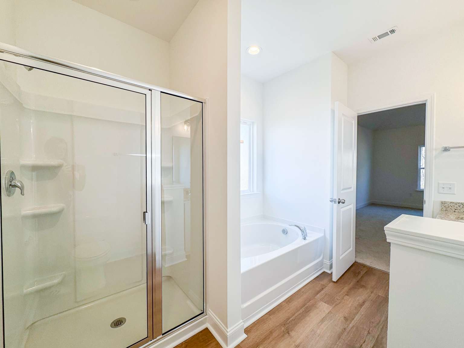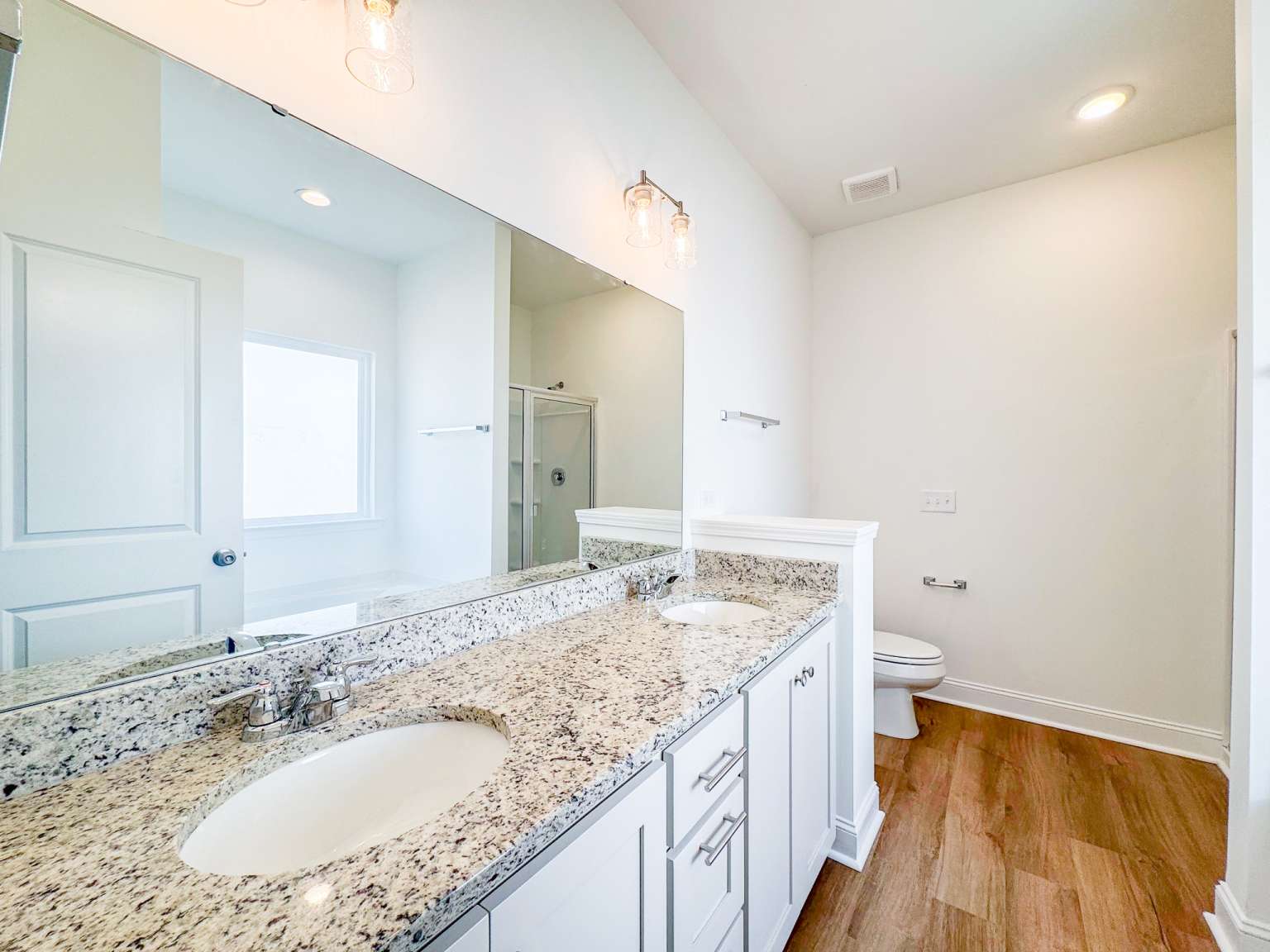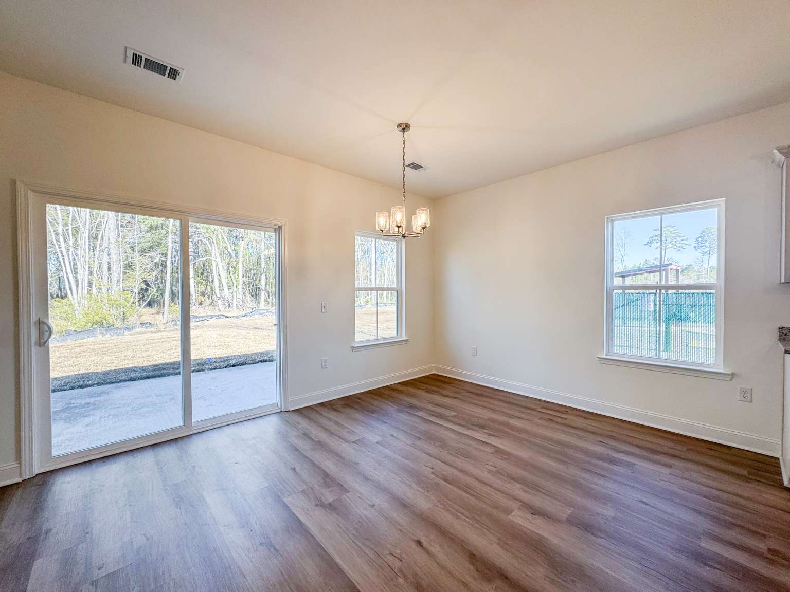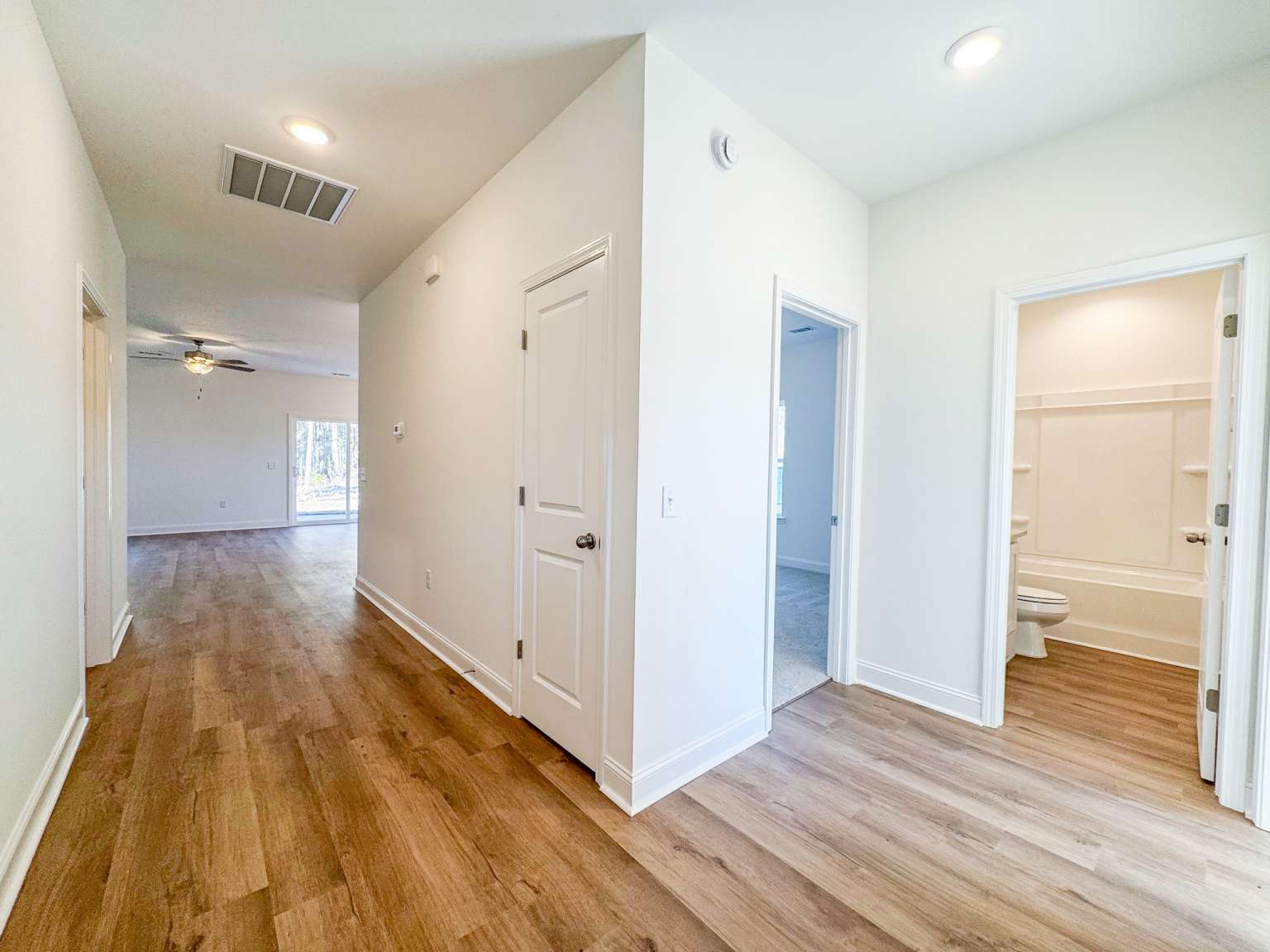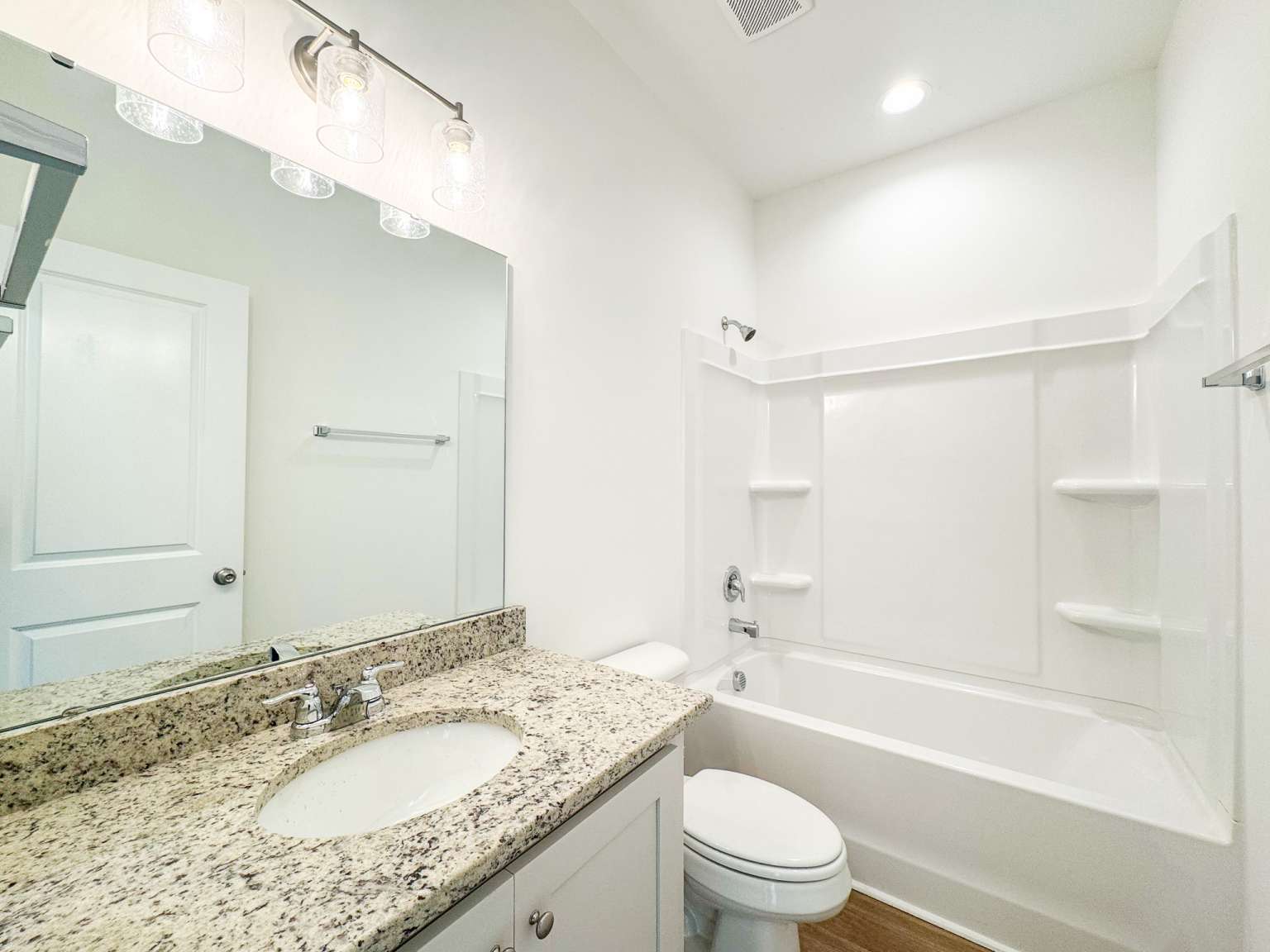 The Vivian Plan in Heritage Pointe! Discover this charming 3-bedroom home in Heritage Pointe, perfectly situated on the edge of Hinesville—close to new shopping & dining, local schools, and Ft. Stewart! Step inside the Vivian plan and find a welcoming entry foyer leading to two bedrooms and a hall bath with a stylish granite vanity. Convenient access to the garage and laundry room is just off the hallway for everyday ease. At the heart of the home, enjoy an open-concept living space featuring a cozy electric fireplace, dining area, and modern kitchen with crisp white cabinetry, granite countertops, and a large island overlooking the family room. Step outside to the patio and enjoy your fully sodded backyard—perfect for relaxing or entertaining. The primary suite, tucked just off the family room, offers a vaulted ceiling, walk-in closet, and a spa-like private bath with dual granite vanities, a soaking tub, and a separate shower. Estimated completion: December 2025