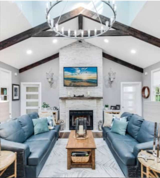 PRICE CHANGE! Motivated Seller. Your dream home in Indigo Plantation awaits! A picturesque waterfront community nestled along the Intracoastal Waterway near the mouth of the Cape Fear River, Indigo Plantation is just a mile from historic downtown Southport. This charming 2 bedroom, 2 bath plus bonus room above the garage offers the perfect blend modern comfort and coastal living. As you enter, you are greeted by a front porch swing, inviting you to unwind and enjoy the serene surroundings. Step inside to discover an open floor plan seamlessly connecting the kitchen and living room, adorned with vaulted ceilings, exposed beams, and stunning skylights that fill the space with natural light. Gorgeous wood floors flow throughout, creating a warm and inviting atmosphere. The kitchen is a chef’s delight, boasting modern white cabinetry, quartz countertops, and stainless steel appliances, including a gas range. Ample storage ensures your culinary essentials are always in reach. Gather around the kitchen island for casual meals or entertain guests in the adjacent living area, complete with a natural stacked stone gas fireplace, perfect for chilly evenings. Step outside to your screened-in back porch, offering a stacked stone fireplace for those cool evening breezes or offering a peaceful oasis to sip your coffee.Retreat to the primary bedroom where you’ll find a spacious walk in closet and adjacent laundry room with plentiful cabinets. A luxurious walk-in shower with wood floors. The second bedroom and additional full designer tile bathroom provides comfort and convenience for guests or family members. Indigo Plantation offers a community pool, clubhouse, walking paths, and expansive common areas that provide endless opportunities for outdoor activities and socializing with neighbors. Experience the friendly ambiance as neighbors wave from their golf carts, tend to their gardens, walk their dogs, and bike along the scenic paths. This is a place where community spirit thrives, creating a welcoming environment for all residents. A private marina is available to to lease a dock your boat.