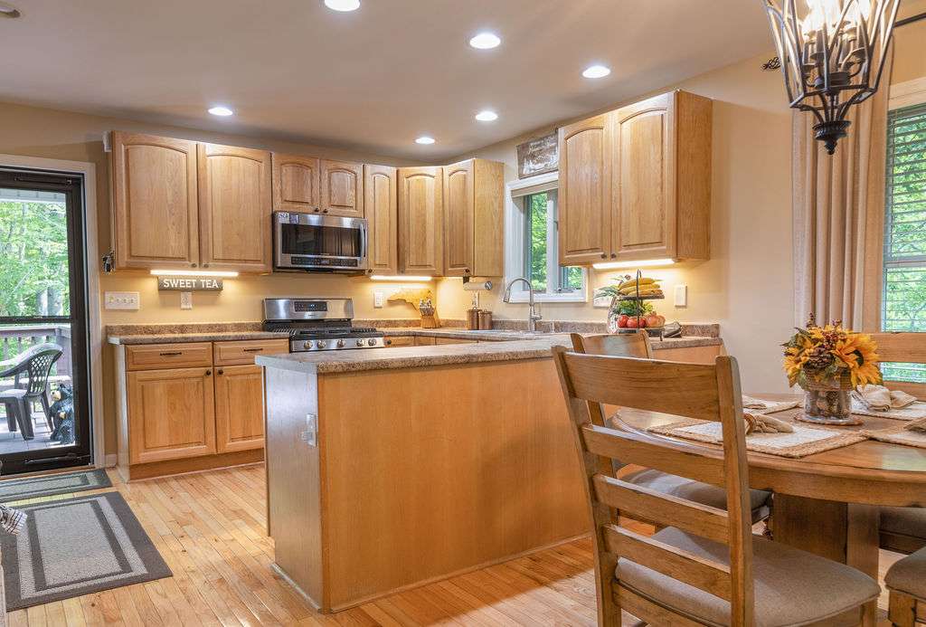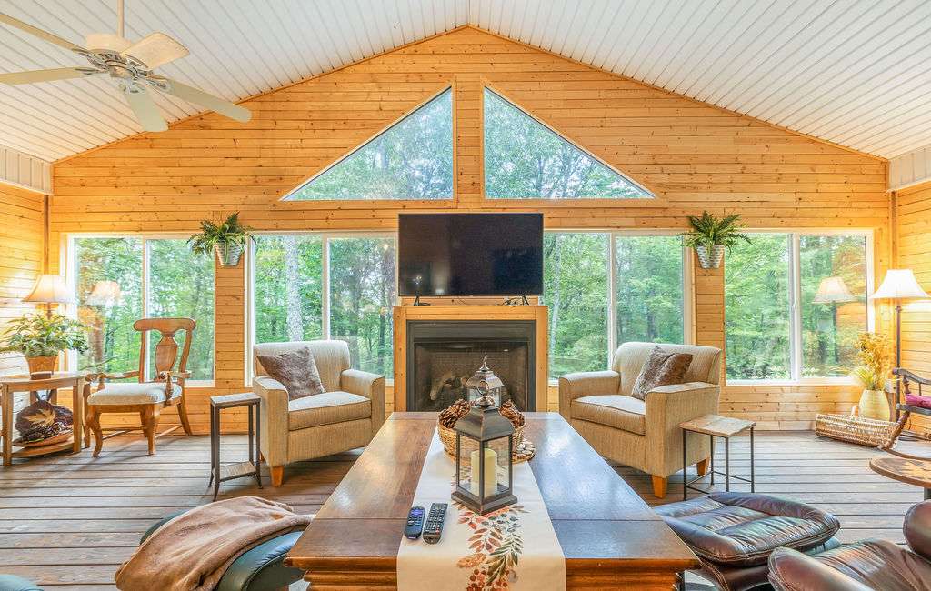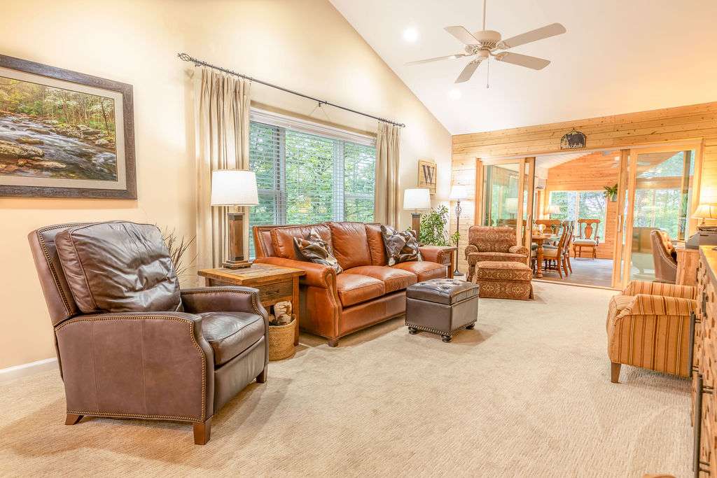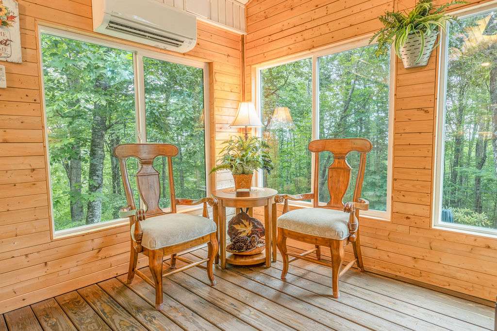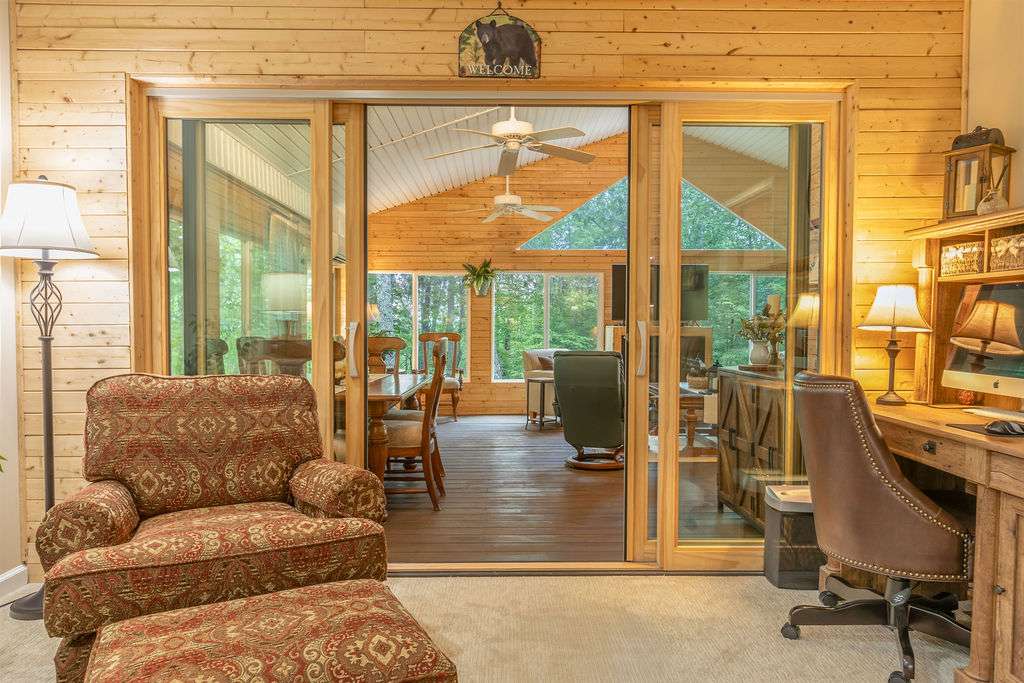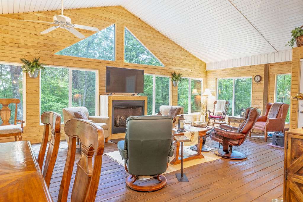Serenity awaits in this 4/3 two-story mountain retreat in western North Carolina. Whether you're searching for a seasonal or year-round home, the inviting ambiance is perfect for relaxation and entertainment. Located in the resort community of Linville Land Harbor, you would have access to a swimming pool, lake, recreation center with classes, and beautiful golf course, just to highlight a few. Opportunities for meeting new friends is a welcoming lifestyle. This home offers many areas to enjoy your special piece of paradise, including an outdoor porch right off the kitchen. A cozy swing overlooks the landscaped garden which blooms with colorful flowers all summer long. But wait...if you have a large crowd... the back pavered patio has space for games and festive food gatherings. An artisan stone wall and expanded parking is a rare but welcoming find. Indoors invites you to the living room, but the almost 600 sq.ft.sunroom with picture windows and light wood paneling offers a tree-house feeling. The winter allows a gorgeous mountain view on 3 sides. A mini-split wall system and gas fireplace will keep you warm and cozy. Guest quarters in the lower level offers 2 bedrooms, bathroom, kitchenette, and living/dining areas. A golf cart garage also has a large workshop and storage areas. This well-maintained home has many outdoor features, including siding, metal roof and leaf filter gutters. Surrounded by trees and privacy, seize the opportunity to be it's next owner!