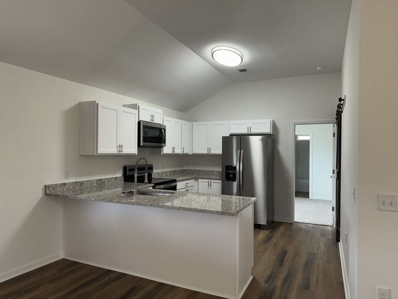 MOVE-IN READY! NEW CONSTRUCTION by Maybank Partners: With NO HOA and a HUGE FENCED IN BACKYARD big enough for all sorts of fun, this home was built with everyday comfort in mind. Step inside to find a welcoming layout that makes hosting a breeze, while still giving everyone plenty of room to unwind. This exquisite home features 4 bedrooms and 3 baths, designed with modern living in mind. From the luxury vinyl plank flooring and cozy bedroom carpeting to the granite countertops and stainless steel appliances, every element exudes quality and style. The open concept floor plan enhances the home’s welcoming atmosphere. The kitchen, a focal point for family gatherings, is equipped with granite countertops, stainless steel appliances, large pantry and plenty of cabinets for storage space, creating an inviting atmosphere for cooking and entertainment. The covered back porch extends the living space outdoors, offering a serene retreat for relaxation or hosting gatherings. You will surely love the huge fenced in backyard for lots of playtime or maybe that small garden you have been dreaming of. This house is more than a house; it's a home where every detail caters to a life of ease and elegance. Schedule a tour with the builder today.