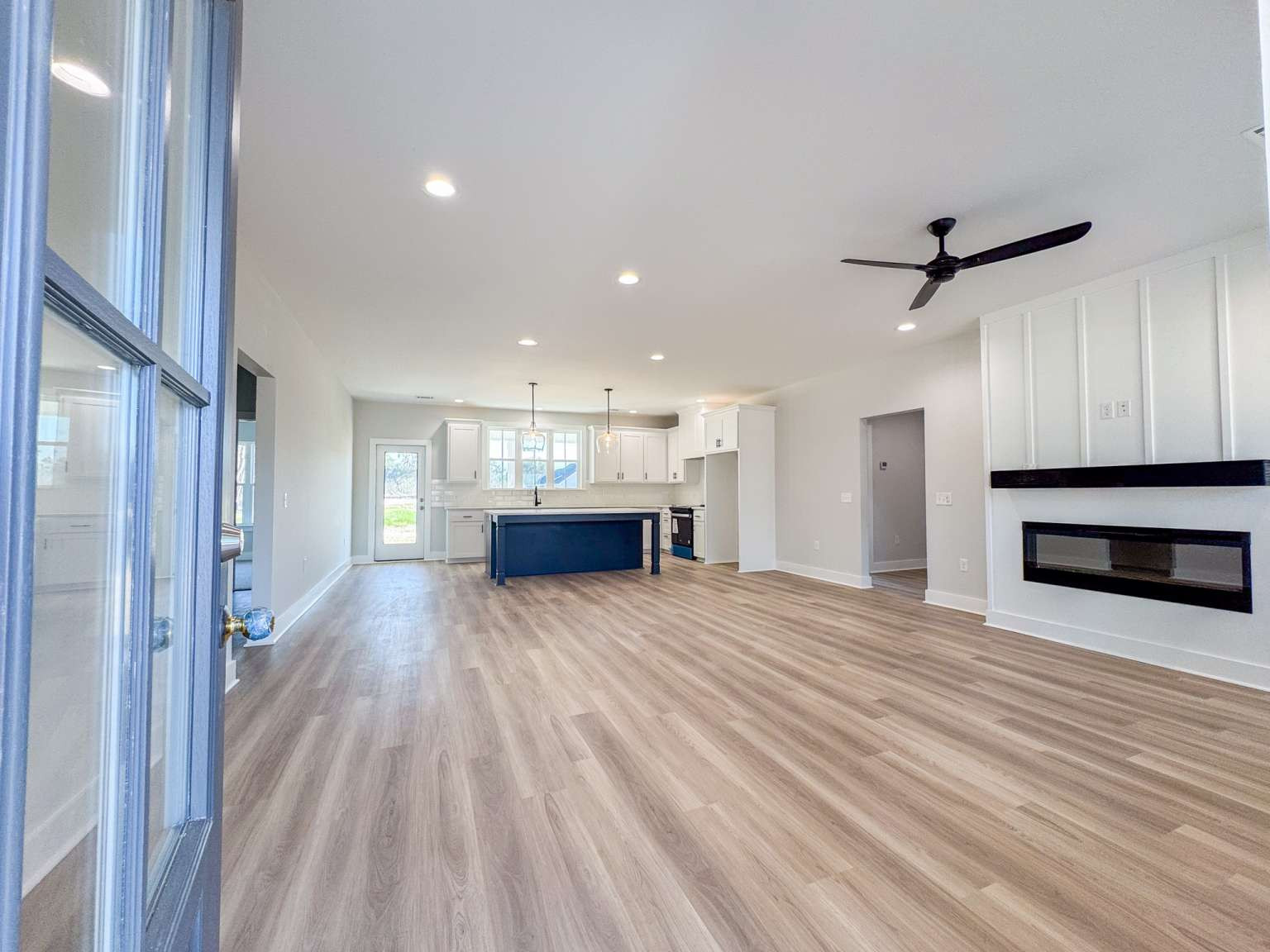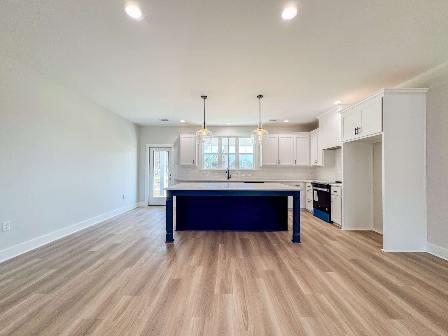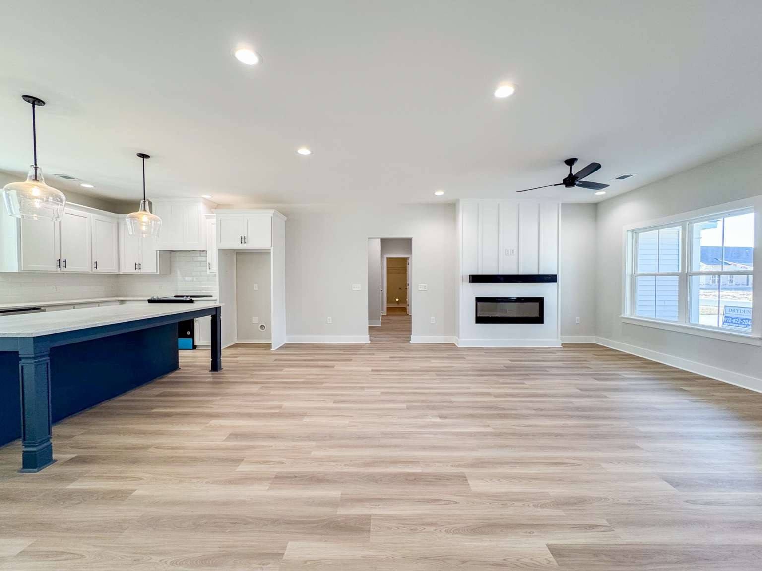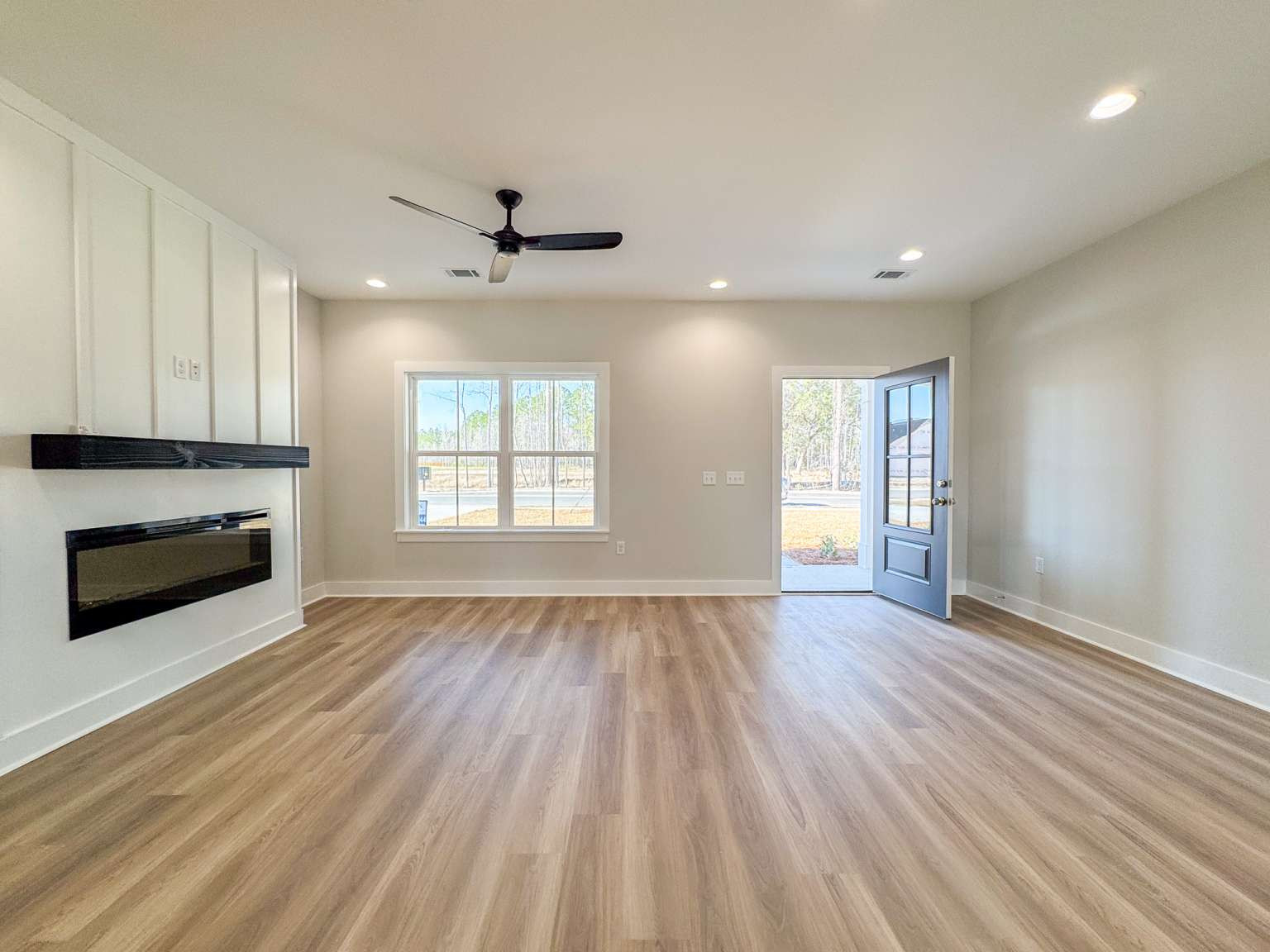 Timmons plan on a half-acre lot in Cottages on Carter! Minutes to I-95 & Hwy 17! Step inside from the spacious front porch & find a modern open living space! The family room with an electric fireplace transitions seamlessly to the dining area & then the kitchen. Enjoy quartz counters & tile backsplash paired with two-tone cabinetry in the kitchen with a walk-in pantry just around the corner! Step out to your back porch from the kitchen to enjoy your backyard! With its split layout, enjoy a private primary suite off the living space via a hallway that also leads to a half bath, laundry room & garage access. The primary bedroom has plank flooring, a walk-in closet & private bath. The luxurious bath includes tile floor, soaking tub, tile shower with pan insert & quartz vanity counters. Across the home are two additional bedrooms that share a hall bathroom.