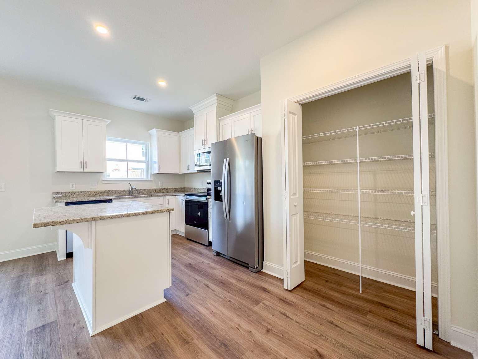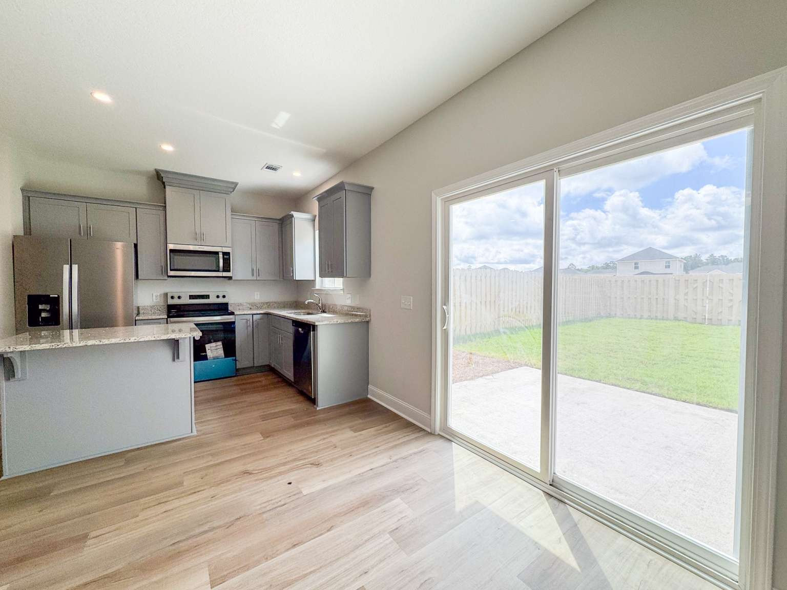 End unit townhome at Heritage Pointe townhomes in Hinesville! Located on the edge of Hinesville close to new restaurants & up-and-coming shopping! Quick commute to Ft. Stewart, Hwy 17 & I-95! 3-bedroom, 2.5-bath townhome with granite counters throughout! Open living space on the first floor with access to the 1-car garage, half-bath & the backyard. The kitchen features a spacious pantry & new stainless appliances, including refrigerator! From the island, look out to the dining area & family room with ceiling fan. Enjoy a sodded backyard with irrigation & privacy fence from the patio! Upstairs find two bedrooms, hall bath, laundry room & the primary suite. Within the primary suite is a ceiling fan, walk-in closet & private bath. The private bath includes a dual vanity with granite counter & another walk-in closet! HOA to provide regular landscaping & annual pressure washing. Photos provided do not represent actual townhome or selections ordered. Estimated completion Feb 2026.