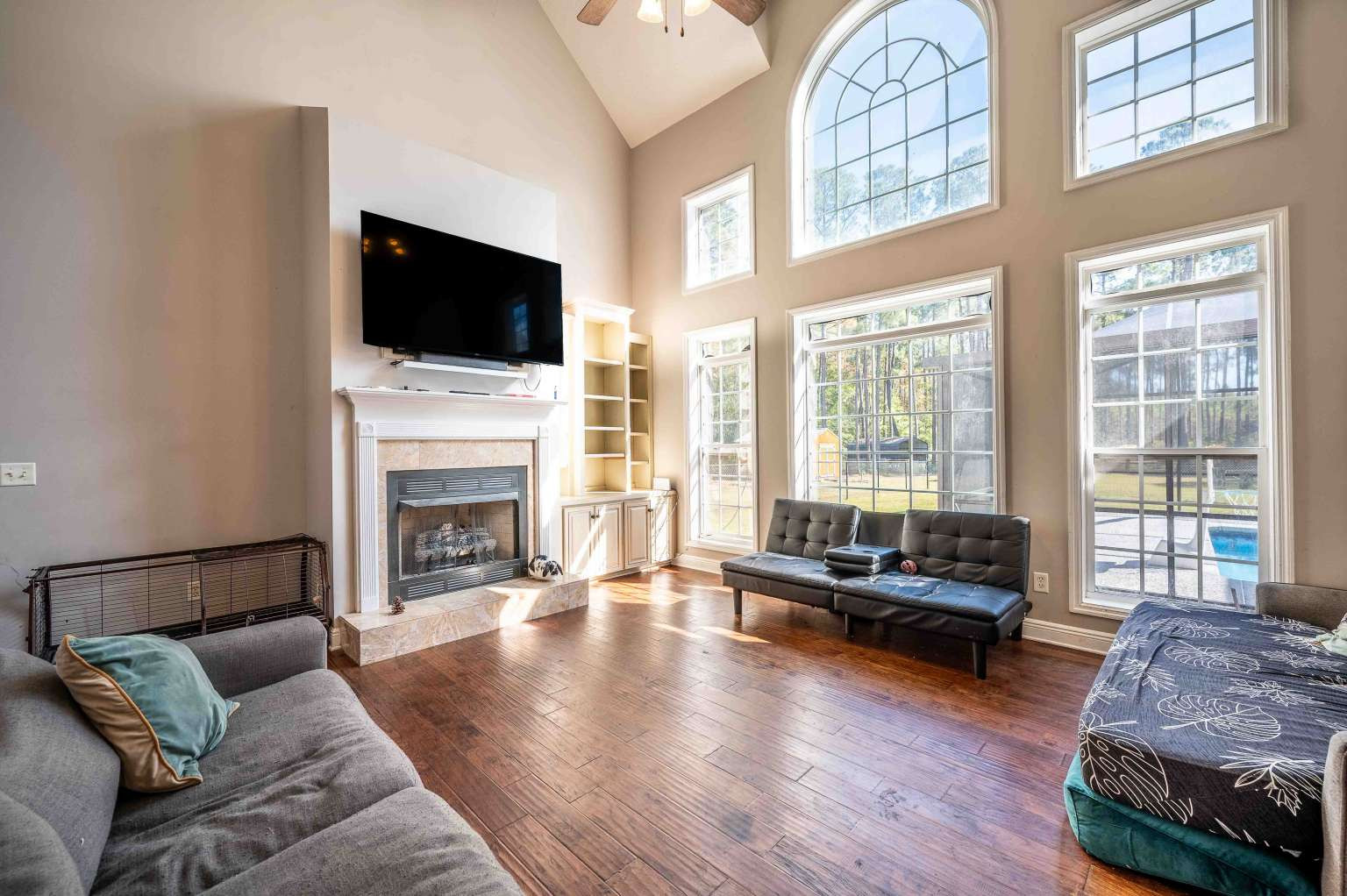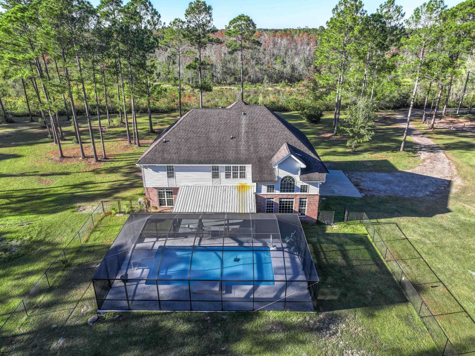 Discover modern luxury and elegance in this meticulously crafted 3932 sq. ft home situated on 10.02 acres within a secluded area. Thoughtfully designed for entertaining and everyday comfort, this home welcomes you with a vaulted foyer and an expansive open-concept living area anchored by a stunning fireplace and floor-to-ceiling windows. The gourmet kitchen is a chef’s dream, featuring granite countertops, stainless steel appliances, a butler’s pantry, and a large island for meal prep and storage. Formal dining room and breakfast area with a breakfast bar. Den/family room w/fireplace, guest bedroom, all located on the main level. The second level boasts a huge master suite w/sitting area, and the master bath has a shower, jetted tub, separate toilet, double vanity, and 2 large walk-in closets. The master suite is definitely a master’s retreat. Down the hall has 2 bedrooms w/jack and jill bathroom, and across the hall is another master retreat or mother-in-law suite. Brand new carpeting in all bedrooms. This single-family home has recessed lighting, 2 Central Air/Heat, 2 hot water systems, a 3-car attached garage, and a single detached garage. It doesn’t stop with the indoors; the outdoors just adds to this exquisite home. Covered sunroom patio for those summer cookouts and entertaining by the pool. Newly enclosed in-ground salt water pool, with new liner. A fully stocked pond w/docking pad, your own outdoor covered pavilion, rv hookups and pad to park. Several other small outbuildings including an air-conditioned shed. This home has endless possibilities for a growing family!