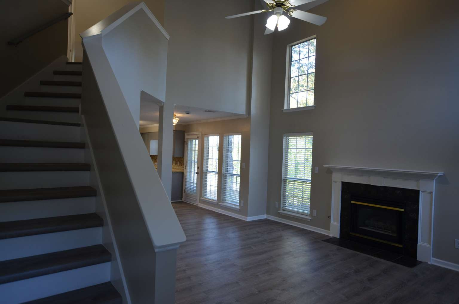 Beautifully maintained 3BR/2.5BA home in the Boulders Subdivision! Features include a spacious master suite with arched window and shutters, jetted tub & wooded views, updated kitchen with granite countertops, tile backsplash & stainless appliances, fresh neutral paint throughout cabinets and walls, and new premium vinyl flooring on both main levels. Enjoy an open floor plan with high ceilings, lots of windows for sunlights, a cozy gas fireplace, and formal dining. Plus, new lighting in the breakfast and formal dining areas is a lovely way to enhance the ambiance. Private backyard, 2-car garage, and attic storage. New toilets and new bathroom faucets. Replaced new double-pane windows with 10 years' warranty. Like-new roofing (~7 years) and waterheater (~4 years). Convenient location close to great schools and shopping. Five minutes walk distance to County Racquet Center with free access to pickleball and hardcore tennis court. Move-in ready and full of charm!