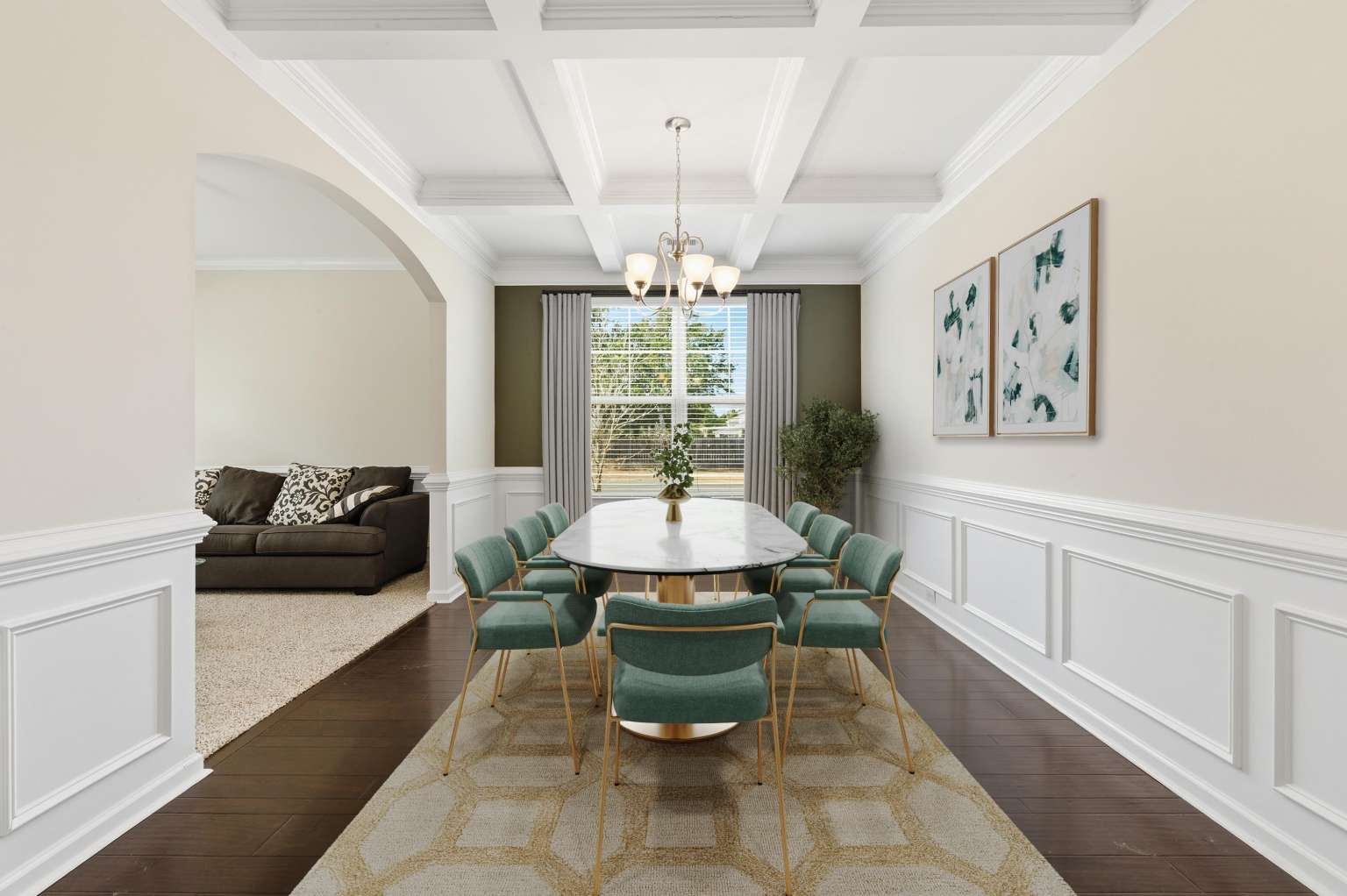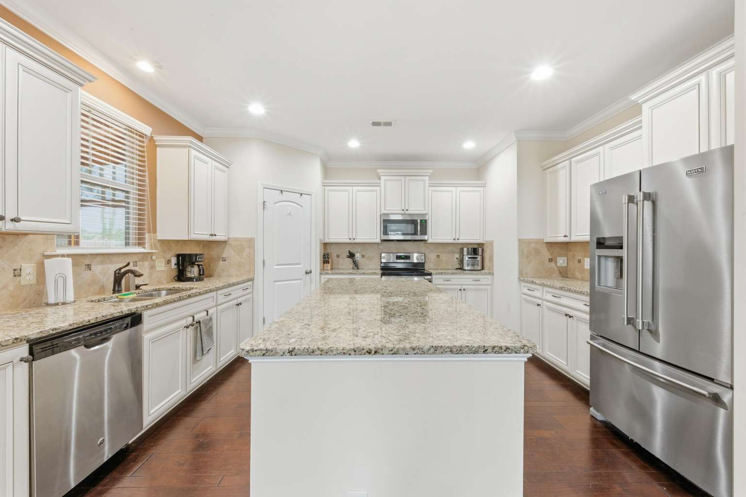 Enjoy a bright, home in a convenient South Effingham location. The main floor features wood floors, tall ceilings and crown molding throughout. The kitchen is the highlight of the home with an oversized island, granite countertops and extensive cabinet storage. The layout offers great workspace and easy flow for cooking and gathering. The formal dining room features a coffered ceiling and wainscoting, and the front sitting room also includes wainscoting for a polished, upscale look. Upstairs, the primary suite stands out with a large sitting area, a tray ceiling and two true walk-in closets. The ensuite bath includes a double vanity, separate shower and soaking tub. There are walk in closets throughout the home, offering exceptional storage. The home includes built in surround sound upstairs and downstairs for easy entertainment. Recent updates include a new air conditioner, a brand-new privacy fence and an expanded driveway that offers more parking and easier access.