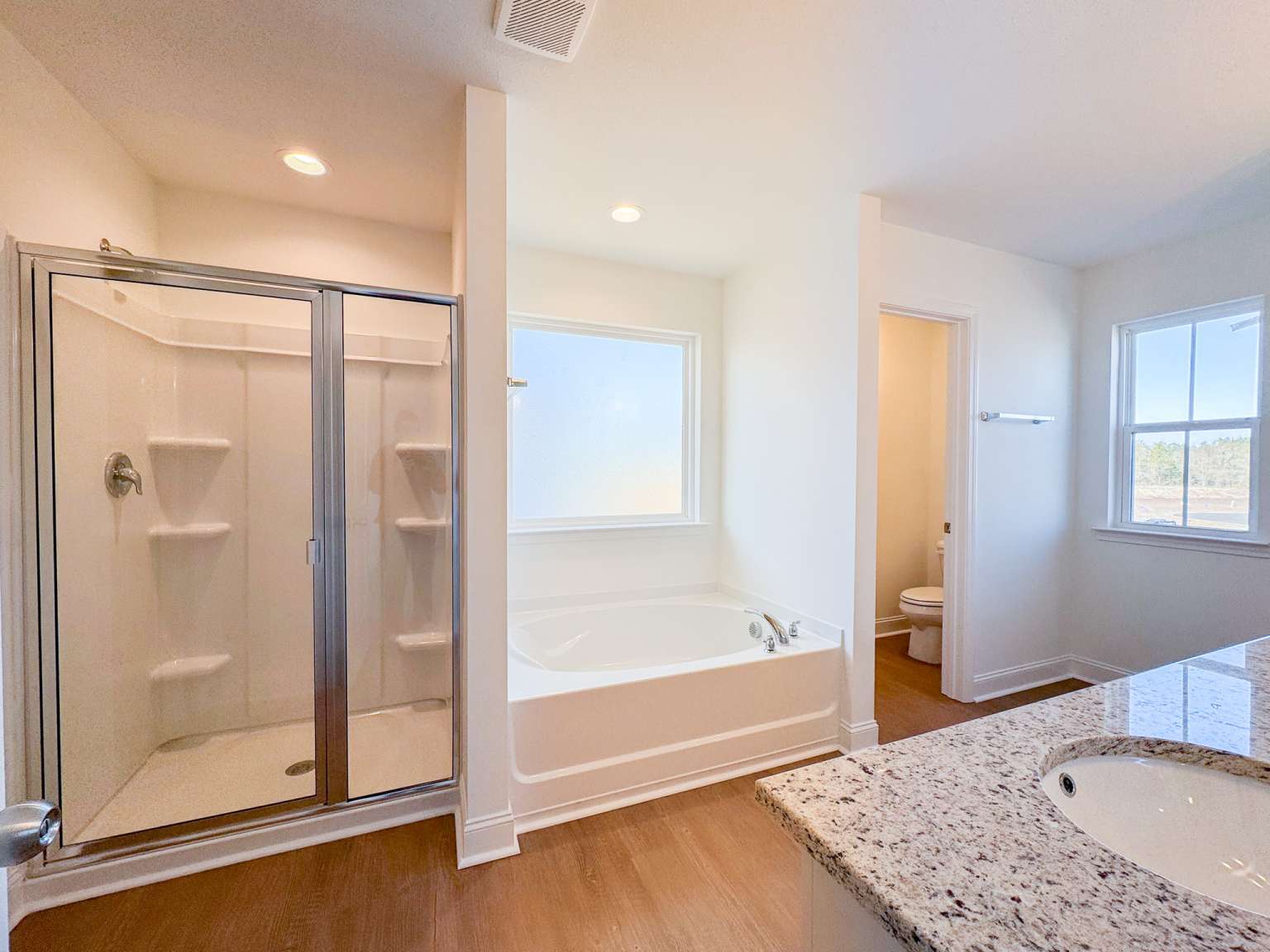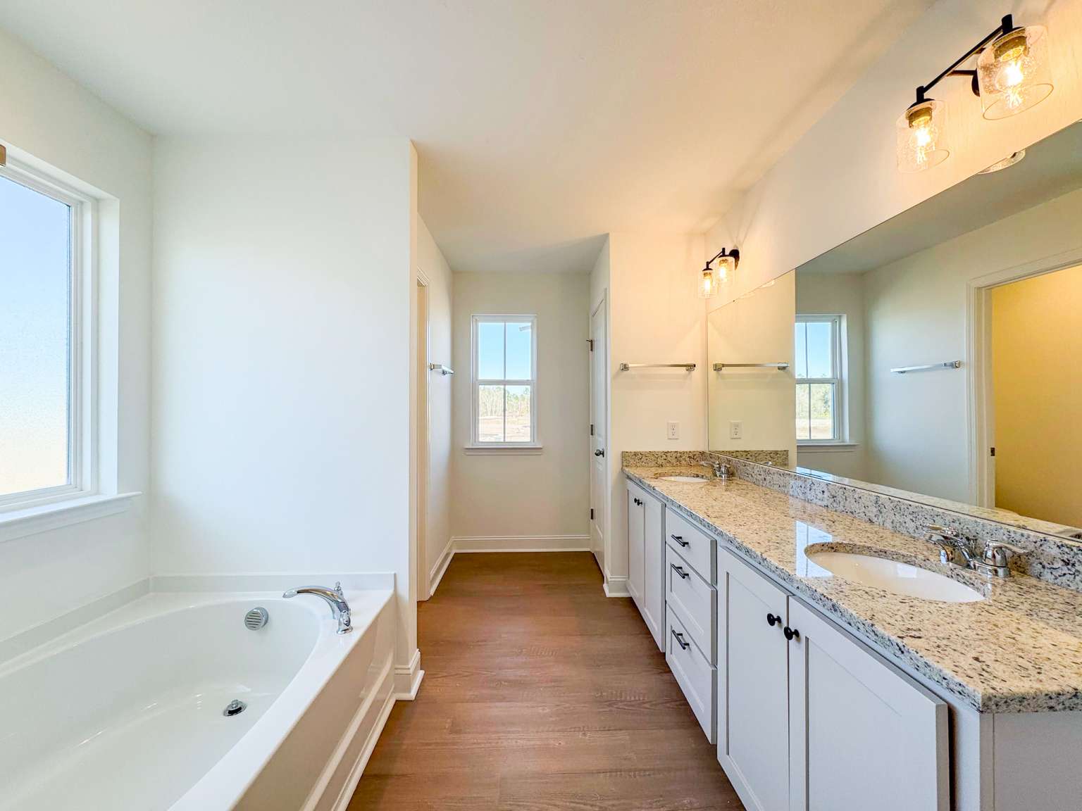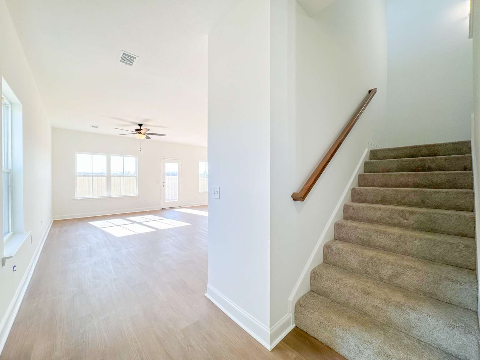 The new Lincoln plan in Boundary Hall! Conveniently situated near Ft. Stewart, with quick access to Hinesville & Jesup! This 3-bedroom patio home plan features an open-concept living space on the first floor with a fenced backyard with sod & irrigation! Upon entry to the Lincoln, find an open kitchen with clear views out to the dining room & family room. Step out to the fenced backyard & enjoy your patio! The fully equipped kitchen features ample cabinet space & granite counters, large pantry, plus access to your 2-car garage. A half bath is also located on the first floor. Located upstairs are two bedrooms, a laundry room, a hall bath with granite vanity & the primary suite! Within the impressive primary suite is a vaulted ceiling, private bath with dual, granite vanity, soaking tub & separate shower- plus access to a large walk-in closet! Estimated completion, February 2026.