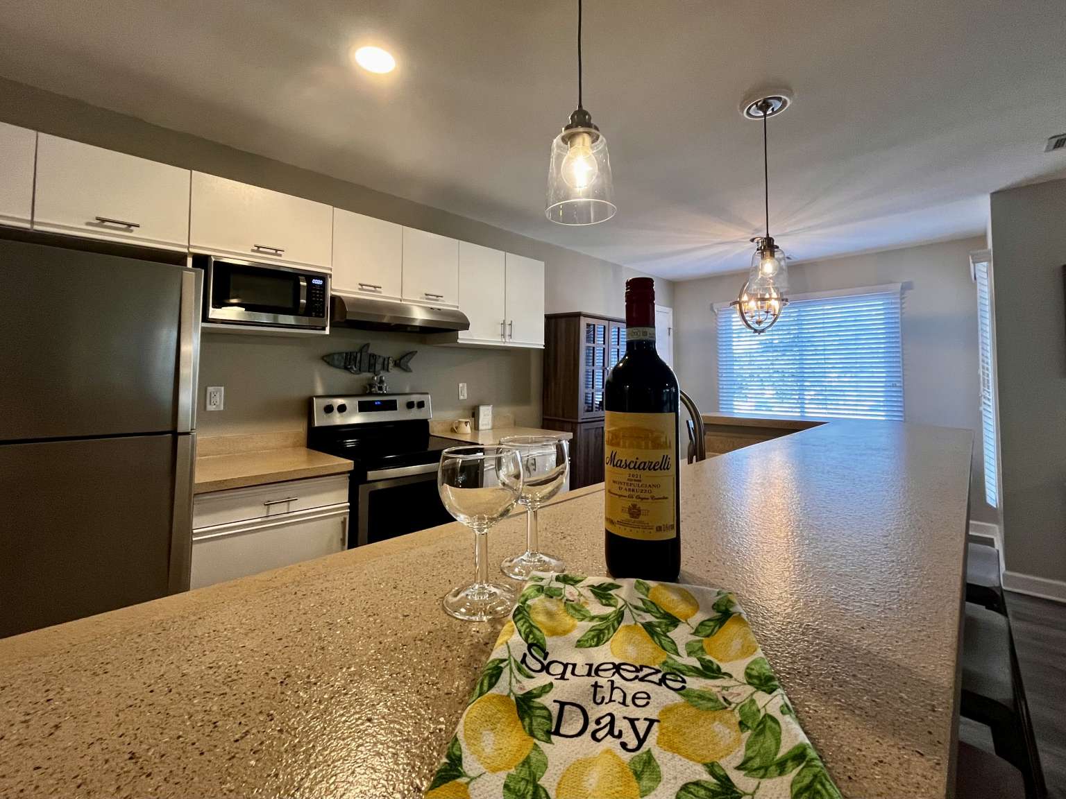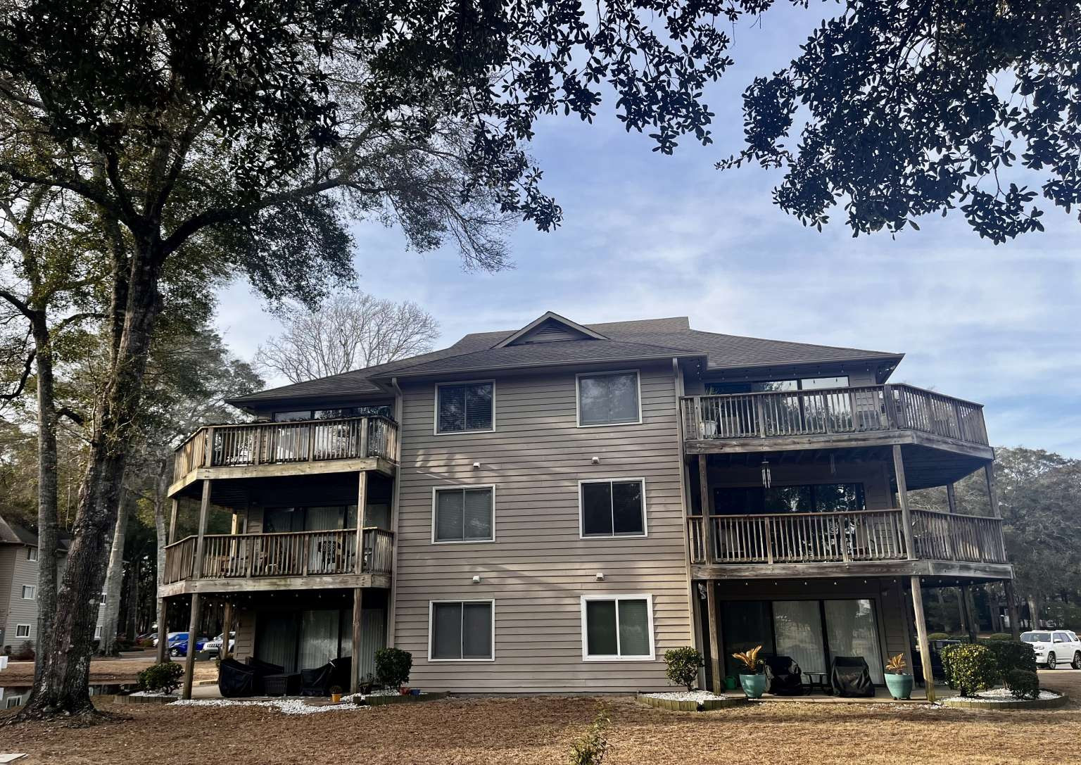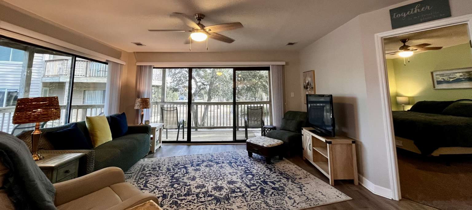 Welcome to this 2nd floor condo in the Oyster Bay community, where coastal charm meets resort-style living. This 2nd-floor end unit offers spectacular panoramic views of the golf course and tranquil pond from its spacious wrap-around deck—perfect for relaxing or entertaining. Inside, you'll find a bright, open floor plan with attractive LVP flooring. The kitchen features stainless steel appliances, a dining area and pantry, while the living room is framed by triple sliding glass doors on two walls that fill the space with natural light and open to the covered deck for indoor-outdoor living. The primary suite can serve as a private lock-out unit—complete with sliding doors to a screened-in deck, an ensuite bath and closet—making it an ideal option for rental income or guest privacy. A second bedroom with a walk-in closet, another full bath, and a convenient laundry room complete this well-designed condo. Enjoy the community's amenities, including a swimming pool, tennis and pickleball courts, or head just minutes away to Sunset Beach for a day of island fun, fishing, or explore the area's many renowned golf courses. Updated in 2019 with new heat pump, flooring, appliances, lighting and ceiling fans; new water heater 2024.