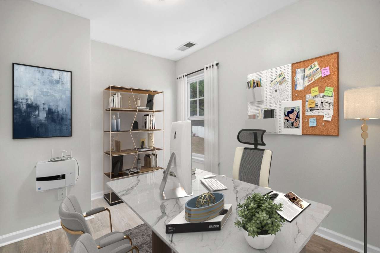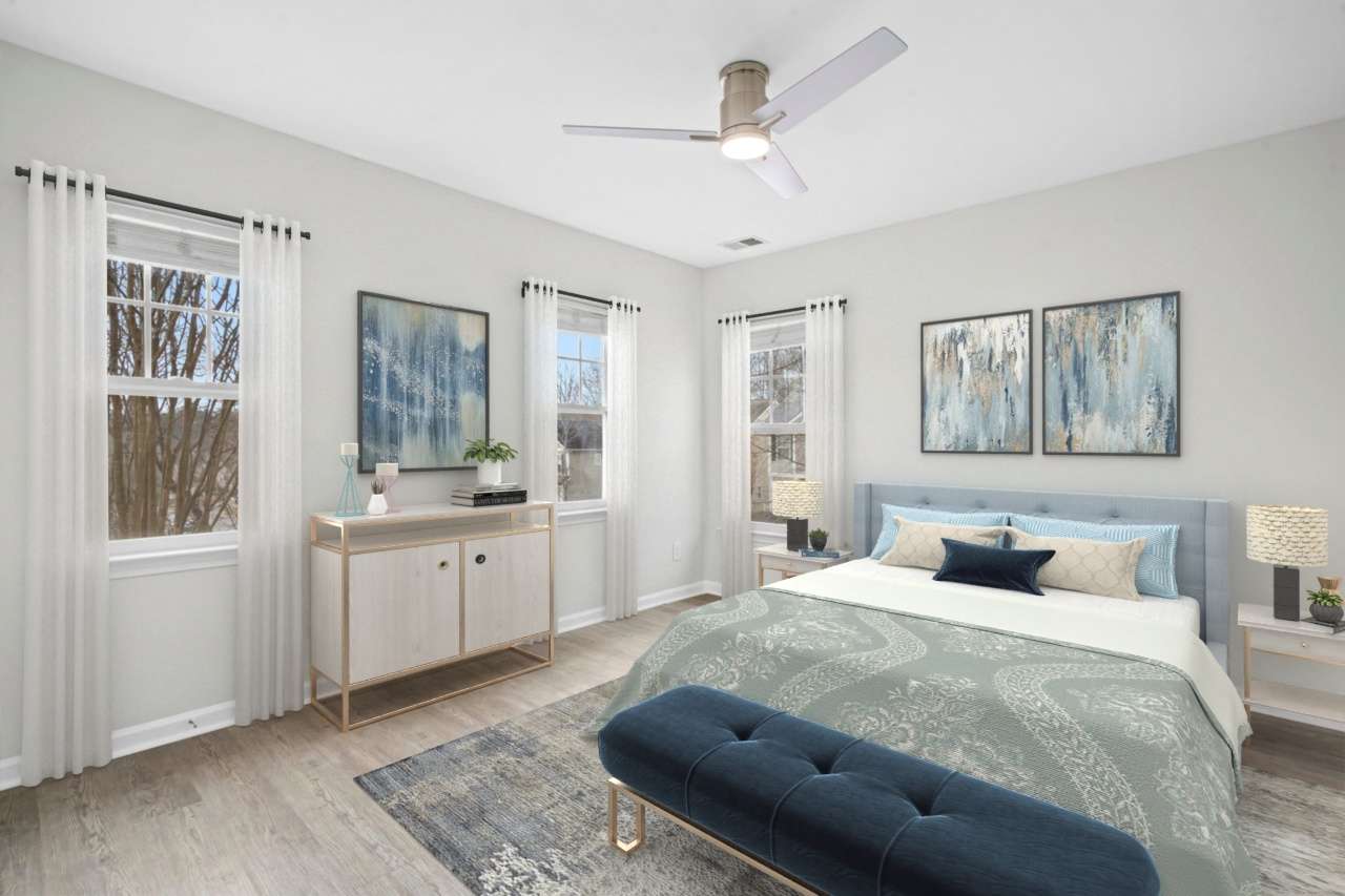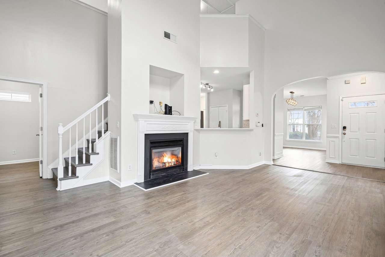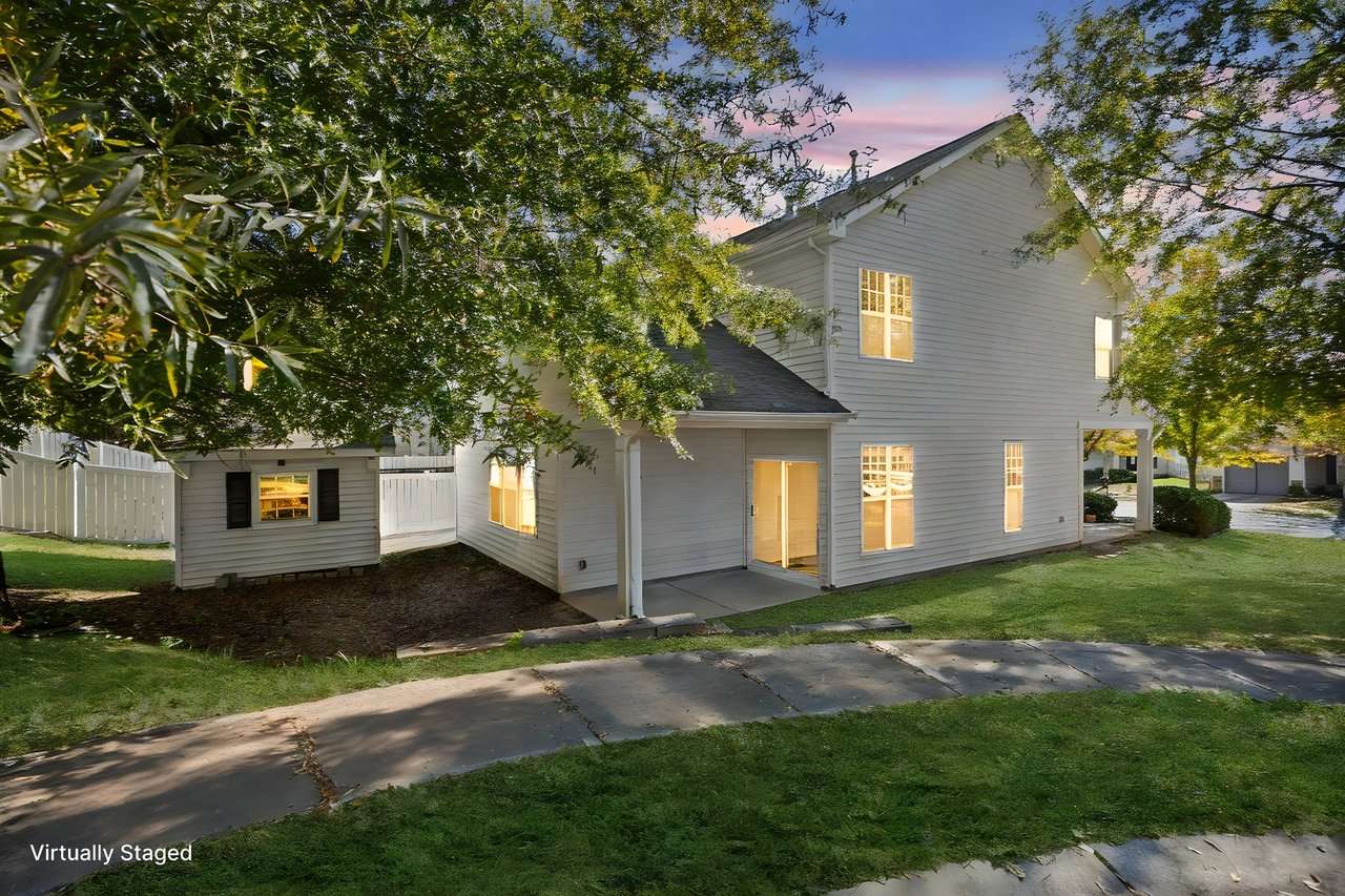 This freshly painted 3-bedroom, 2 ½ -bathroom home on a corner lot in a Cul-da-sac, with an attached garage includes a shed, LED lighting, new doors, vinyl windows and Luxury Vinyl Plank flooring throughout. The primary bedroom is located on the 1st floor, the guest 1/2 bathroom is also located on the 1st floor. Upstairs is a loft/flex space joins two secondary bedrooms, ideal for an office, playroom, or media area. The Kitchen has Calcutta quartz counter tops, tiled backsplash. All new stainless-steel appliances are included (refrigerator, stove, microwave, and dishwasher). Bathrooms have rain shower heads and quartz vanities. Living room and Bedrooms have remote control ceiling fans. The HVAC unit was installed in 2024. Smart devices to include a smart door lock and installed Ring spotlight security camera are included. Community amenities include a pool and playground area. Home is Virtually Staged