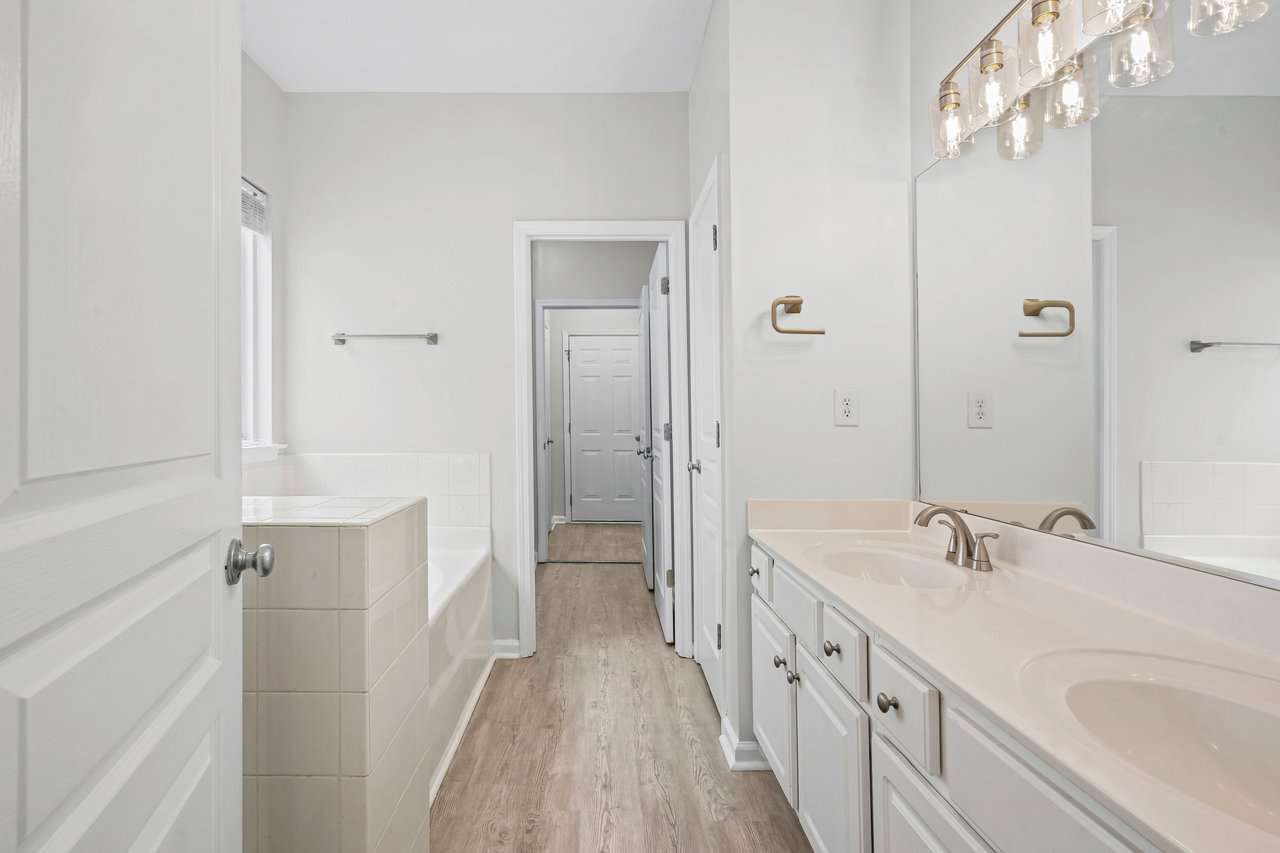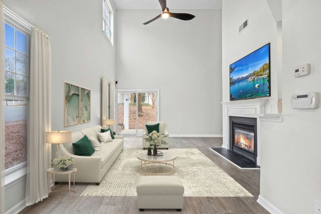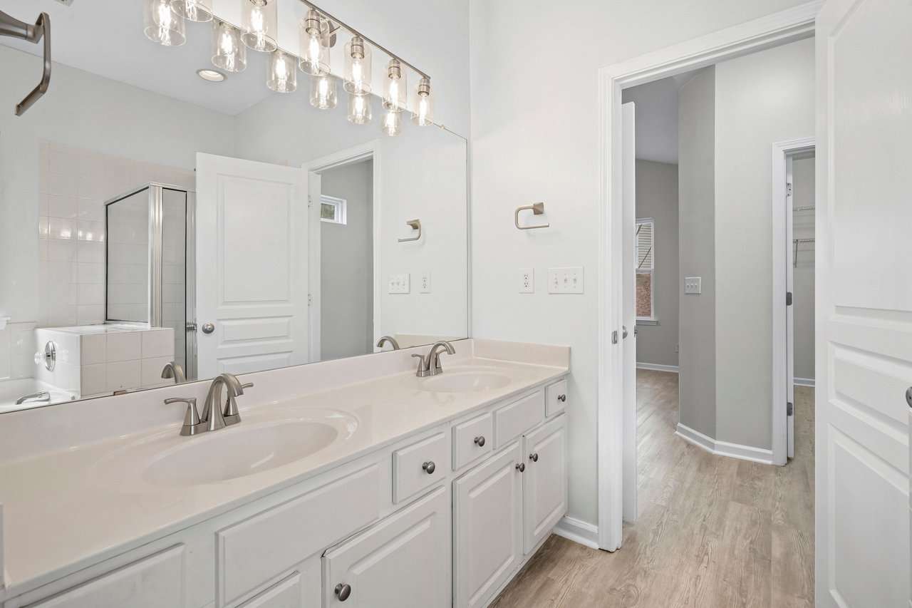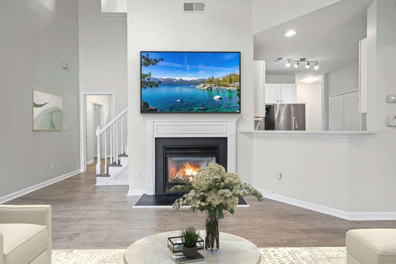 This freshly painted 3-bedroom, 2 ½ -bathroom home on a corner lot in a Cul-da-sac, with an attached garage includes a shed, LED lighting, new doors, vinyl windows and Luxury Vinyl Plank flooring throughout. The primary bedroom is located on the 1st floor, the guest 1/2 bathroom is also located on the 1st floor. Upstairs is a loft/flex space joins two secondary bedrooms, ideal for an office, playroom, or media area. The Kitchen has Calcutta quartz counter tops, tiled backsplash. All new stainless-steel appliances are included (refrigerator, stove, microwave, and dishwasher). Bathrooms have rain shower heads and quartz vanities. Living room and Bedrooms have remote control ceiling fans. The HVAC unit was installed in 2024. Smart devices to include a smart door lock and installed Ring spotlight security camera are included. Community amenities include a pool and playground area. Home is Virtually Staged
