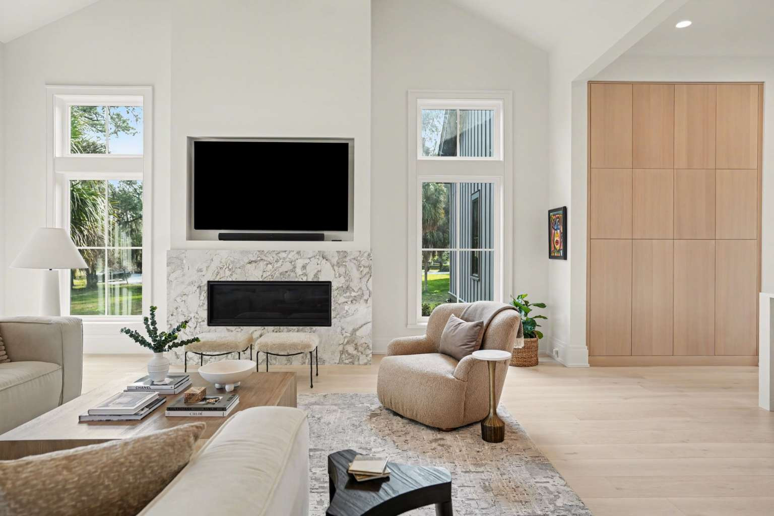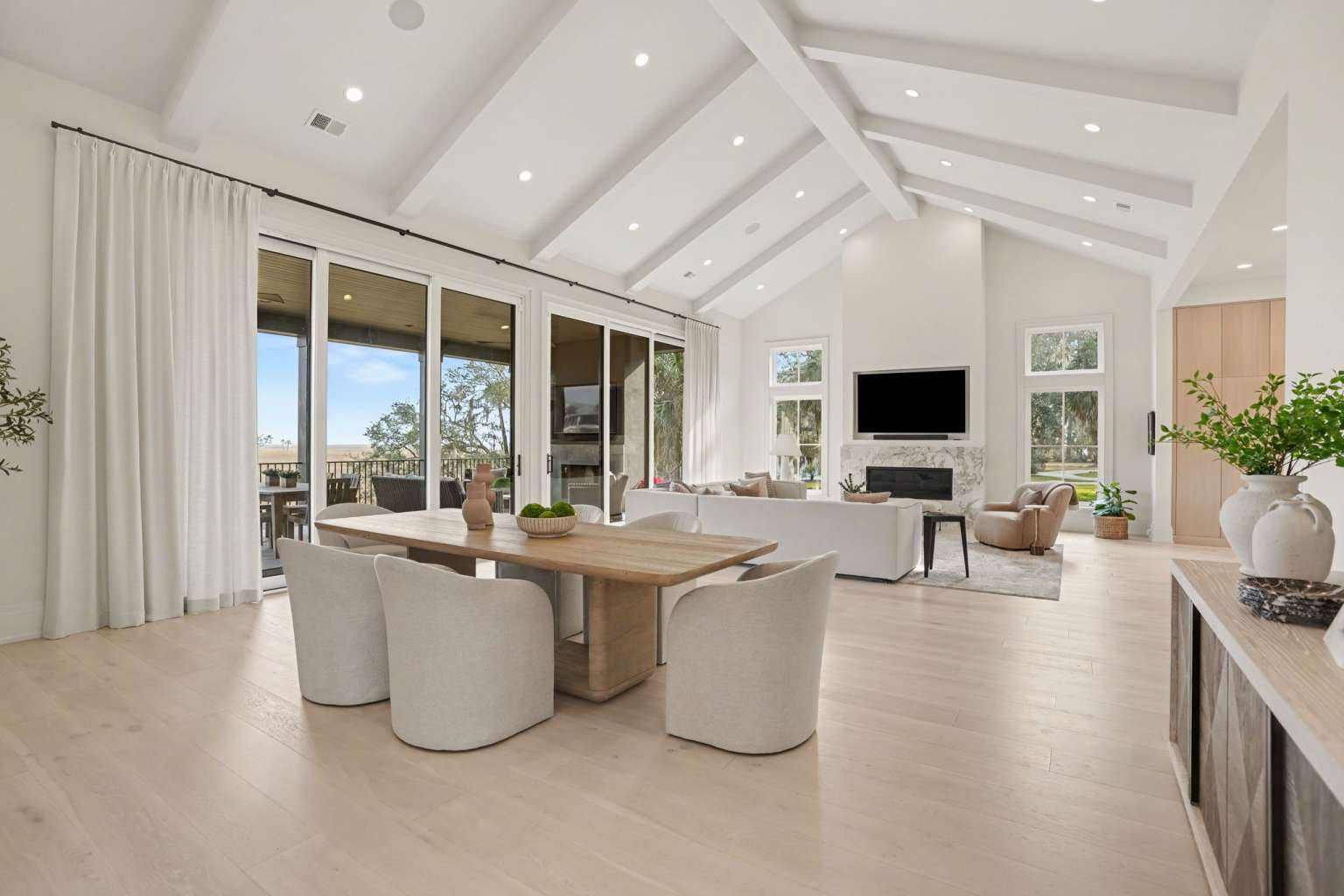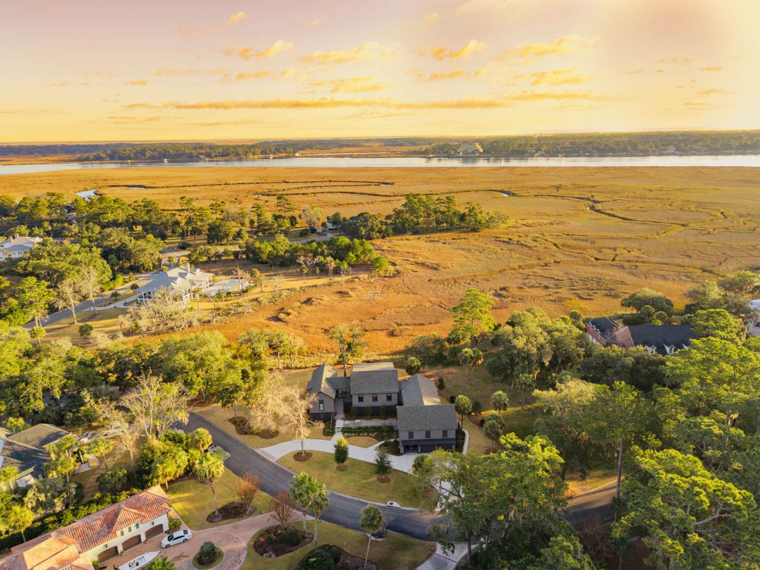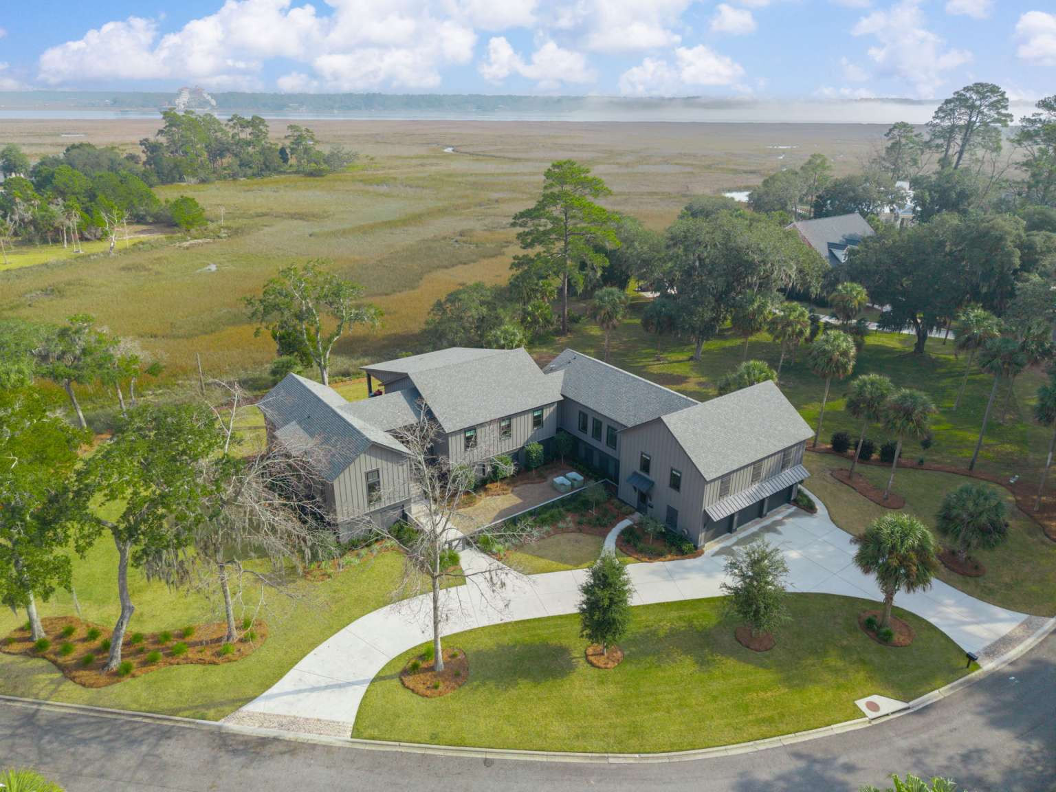 Experience refined Lowcountry living in this stunning custom-built marshfront home, thoughtfully designed to combine luxury, comfort, and effortless entertaining.Situated on over an acre on Modena Island, this four-bedroom, four-and-a-half-bath residence offers exceptional privacy and sweeping natural views. Step inside to an open-concept floor plan filled with light and architectural detail. Eleven-foot ceilings and dramatic vaulted spaces create an airy, elegant atmosphere, while wide-plank hardwood flooring flows seamlessly throughout the home. The chef’s kitchen is the heart of the home, showcasing beautiful white oak custom cabinetry, a matching butler’s pantry, and a full suite of Wolf and Sub-Zero appliances—perfect for both everyday living and elevated entertaining. Every finish has been carefully selected to reflect quality, warmth, and timeless style. Modern convenience meets peace of mind with a whole-home generator and full water filtration system.