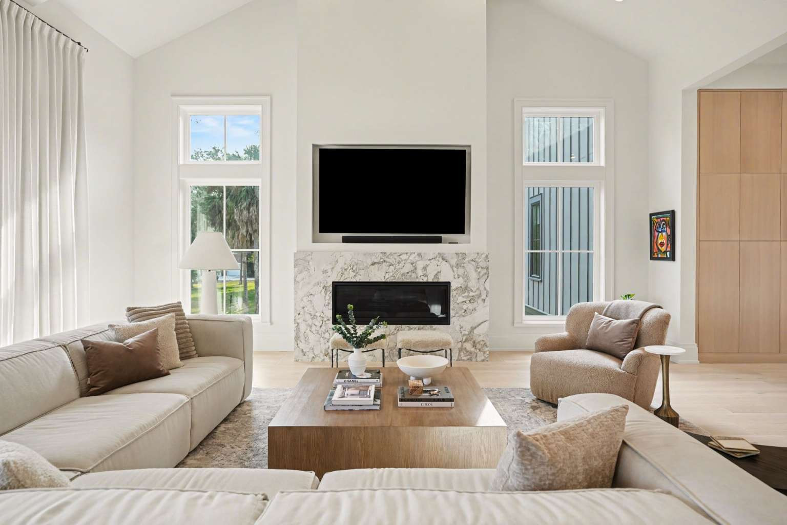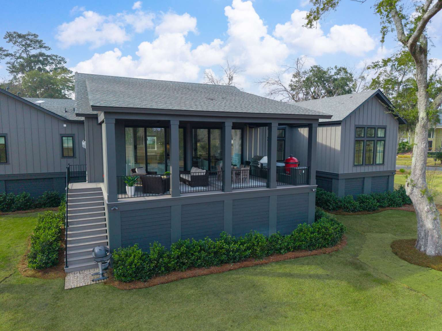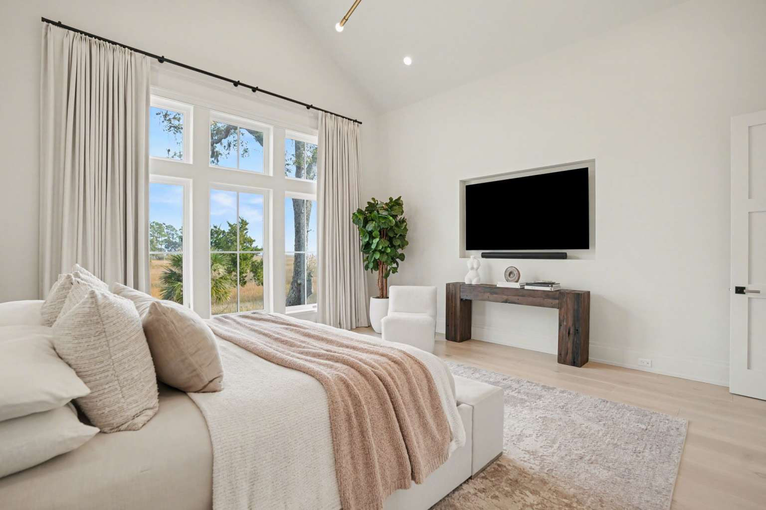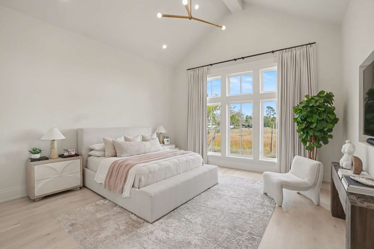Experience refined Lowcountry living in this stunning custom-built marshfront home, thoughtfully designed to combine luxury, comfort, and effortless entertaining.Situated on over an acre on Modena Island, this four-bedroom, four-and-a-half-bath residence offers exceptional privacy and sweeping natural views. Step inside to an open-concept floor plan filled with light and architectural detail. Eleven-foot ceilings and dramatic vaulted spaces create an airy, elegant atmosphere, while wide-plank hardwood flooring flows seamlessly throughout the home. The chef’s kitchen is the heart of the home, showcasing beautiful white oak custom cabinetry, a matching butler’s pantry, and a full suite of Wolf and Sub-Zero appliances—perfect for both everyday living and elevated entertaining. Every finish has been carefully selected to reflect quality, warmth, and timeless style. Modern convenience meets peace of mind with a whole-home generator and full water filtration system.