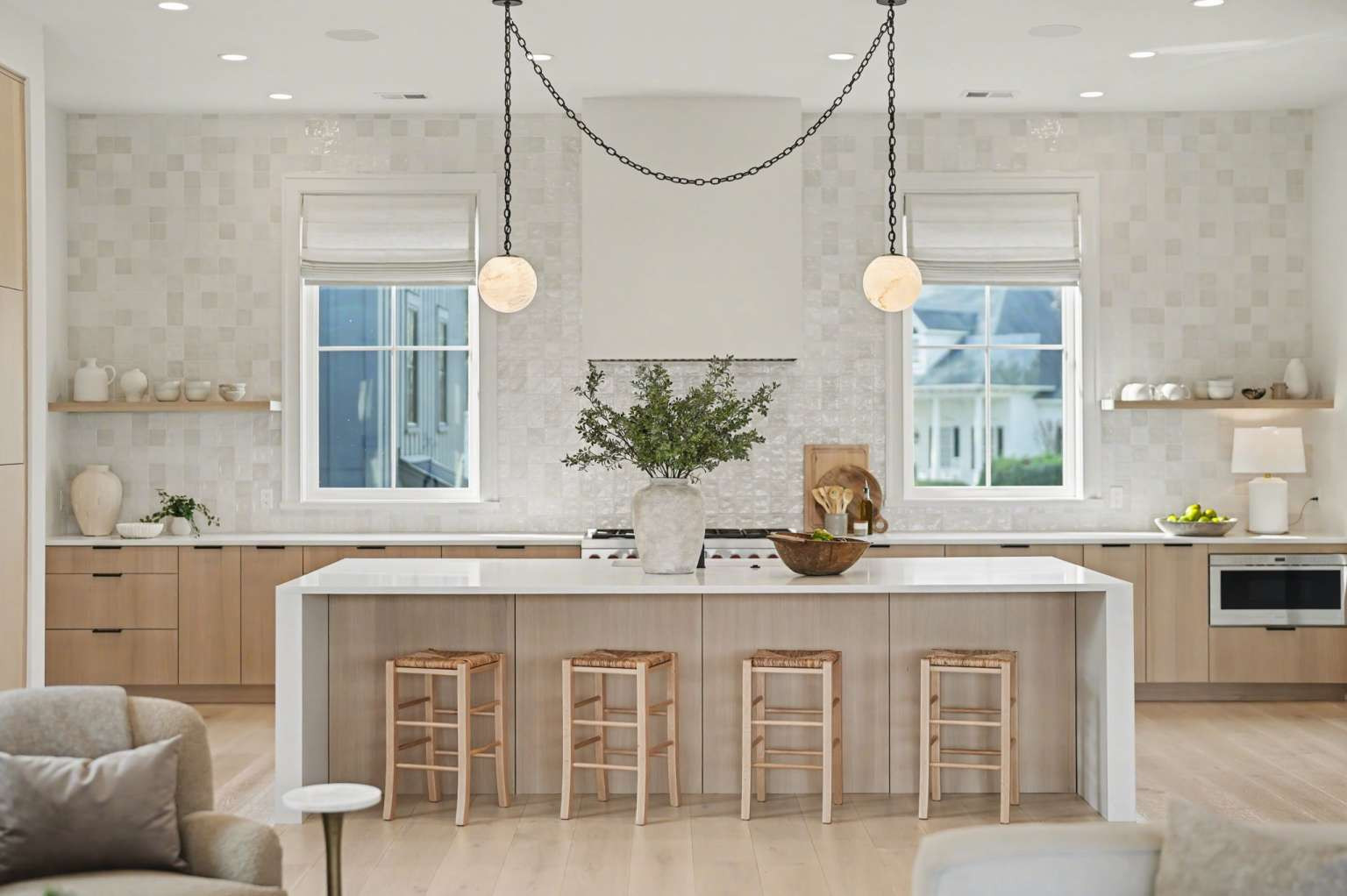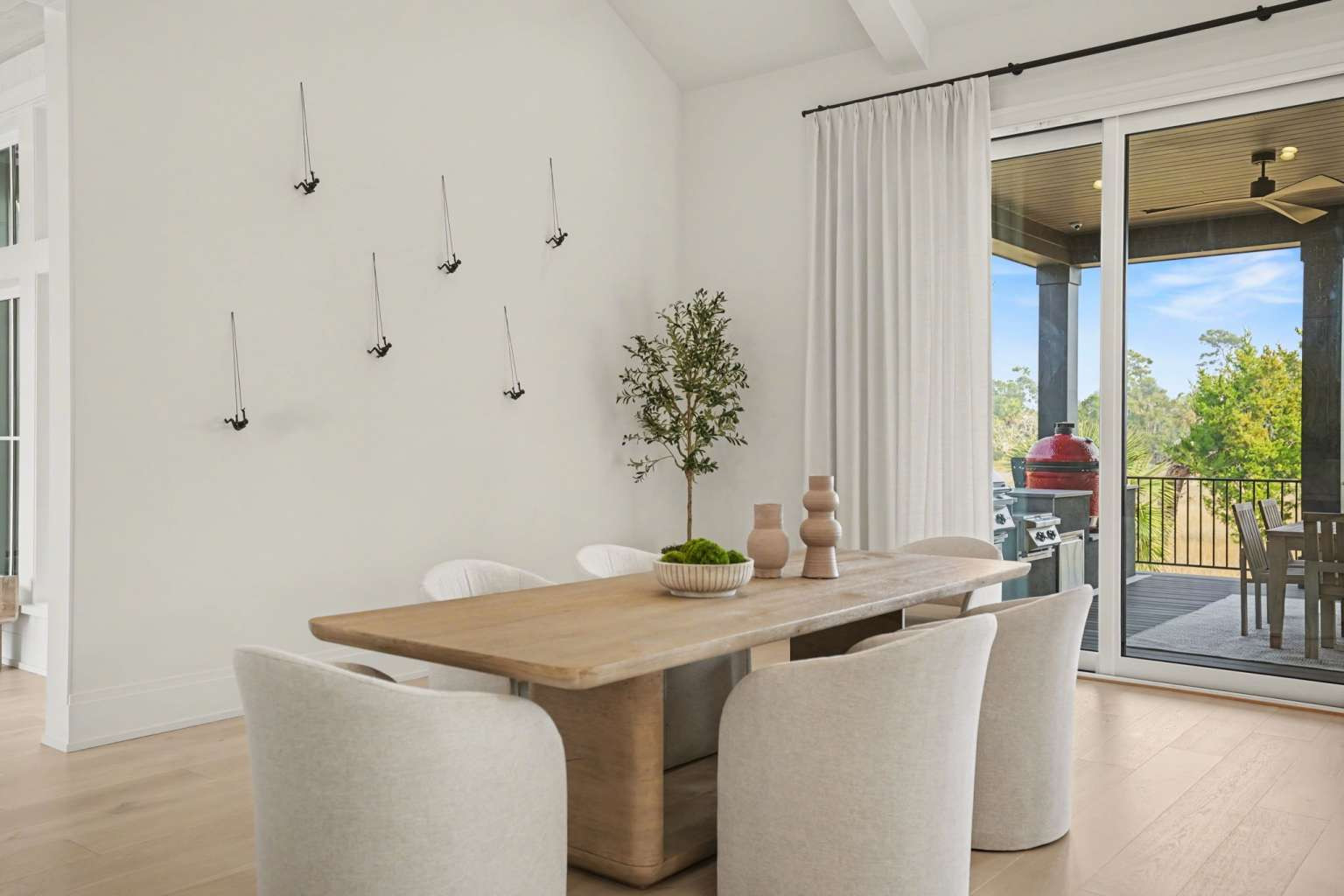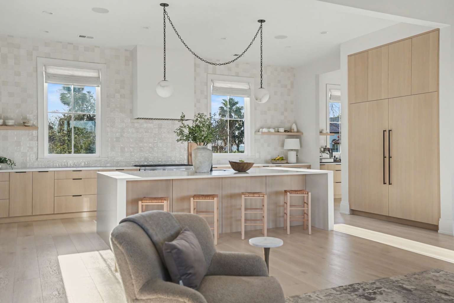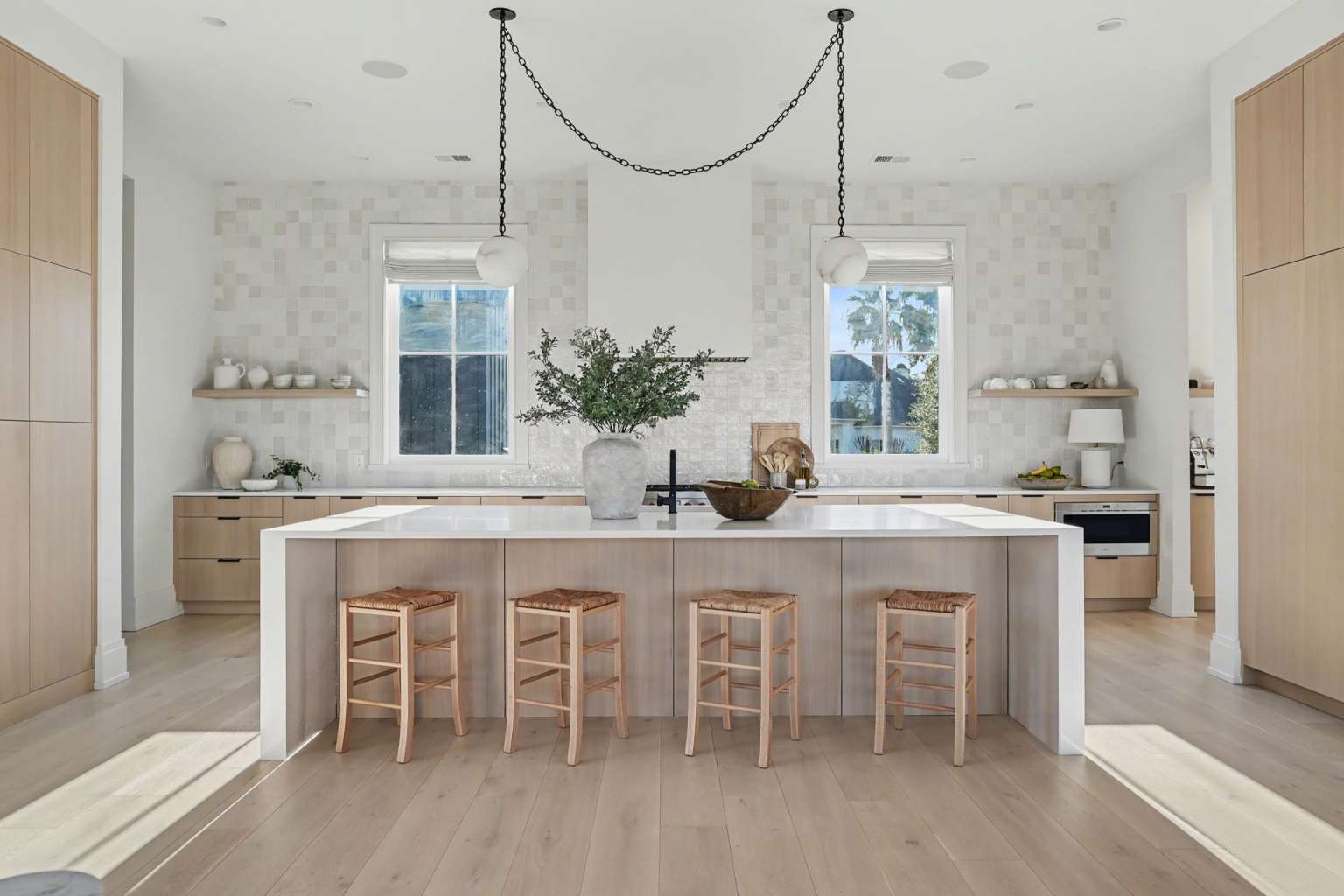 Experience refined Lowcountry living in this stunning custom-built marshfront home, thoughtfully designed to combine luxury, comfort, and effortless entertaining.Situated on over an acre on Modena Island, this four-bedroom, four-and-a-half-bath residence offers exceptional privacy and sweeping natural views. Step inside to an open-concept floor plan filled with light and architectural detail. Eleven-foot ceilings and dramatic vaulted spaces create an airy, elegant atmosphere, while wide-plank hardwood flooring flows seamlessly throughout the home. The chef’s kitchen is the heart of the home, showcasing beautiful white oak custom cabinetry, a matching butler’s pantry, and a full suite of Wolf and Sub-Zero appliances—perfect for both everyday living and elevated entertaining. Every finish has been carefully selected to reflect quality, warmth, and timeless style. Modern convenience meets peace of mind with a whole-home generator and full water filtration system.