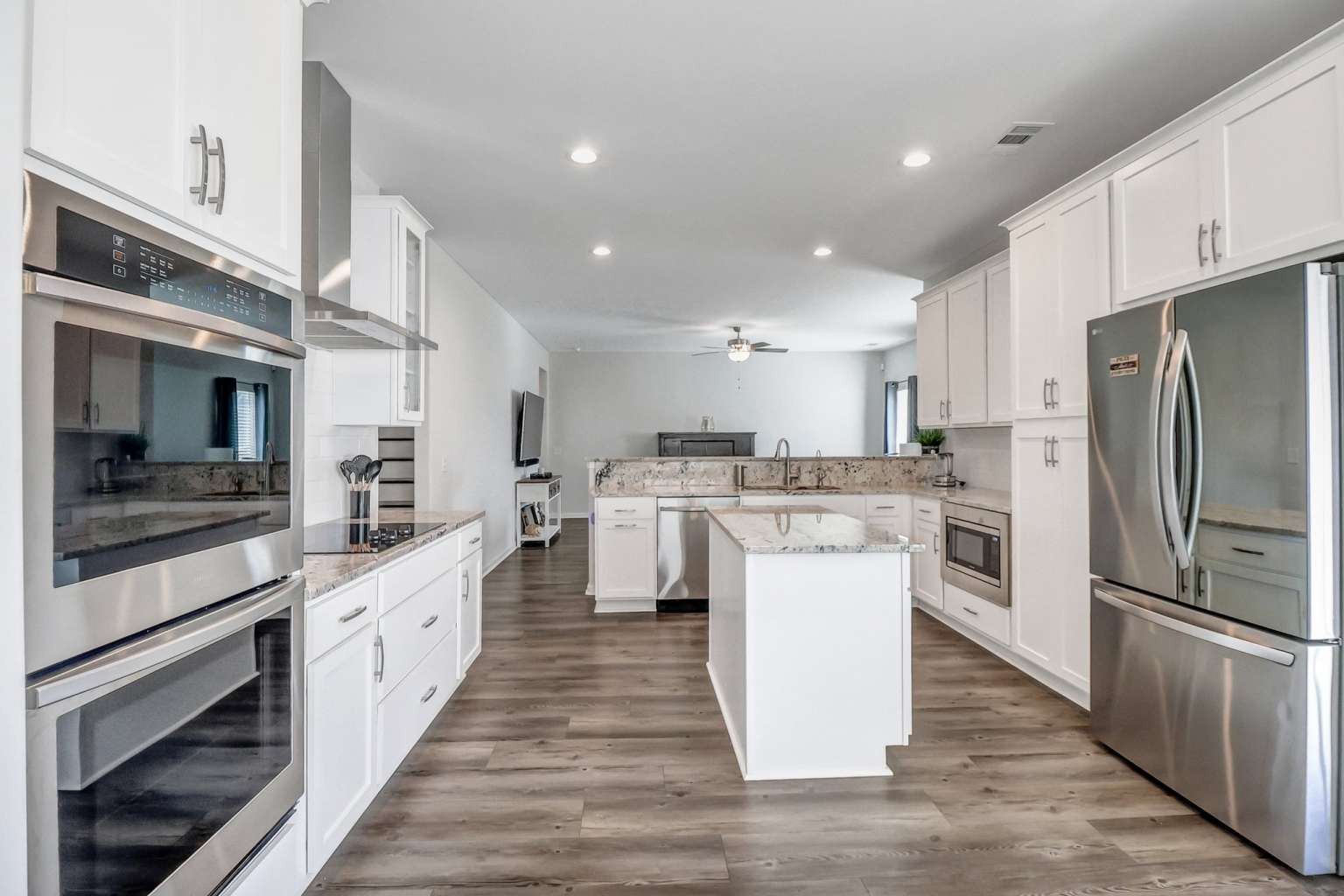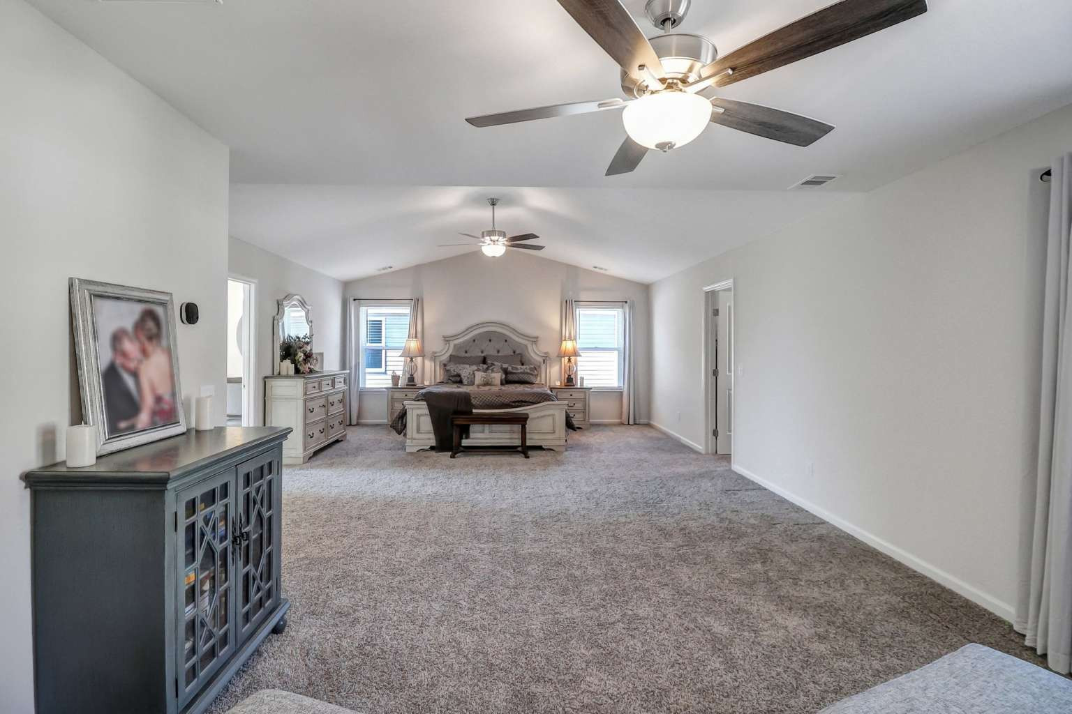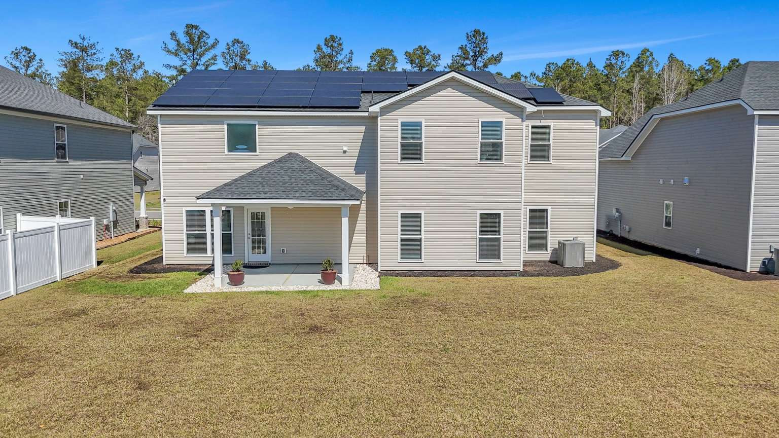 Luxury, space, and modern efficiency come together in the Savannah Plan by Smith Family Homes. This beautifully designed home features an open-concept layout with LVP flooring on the main level, tile bathrooms, and plush carpet upstairs. The gourmet kitchen offers granite countertops, upscale cabinetry, and premium stainless-steel appliances, opening seamlessly to the great room—ideal for entertaining. A formal dining room, private office, main-level guest bedroom, and spacious loft provide flexible living options. The primary suite is a true retreat with a sitting area and dual walk-in closets. Enjoy outdoor living on the covered back porch. Energy-conscious upgrades include a solar panel system with battery storage and a water softener. The solar system will be fully paid off at closing and has helped significantly reduce electrical usage. Washer and dryer are included. Community amenities include a pool, clubhouse, fitness center, and playground. Schedule your showing today!