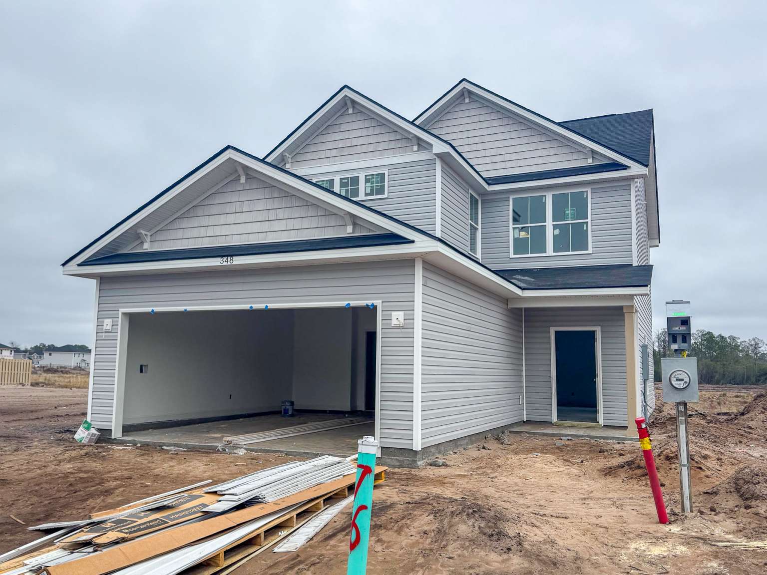 Discover the charm of the Fairfax plan, perfectly situated in Boundary Hall. Step inside to an inviting open-concept living space filled with natural light and backyard views. The kitchen, thoughtfully positioned near the entry, overlooks the dining area and family room—ideal for entertaining or everyday living. Enjoy beautiful granite countertops, abundant cabinetry, a large pantry, and convenient access to the garage and half bath. Relax outdoors on your back patio, complete with a fenced yard, sod, and irrigation system. Upstairs, you'll find two secondary bedrooms, a hall bath with granite vanity, and a dedicated laundry room. The spacious primary suite impresses with a vaulted ceiling & private bath. The private bathroom boasts a large shower, dual granite vanity with general walk-in closet! Estimated completion: April 2026. E