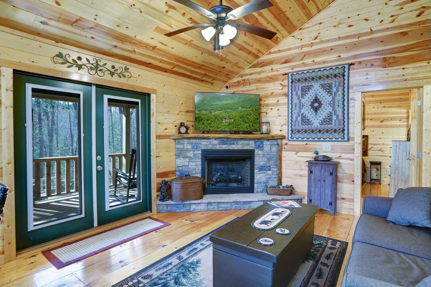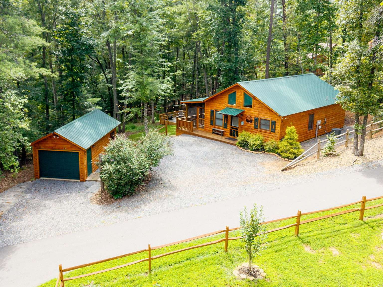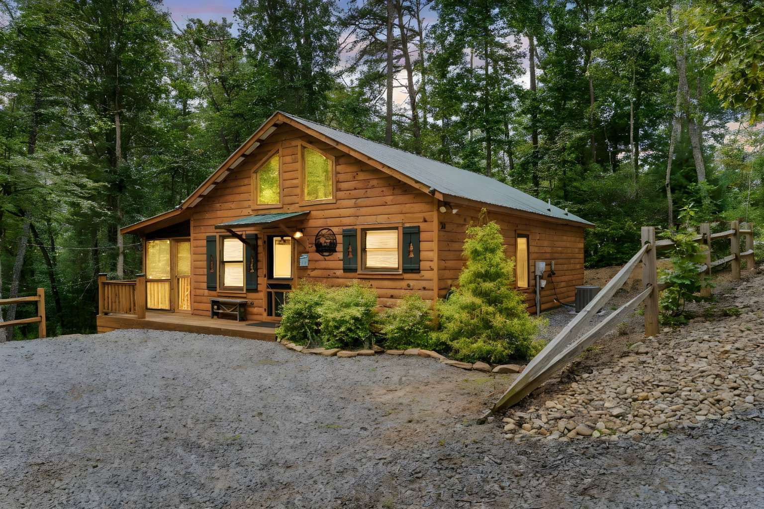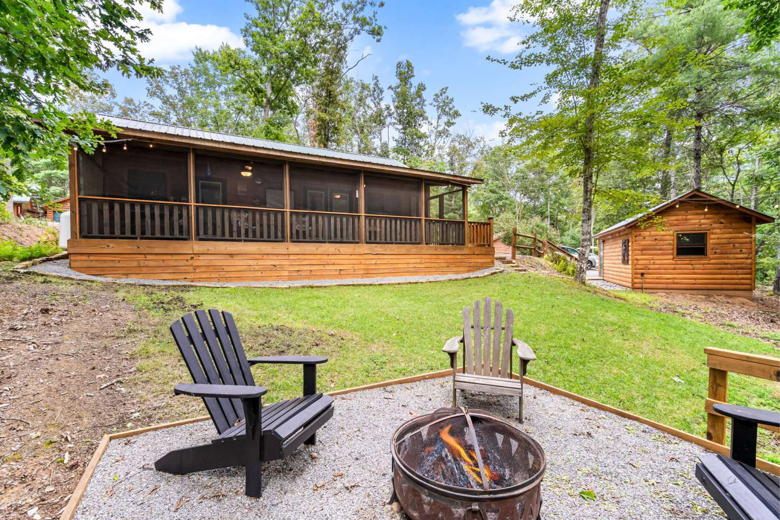 This must-see 100 % FURNISHED cabin is in the beautiful rural cabin community of Whispering Hills, 10 miles SW of Murphy, NC minutes from highway 64/74. Once inside on the right is a roomy kitchen with wood cabinets and granite countertops. The dining area is on the left with adjoining living space featuring a stone front gas fireplace, French Doors to the porch, and Vaulted ceilings. Off the living area is the Master bedroom with high ceilings, door to the porch, full bath and closet. Bedroom 2 has a queen-size bed, closet and a laundry closet. A full bath in the hallway completes the interior of this fantastic cabin! The porch is fully screened so you can enjoy the views. The backyard has a 12x12 firepit. The front gravel parking area holds 2-3 vehicles. Unattached finished 1 car garage