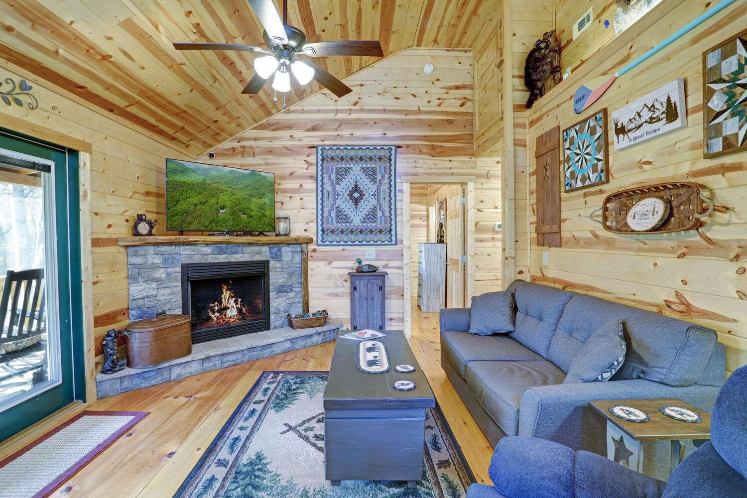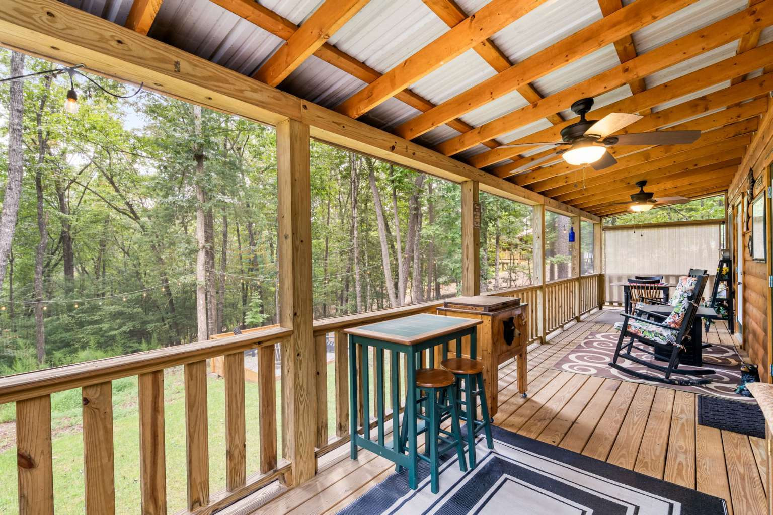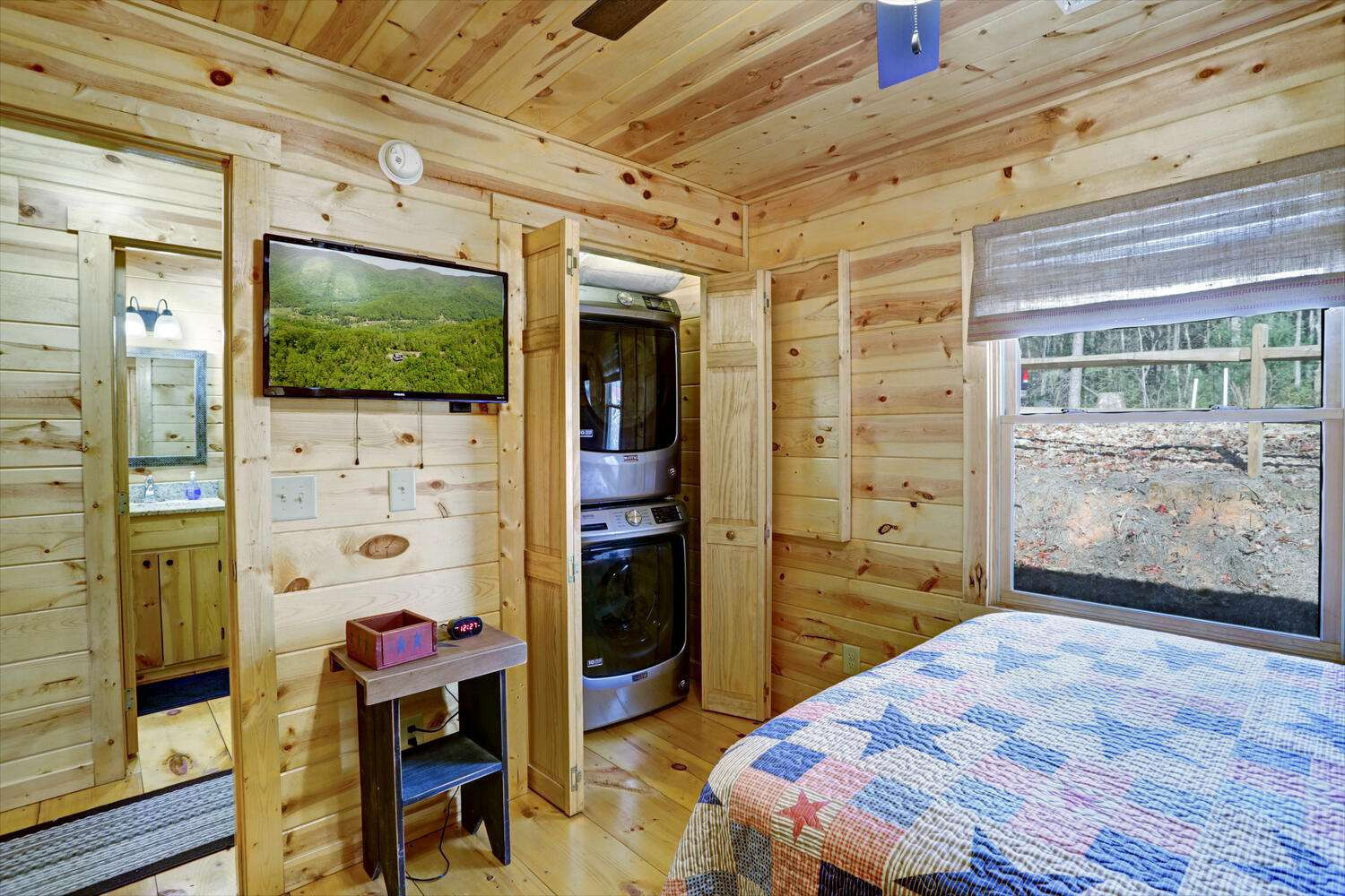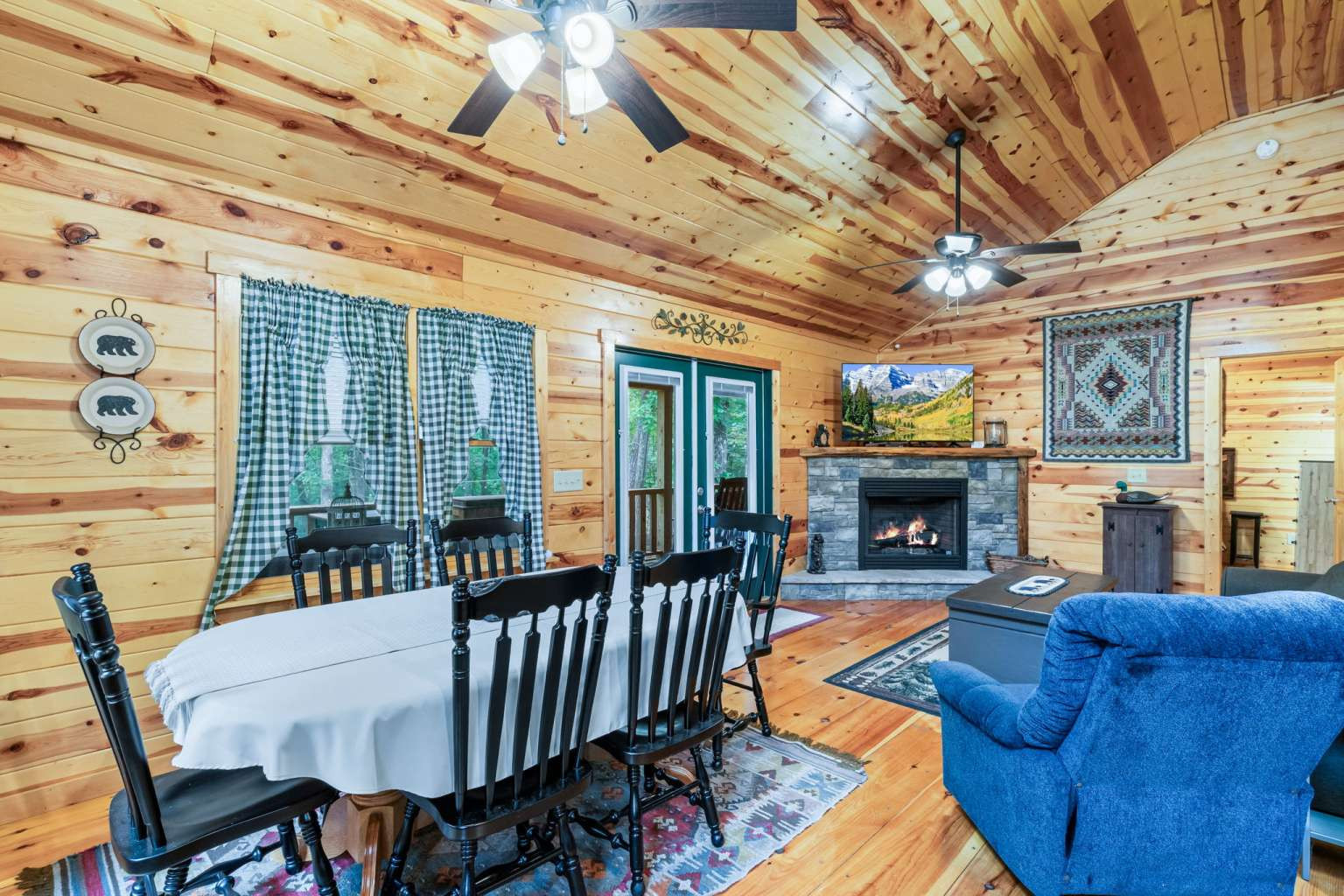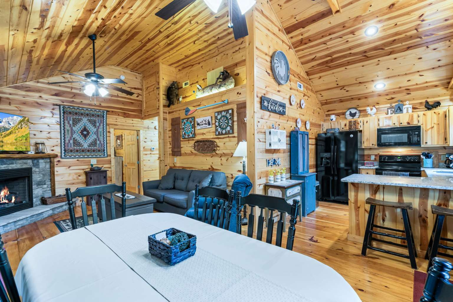 This must-see 100 % FURNISHED cabin is in the beautiful rural cabin community of Whispering Hills, 10 miles SW of Murphy, NC minutes from highway 64/74. Once inside on the right is a roomy kitchen with wood cabinets and granite countertops. The dining area is on the left with adjoining living space featuring a stone front gas fireplace, French Doors to the porch, and Vaulted ceilings. Off the living area is the Master bedroom with high ceilings, door to the porch, full bath and closet. Bedroom 2 has a queen-size bed, closet and a laundry closet. A full bath in the hallway completes the interior of this fantastic cabin! The porch is fully screened so you can enjoy the views. The backyard has a 12x12 firepit. The front gravel parking area holds 2-3 vehicles. Unattached finished 1 car garage