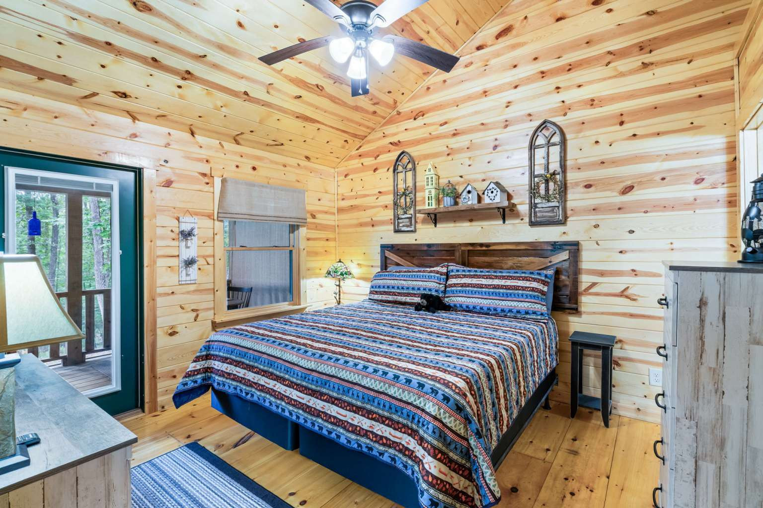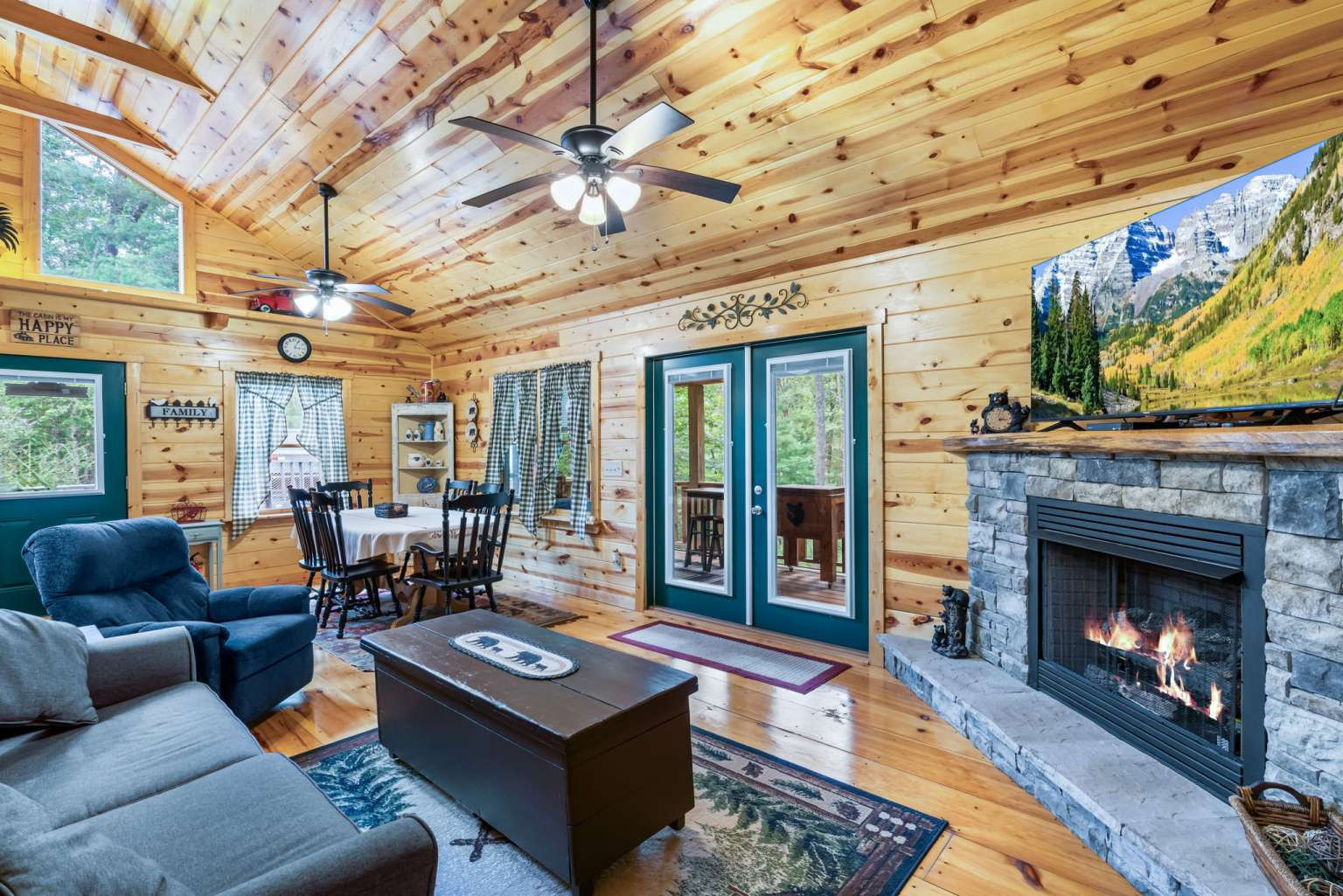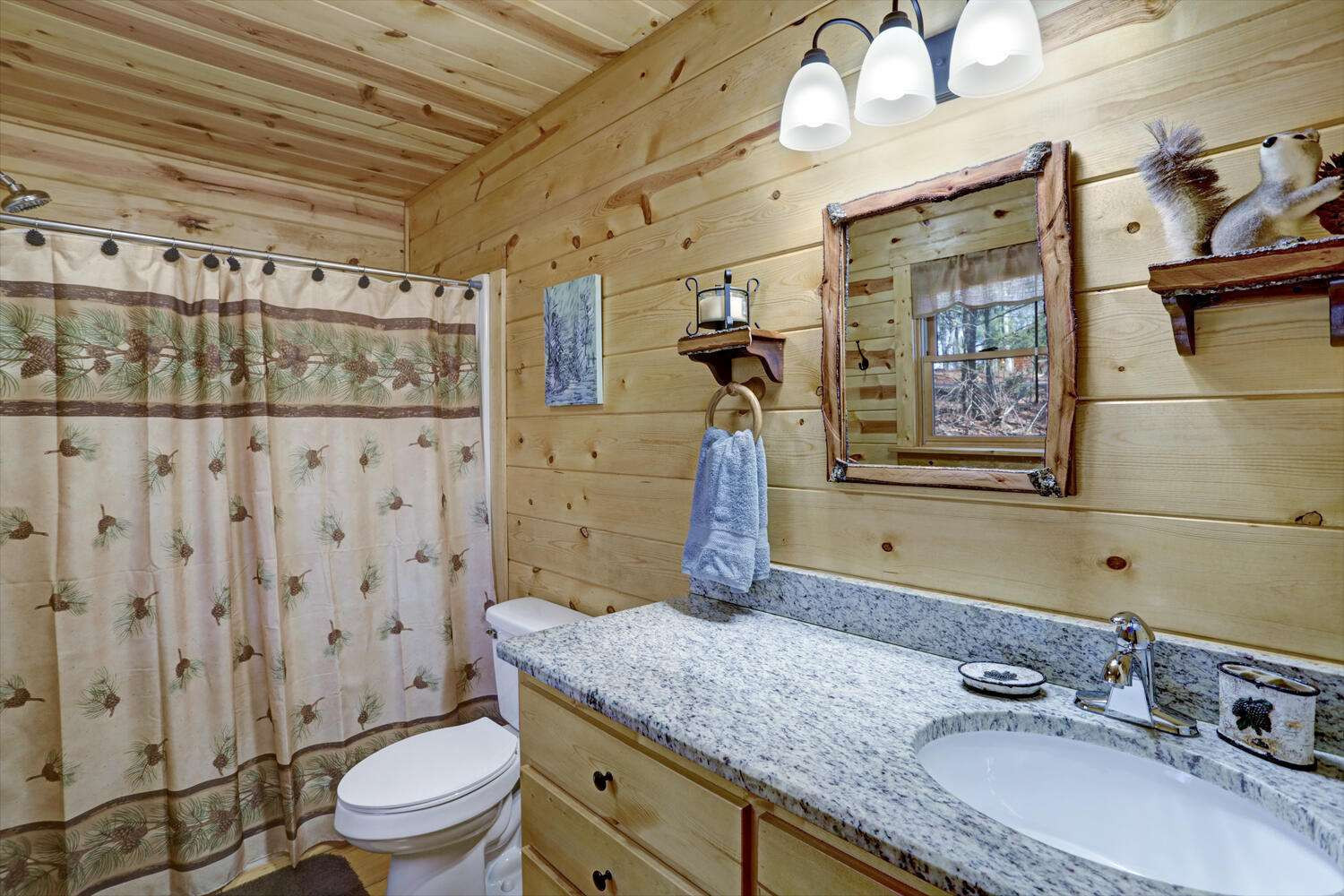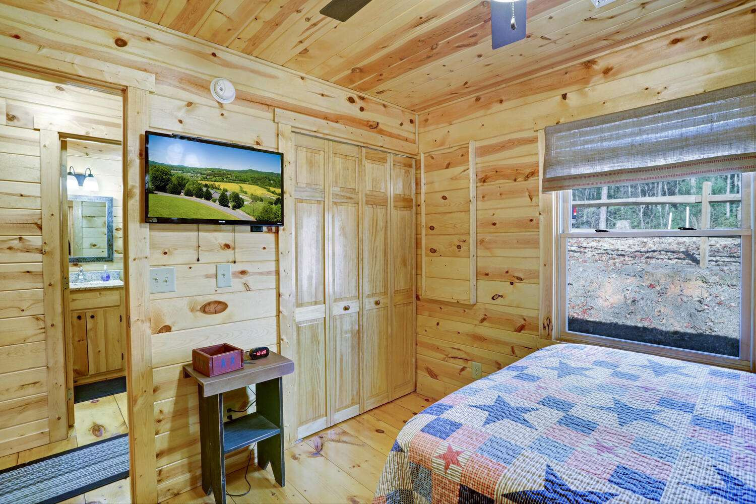 This must-see 100 % FURNISHED cabin is in the beautiful rural cabin community of Whispering Hills, 10 miles SW of Murphy, NC minutes from highway 64/74. Once inside on the right is a roomy kitchen with wood cabinets and granite countertops. The dining area is on the left with adjoining living space featuring a stone front gas fireplace, French Doors to the porch, and Vaulted ceilings. Off the living area is the Master bedroom with high ceilings, door to the porch, full bath and closet. Bedroom 2 has a queen-size bed, closet and a laundry closet. A full bath in the hallway completes the interior of this fantastic cabin! The porch is fully screened so you can enjoy the views. The backyard has a 12x12 firepit. The front gravel parking area holds 2-3 vehicles. Unattached finished 1 car garage