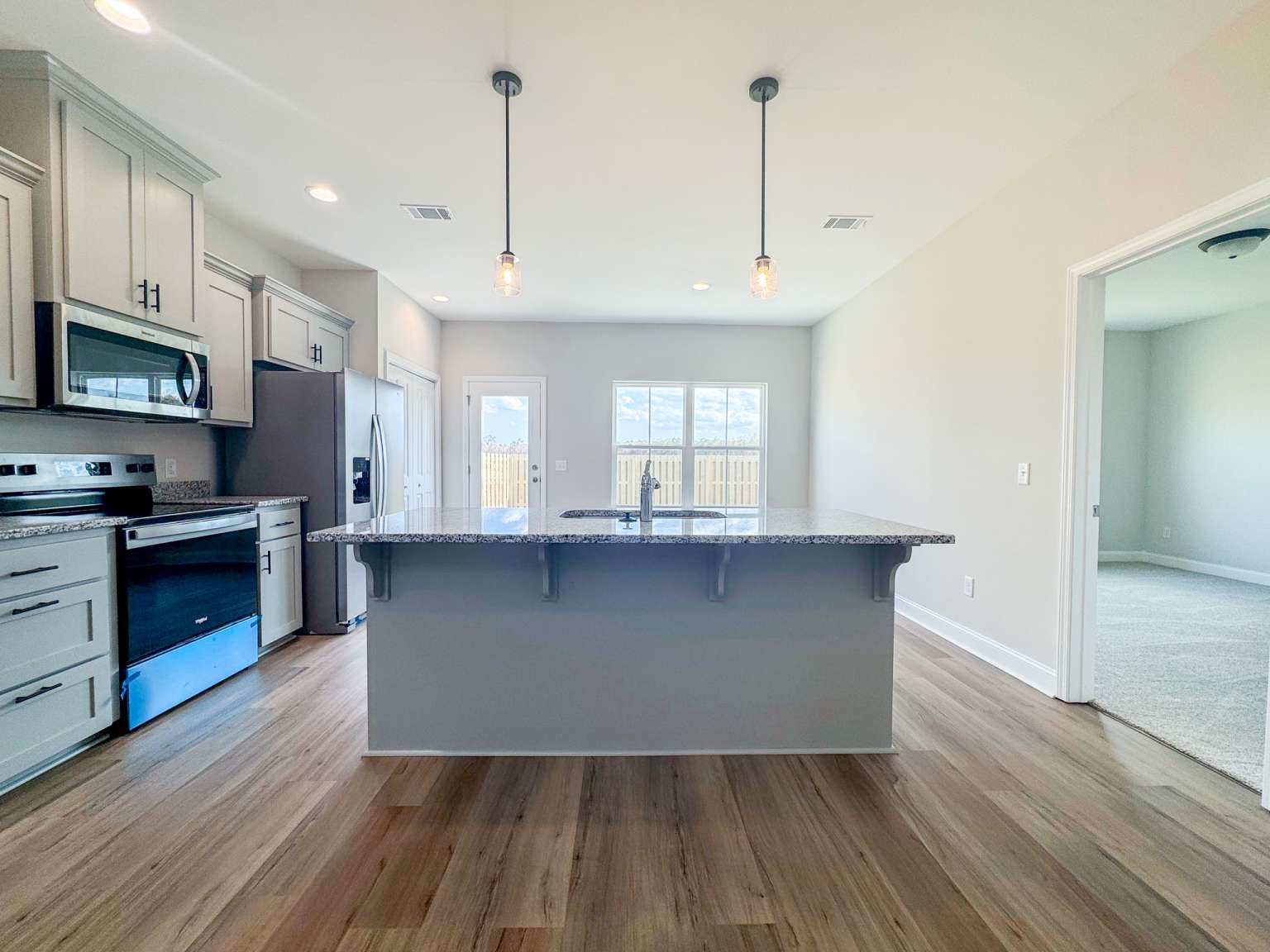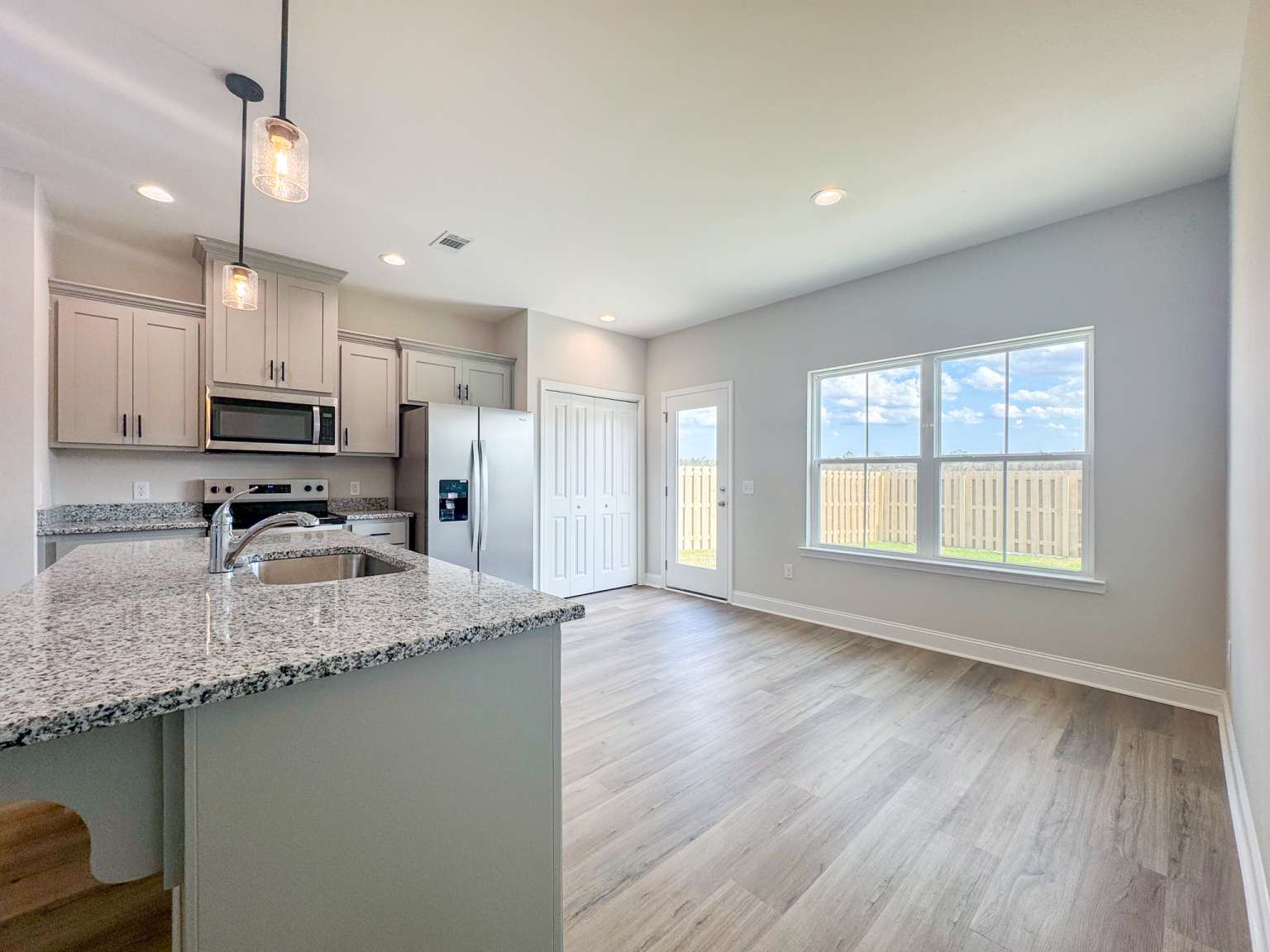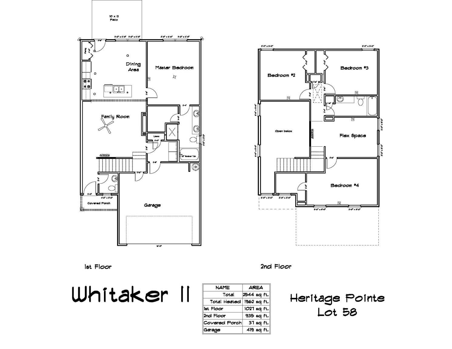 Welcome to the Whitaker, a thoughtfully designed patio home located in Heritage Pointe— just minutes from Fort Stewart and local schools! Step inside to a striking two-story foyer and family room, creating a bright and open first impression. The spacious family room offers a seamless view into the kitchen, as well as convenient access to the laundry room and two-car garage. The eat-in kitchen is perfect for both everyday living and entertaining, featuring granite countertops, ample cabinetry, a pantry & direct access to the backyard patio. Enjoy relaxing outdoors in your fenced, sodded & irrigated yard — ideal for morning coffee or evening gatherings. Just off the kitchen, the primary suite offers a peaceful retreat with a private bath complete with a dual vanity, soaking tub, separate shower & walk-in closet. Upstairs, you'll find three spacious bedrooms and a full hall bath, all centered around a versatile flex space overlooking the family room.