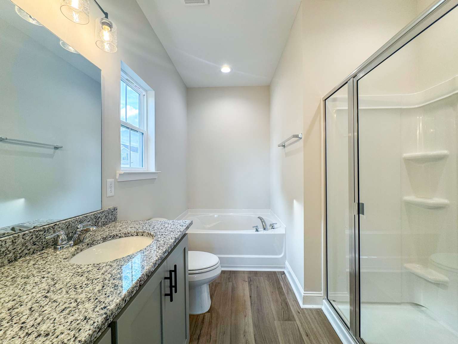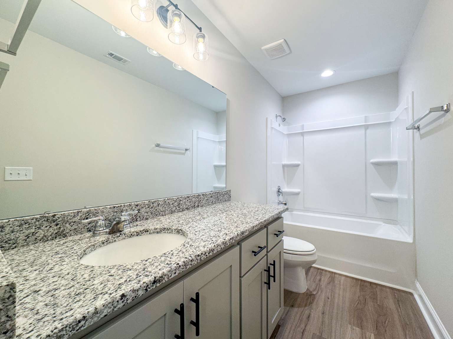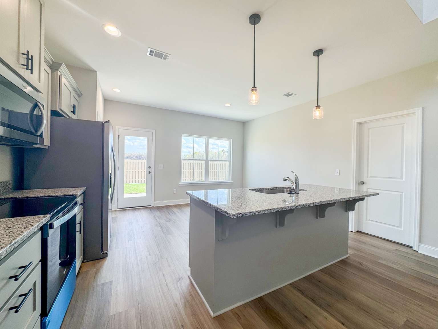 Welcome to the Whitaker, a thoughtfully designed patio home located in Heritage Pointe— just minutes from Fort Stewart and local schools! Step inside to a striking two-story foyer and family room, creating a bright and open first impression. The spacious family room offers a seamless view into the kitchen, as well as convenient access to the laundry room and two-car garage. The eat-in kitchen is perfect for both everyday living and entertaining, featuring granite countertops, ample cabinetry, a pantry & direct access to the backyard patio. Enjoy relaxing outdoors in your fenced, sodded & irrigated yard — ideal for morning coffee or evening gatherings. Just off the kitchen, the primary suite offers a peaceful retreat with a private bath complete with a dual vanity, soaking tub, separate shower & walk-in closet. Upstairs, you'll find three spacious bedrooms and a full hall bath, all centered around a versatile flex space overlooking the family room.