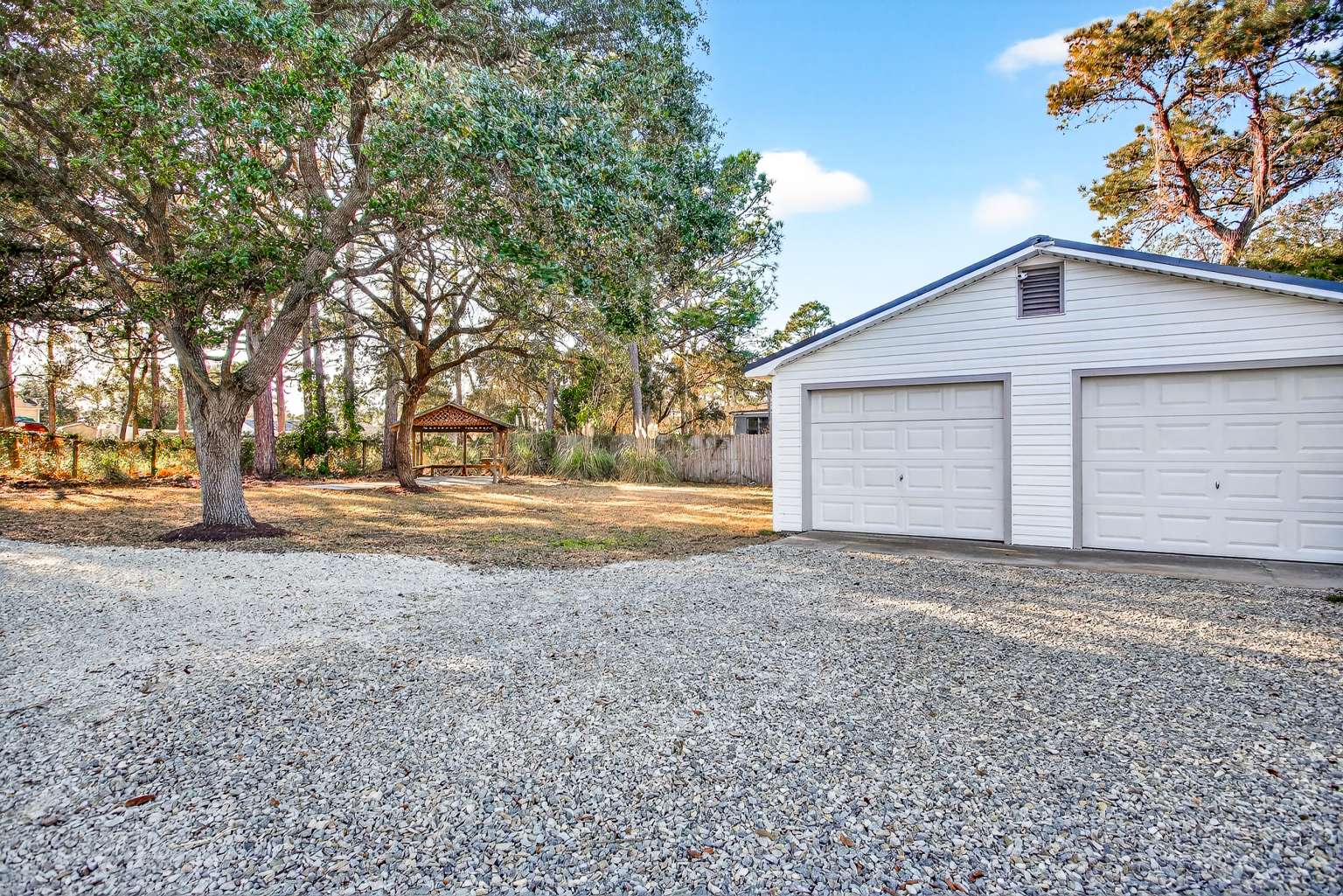 A rare TRIPLE lot just minutes from Holden Beach, this beautifully renovated 3BR/2BA home sits on .344 acres in desirable Shallotte, NC. Offering the perfect blend of space, privacy, and coastal convenience, this property delivers true affordable luxury living near the coast. The fully updated interior features brand-new flooring throughout, a bright open floor plan, and seamless flow between the eat-in kitchen, dining area, and living room - brand new stainless steel appliances and ideal for entertaining and everyday living. Master suite on opposite side of home as other bedrooms for privacy, while 2 bedrooms feature walk in closets. Outside, the property shines. Enjoy two distinct yard areas—one private and one more open—creating flexibility for entertaining, gardening, or relaxation. Mature old-growth trees provide beautiful natural shade for hot North Carolina summers. The wide driveway offers potential for a circular drive, while the detached, wired 2-car garage features all new lighting. The home also features a wired outdoor pavilion that could be use for entertaining, additional outdoor cooking space, or a warm fire pit location for the winters complete this exceptional outdoor setting. With county water, thoughtful upgrades, and a prime location just 8 miles from Holden Beach, this property offers space, charm, and value that are hard to find.