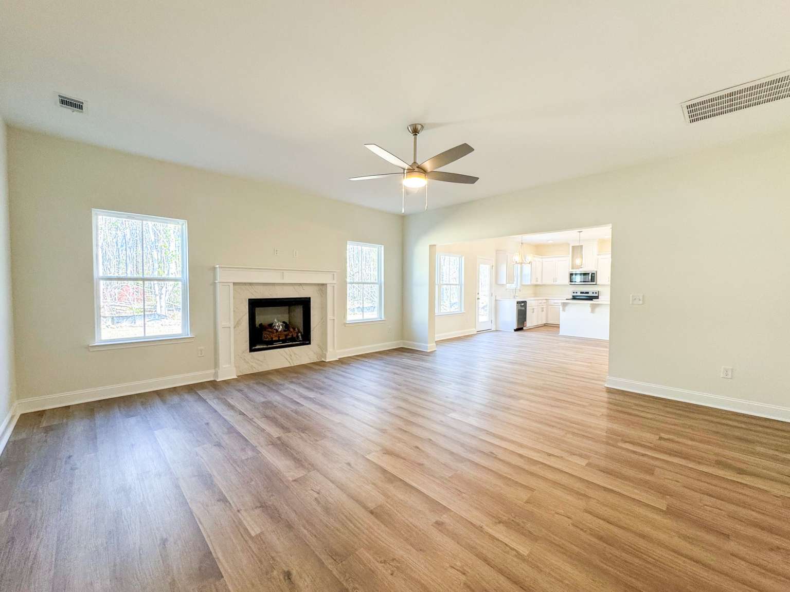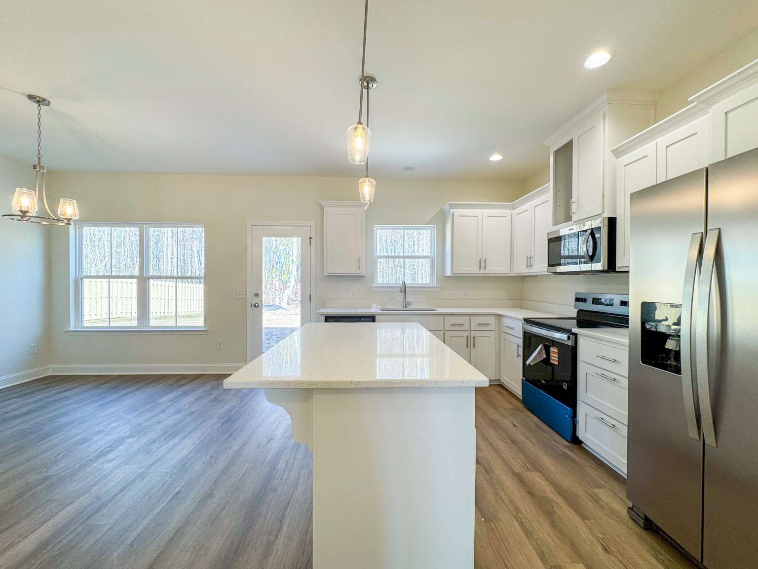 Welcome home to a stunning 4-bedroom Ivey 2 plan. Enjoy a prime location near area schools, new shopping & dining, and minutes from Ft. Stewart. From the foyer, step into the formal dining room with direct access to the walk-in pantry & kitchen. The gorgeous kitchen shines with quartz counters on both the perimeter and island. From the breakfast room, head out to the patio or relax in the spacious family room complete with a cozy fireplace. The patio overlooks a sodded, irrigated backyard- perfect for outdoor entertaining. Plank flooring flows throughout the first-floor living areas. Upstairs offers 3 bedrooms, a hall bath, a nicely-sized laundry room, and the primary suite. The primary bedroom includes a vaulted ceiling plus a sitting area framed by dual walk-in closets. The private bath features a dual vanity, soaking tub & separate shower.